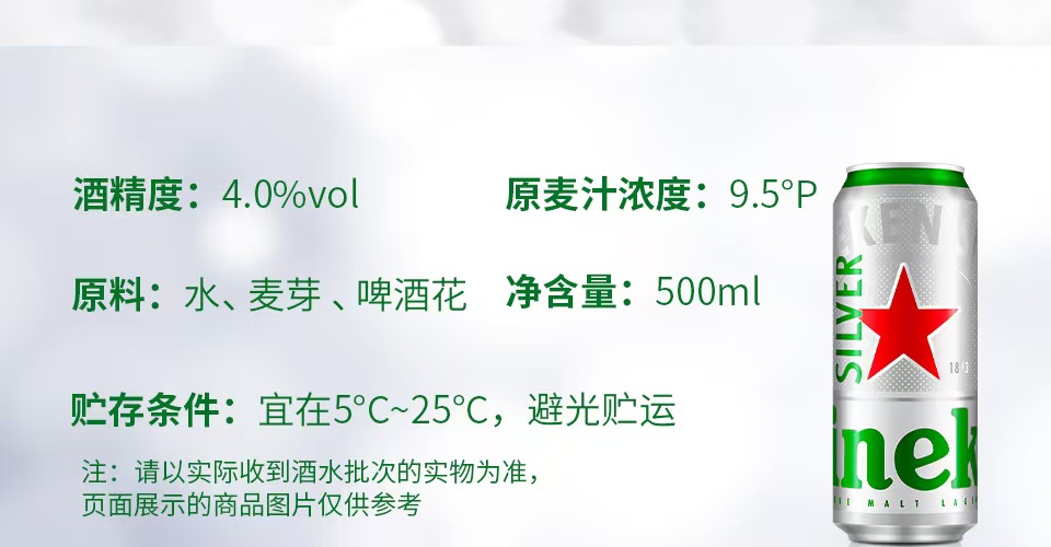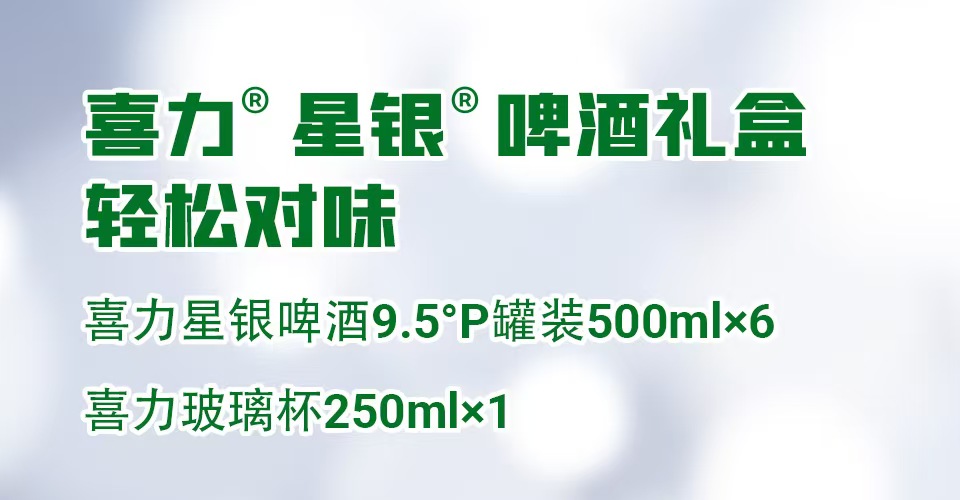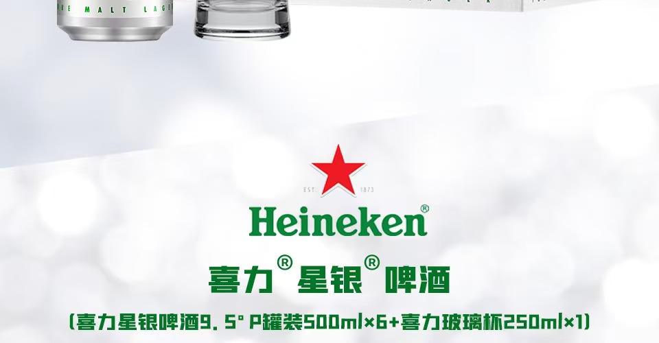 喜力星银啤酒500ml*6听(礼盒装)