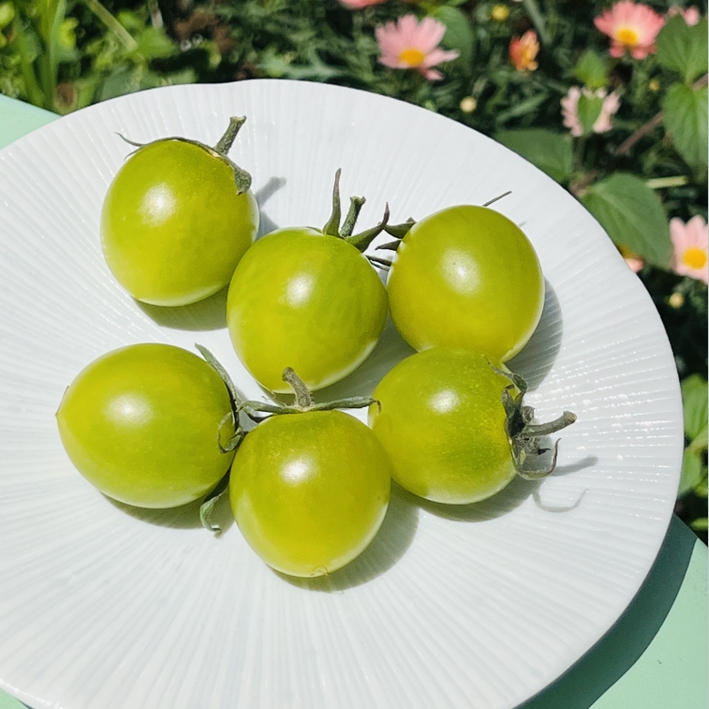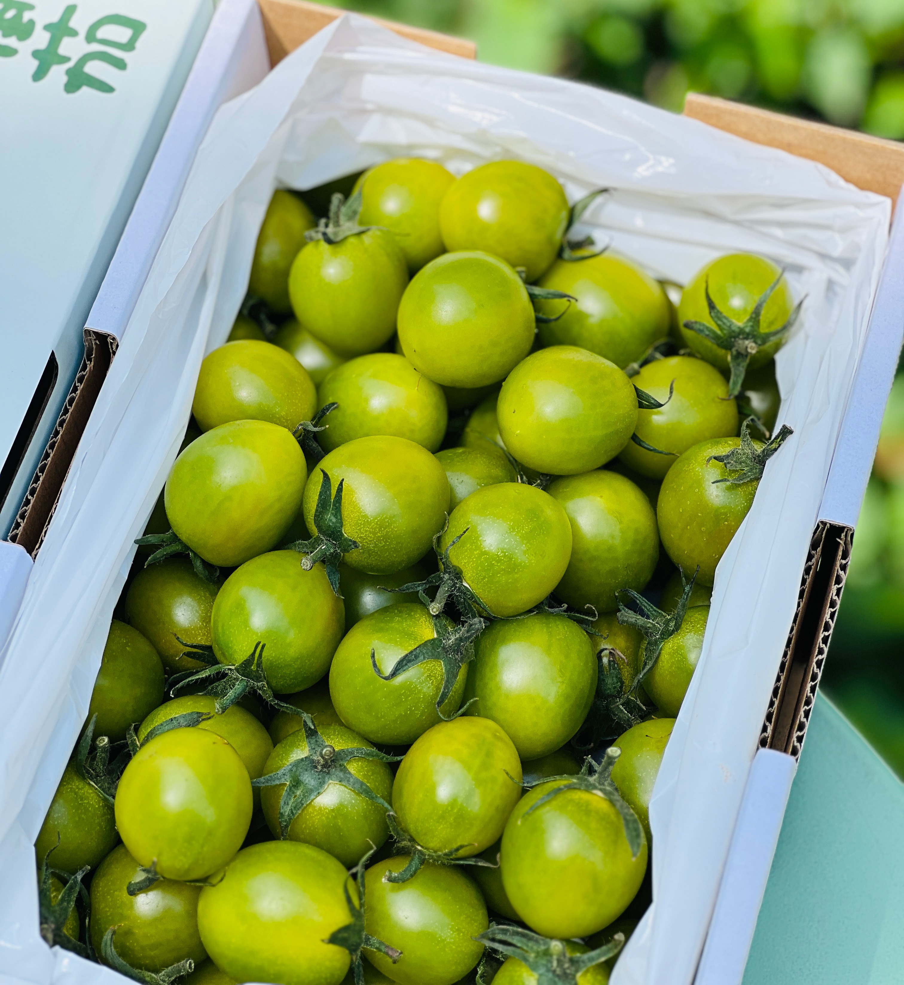 青霞小番茄| 青霞仙女,名如其果,清新莞尔,一颗颗饱满透亮,青翠欲滴,看着就诱人咬一口,外酥内柔,丝滑绵香,盈汁欲滴~比普通番茄高两个甜度,满满的花青素,带有浓郁的香气,番茄味十足,吃完回味悠长~