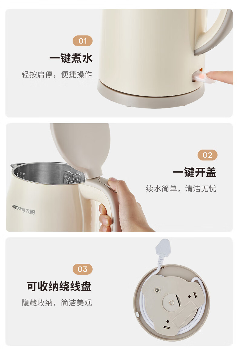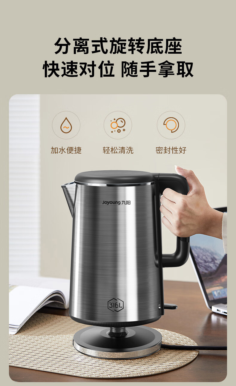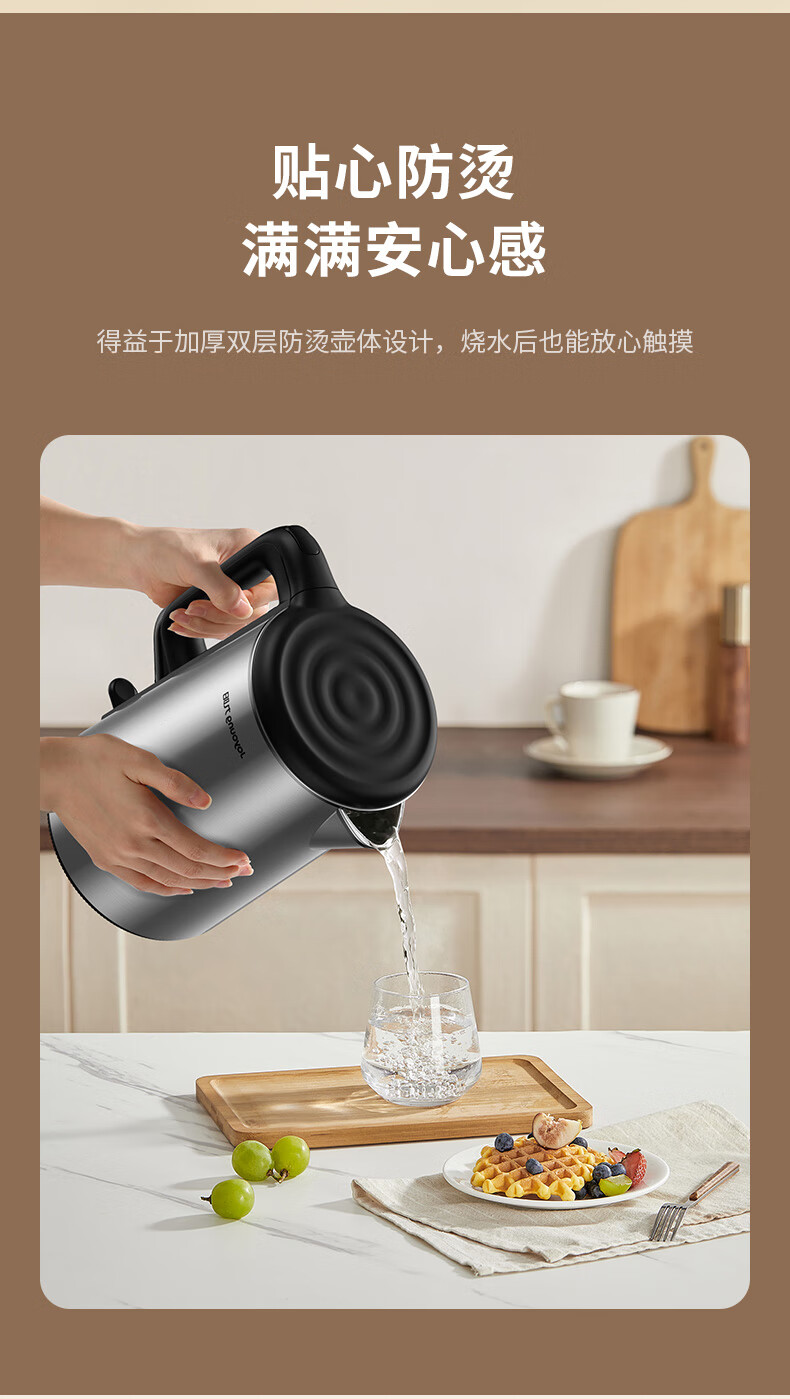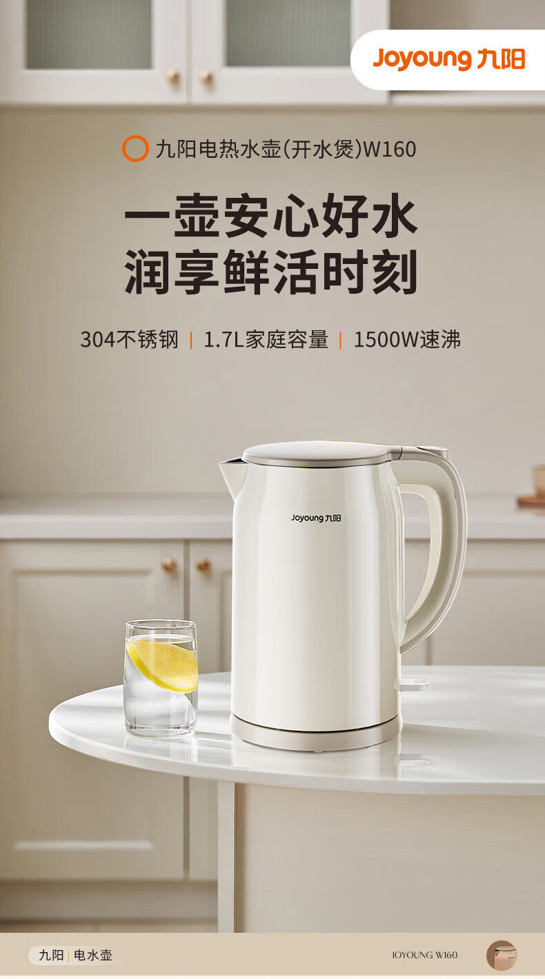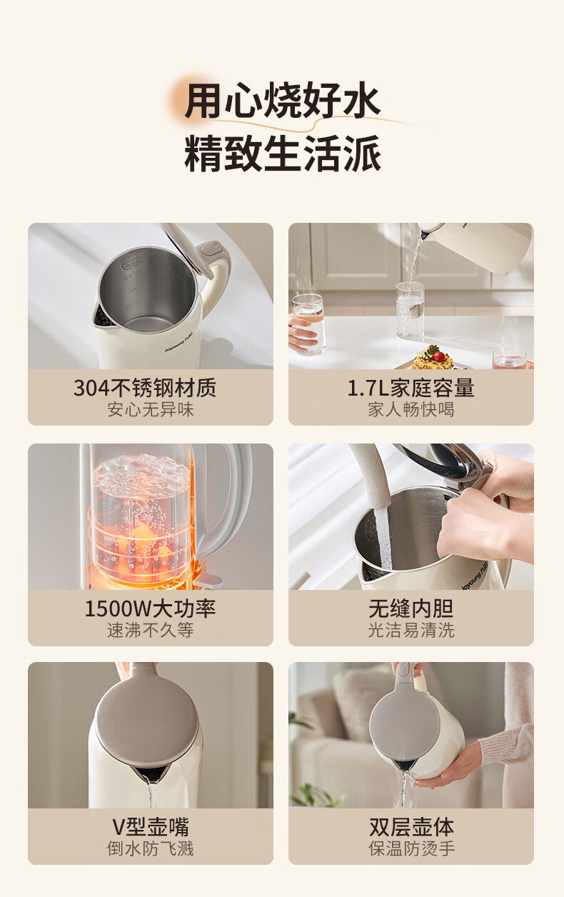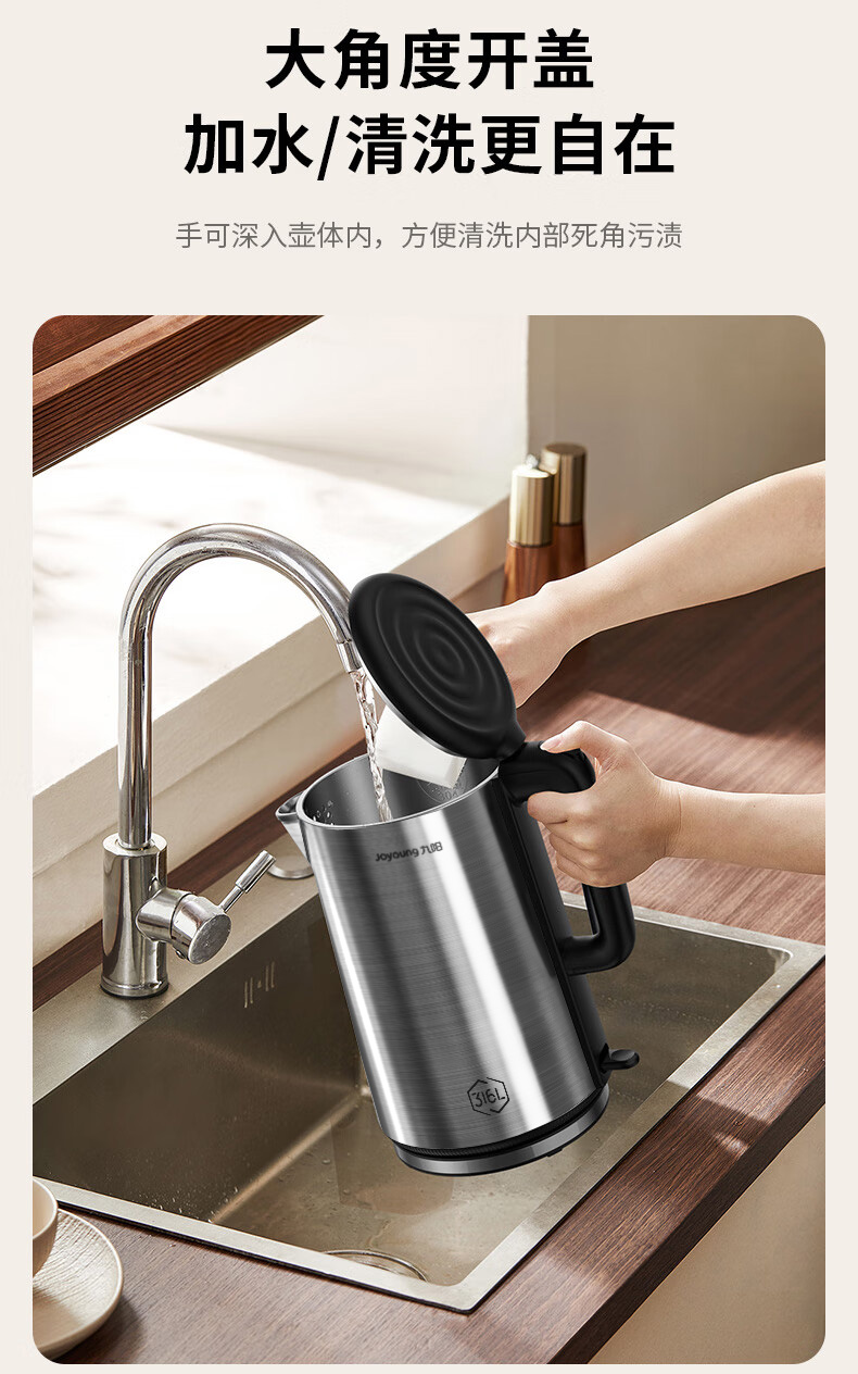 九阳电热水壶316L不锈钢内胆1.7L升大容量开水煲家用烧水壶电水壶