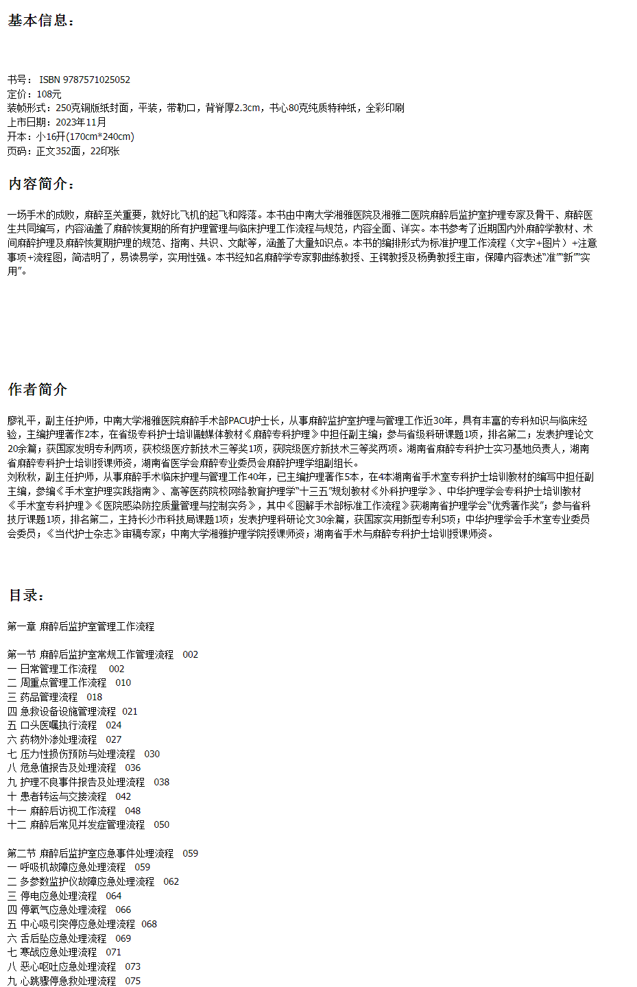 手术室标准工作流程系列教材 图解麻醉后监护室标准工作流程 278张图片,81张流程图,简明直观的阐述麻醉后监护室标准工作流程
