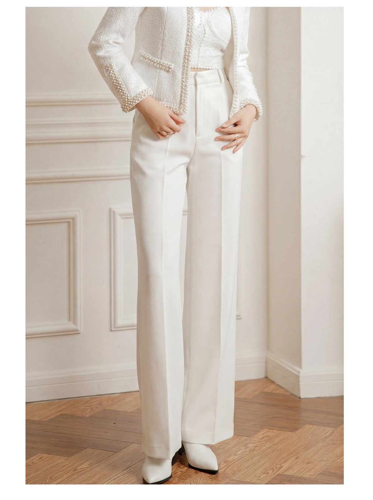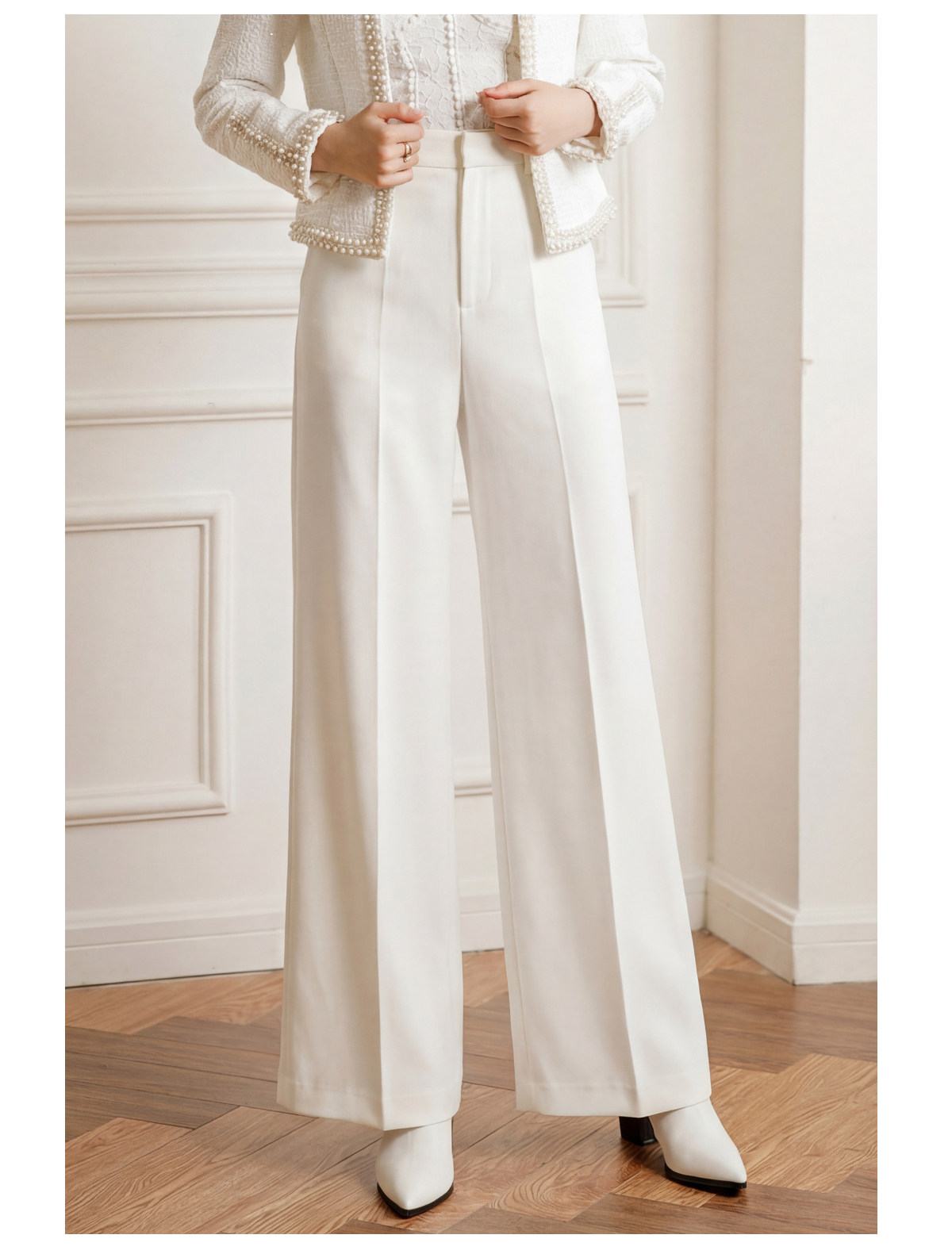 艾尚臣极简风高腰白色阔腿裤女春季显瘦直筒休闲裤通勤穿搭