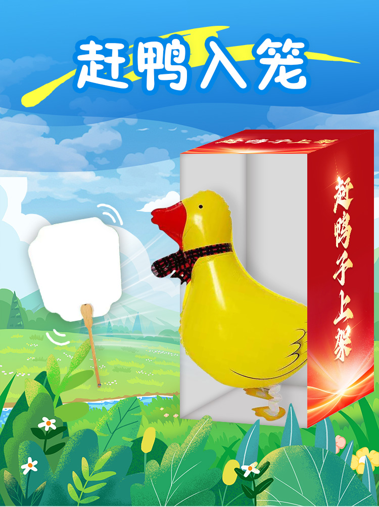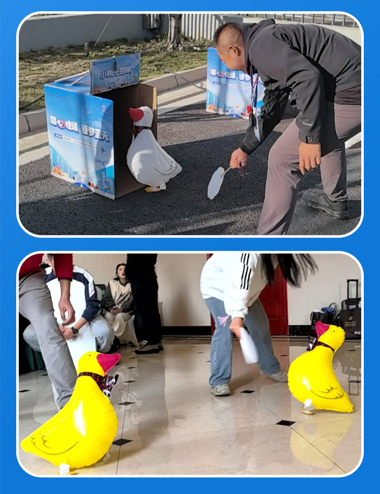 赶鸭子上架趣味团建户外亲子赶鸡鸭猪入笼走路龟兔赛跑气球运动会