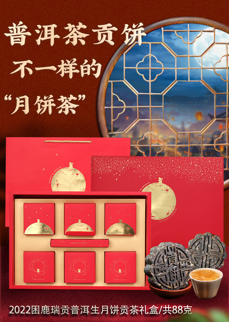 【礼品茶】中秋贡饼普洱生茶礼品茶困鹿山古树生茶饼88克*6饼礼盒包装