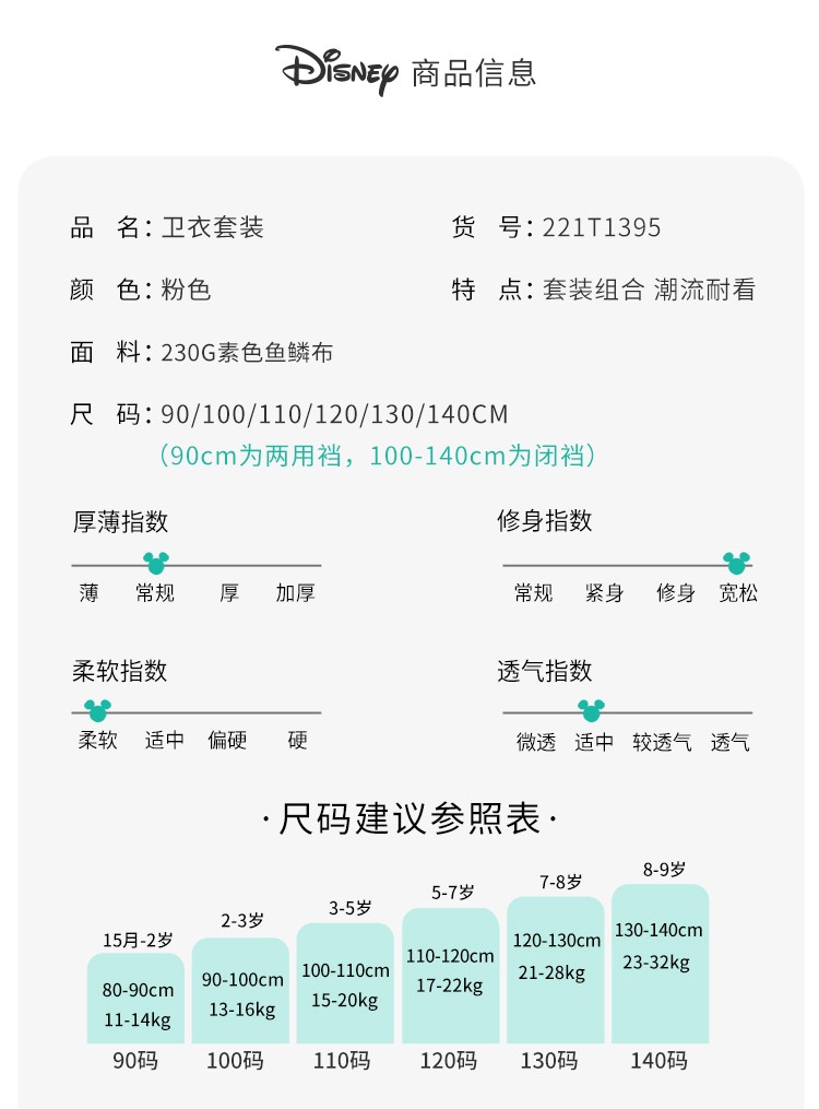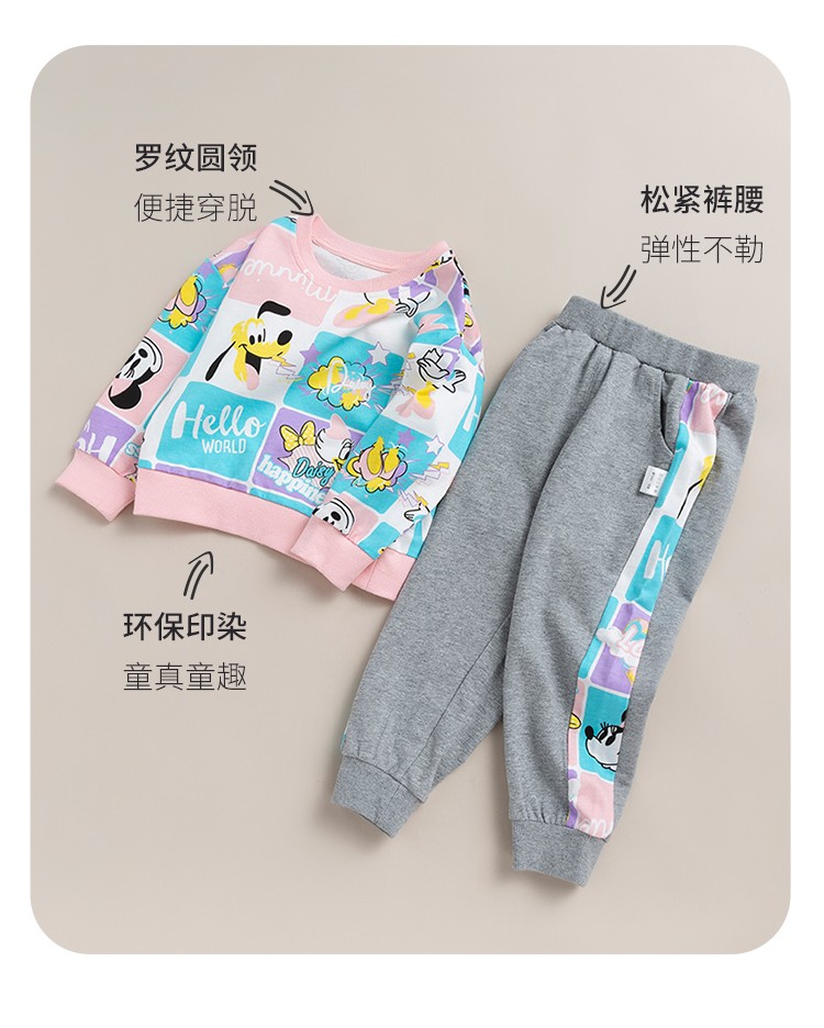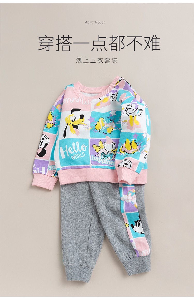迪士尼童装女童套装迪士尼宝宝系列潮酷风卫衣套装长袖卫衣+裤子2件套春新品