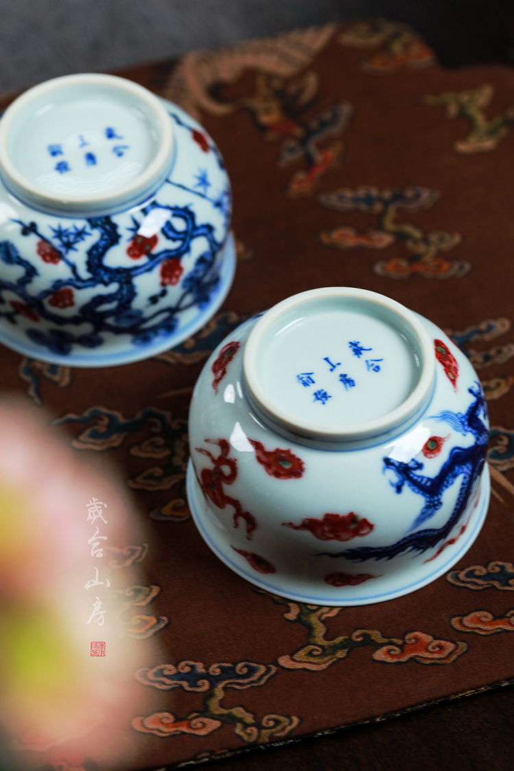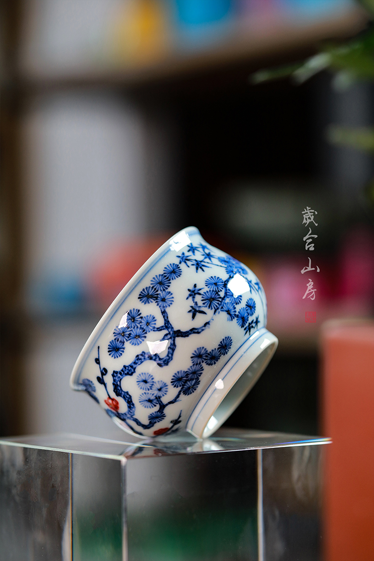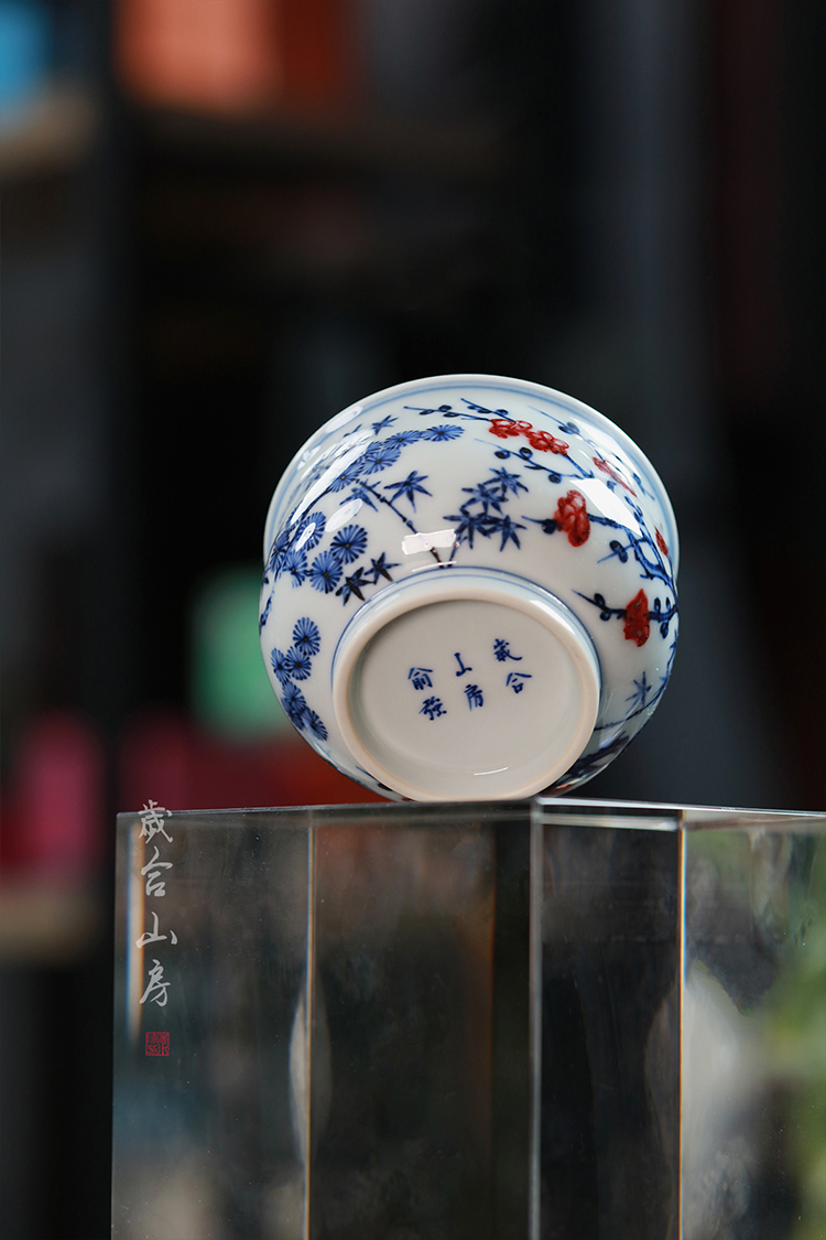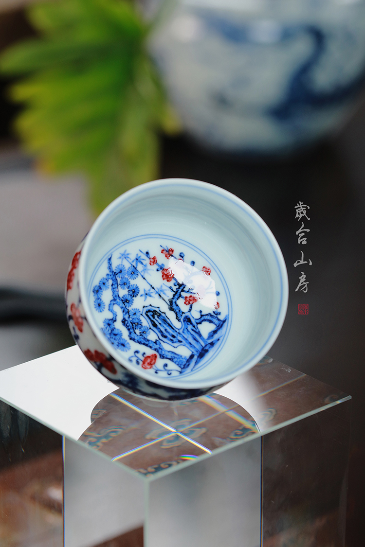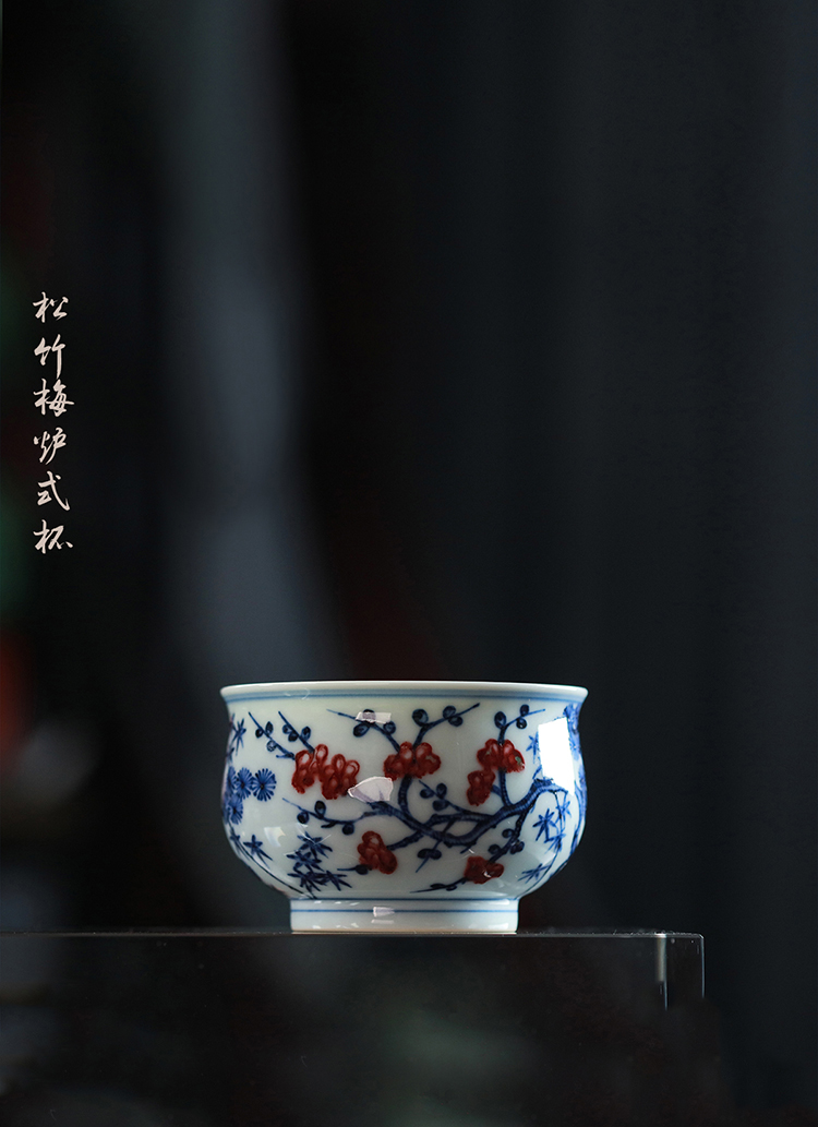 歲合山房俞强款青花釉里红松竹梅炉式杯