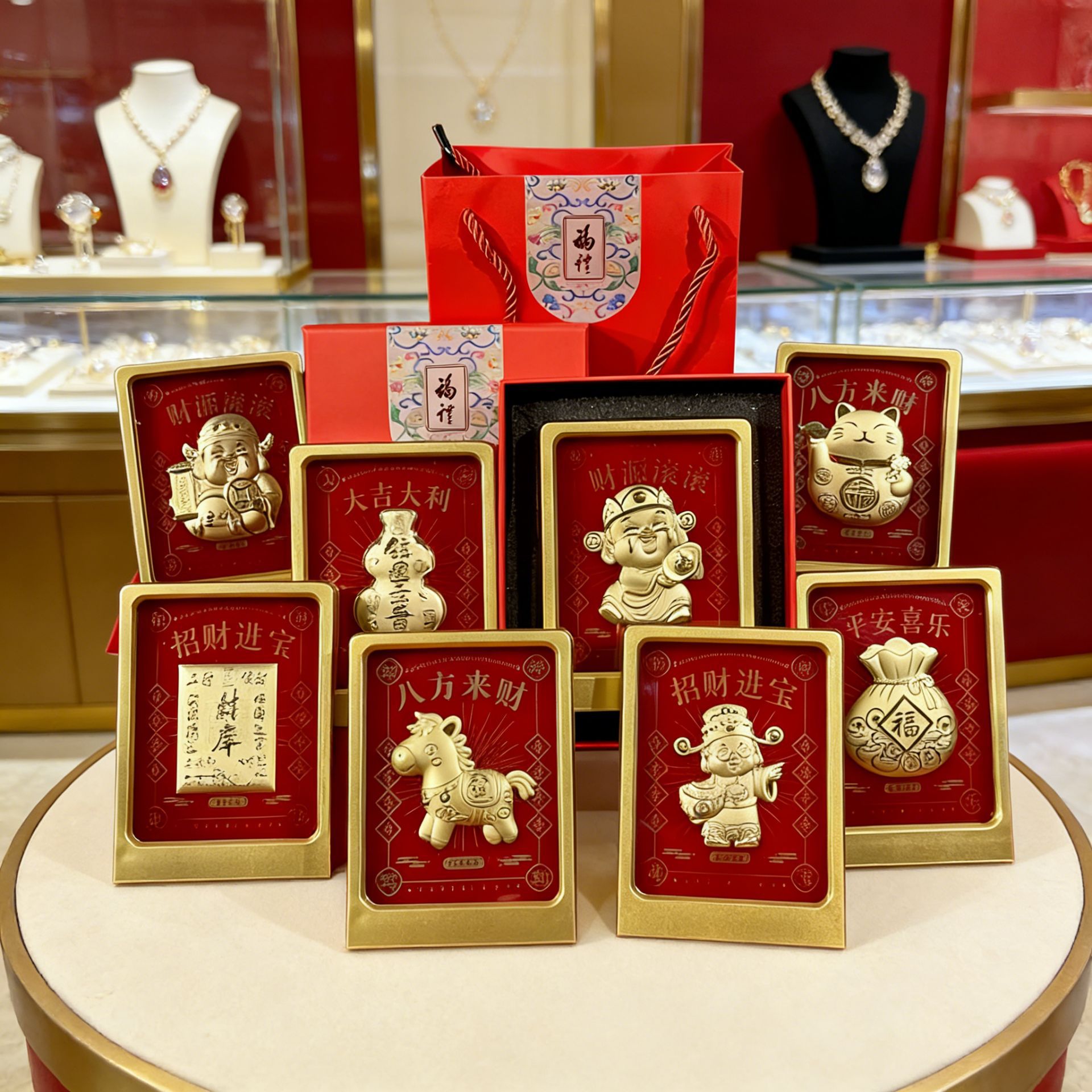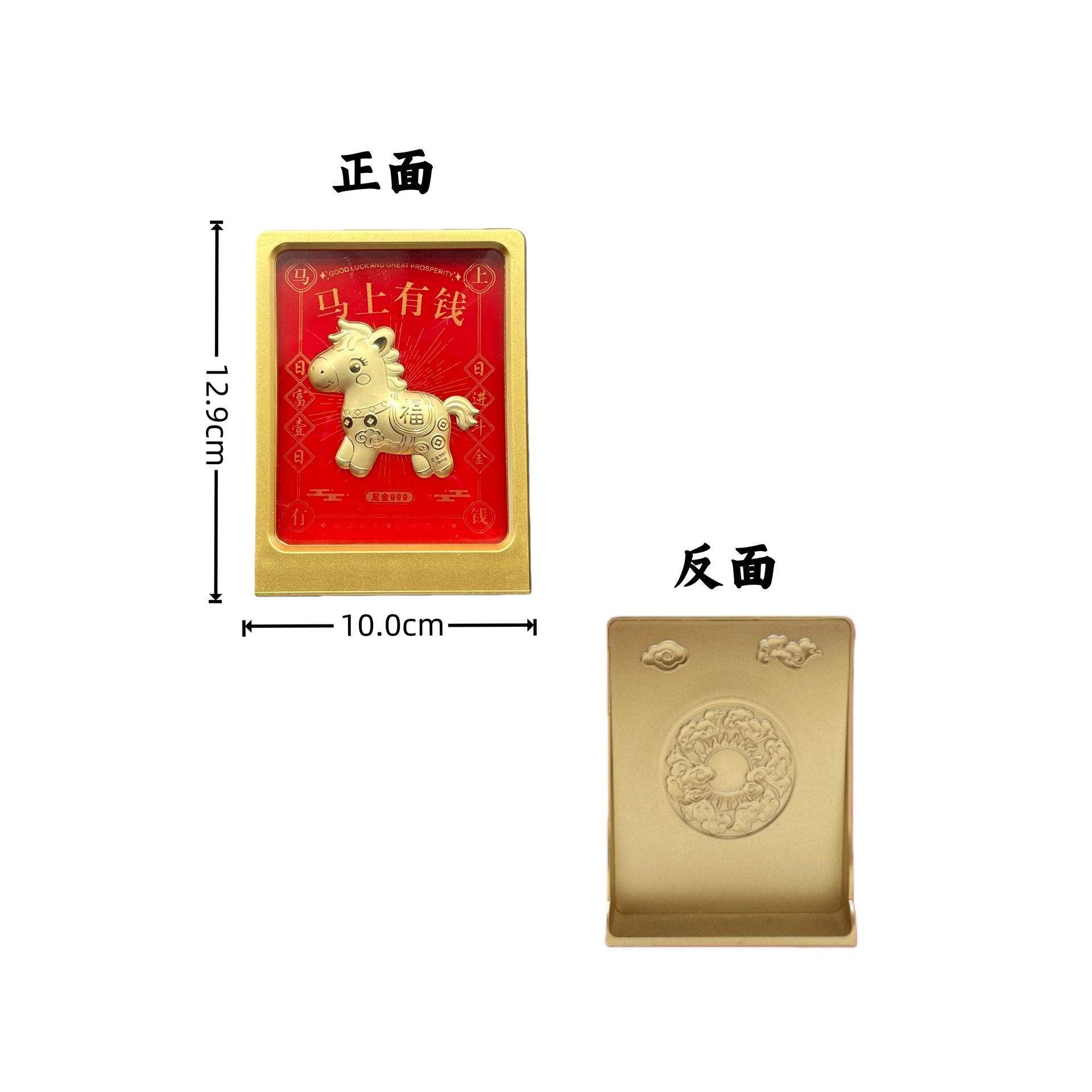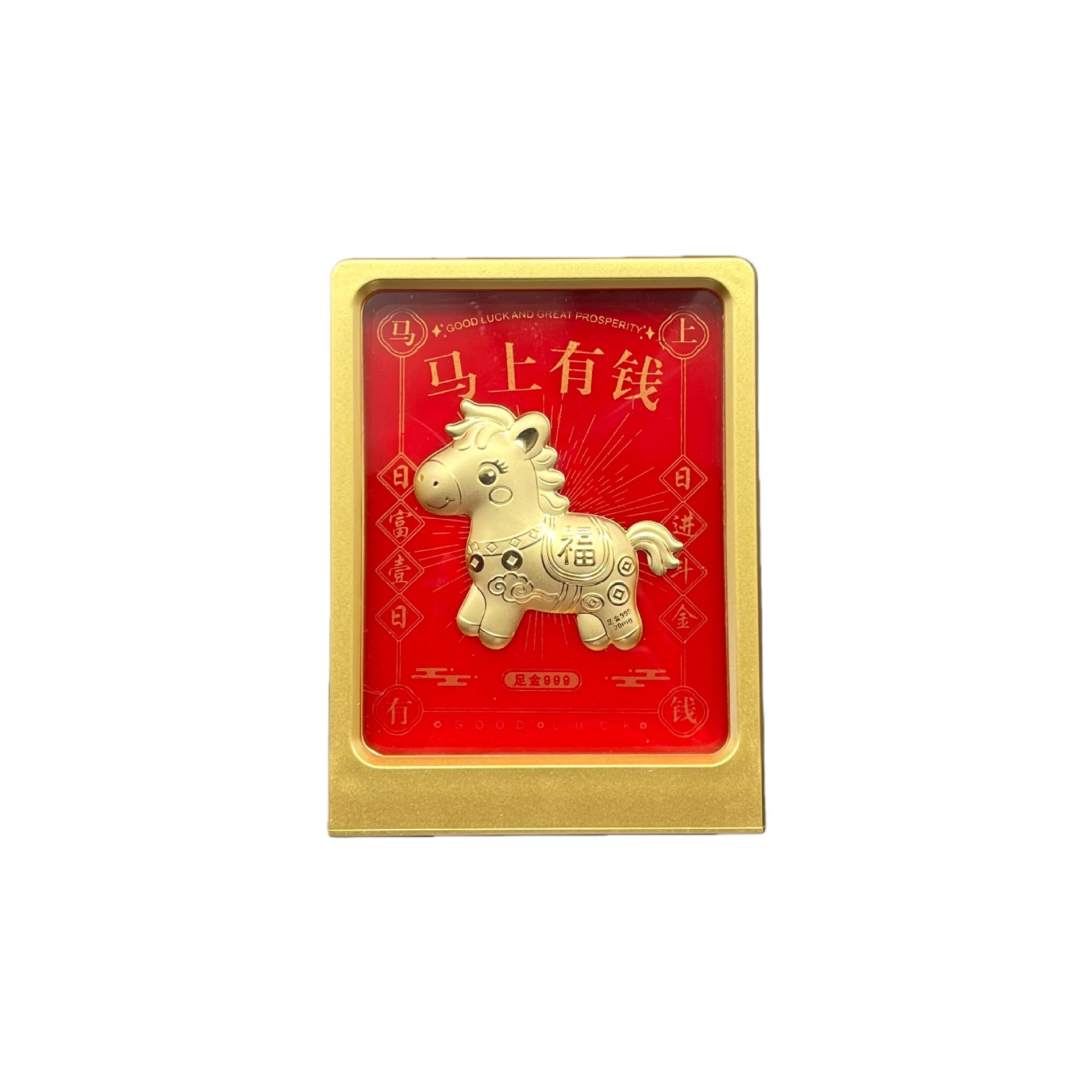 六鑫珠宝 足金999八方来财马上有钱伴手礼品礼盒摆件