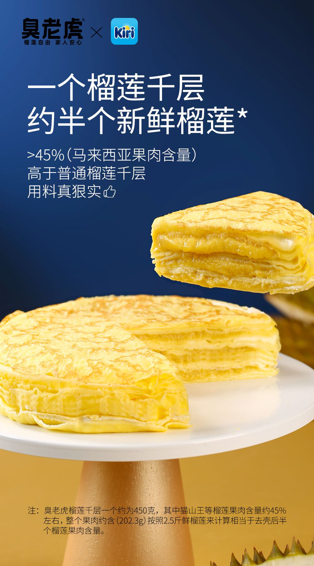 【产品名】0添加猫山王榴莲千层