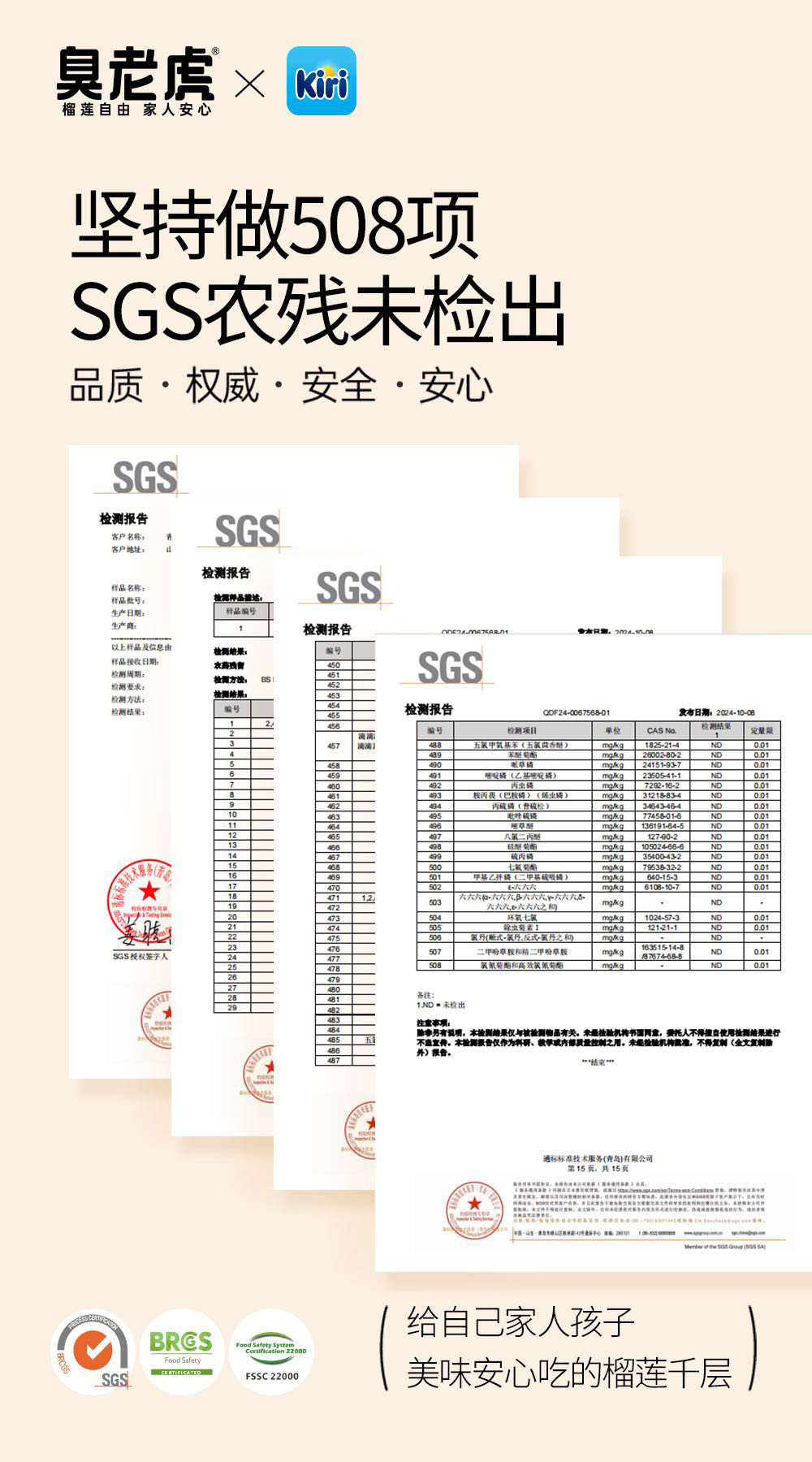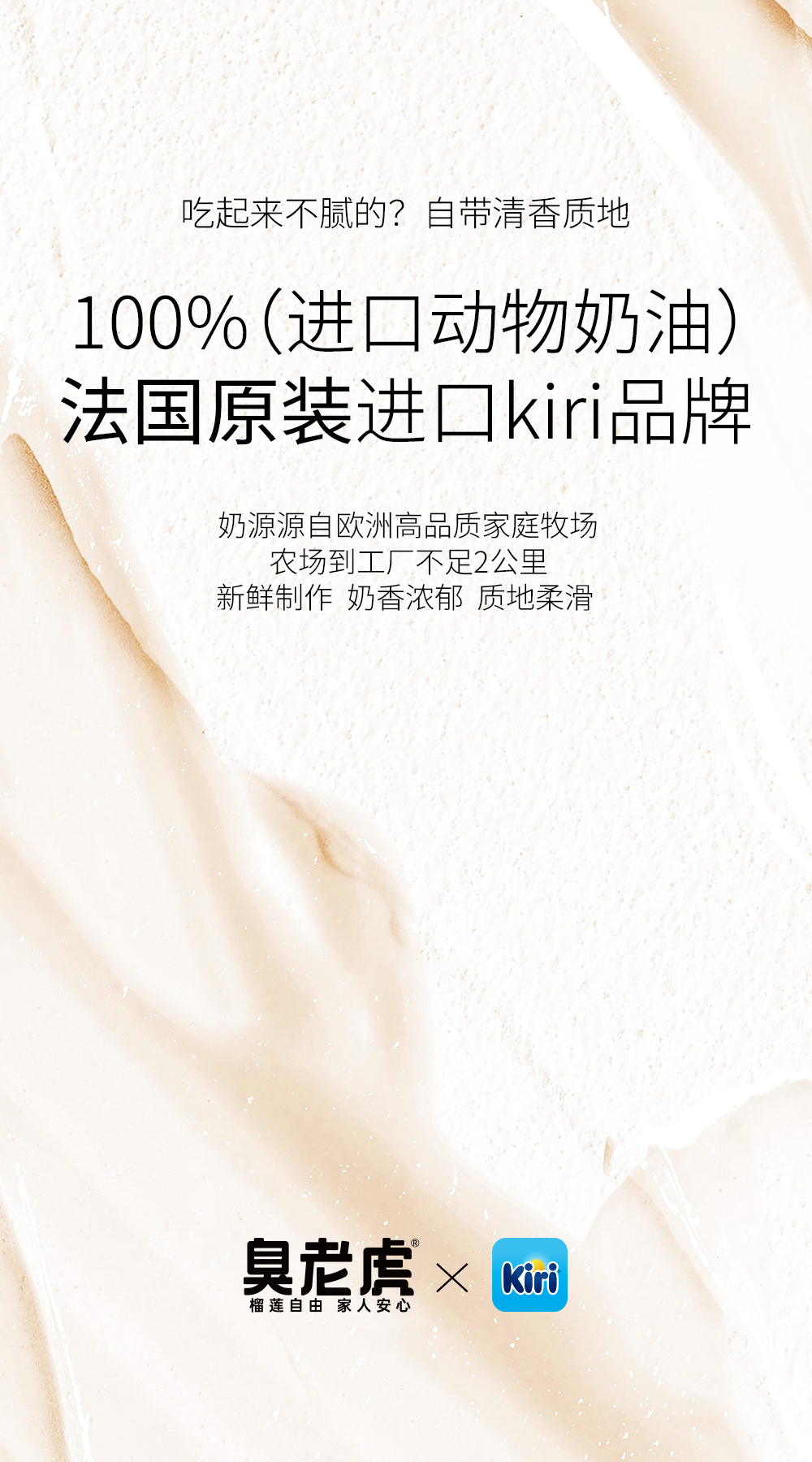 【配料】猫山王榴莲果肉(45 %)、kiri调制稀奶油(23%)、灭菌乳(≥12.5%)、冰全蛋(≥7.0%)、小麦粉、黄油、全脂乳粉、乳清粉、葡萄糖浆、奶酪、食用盐。