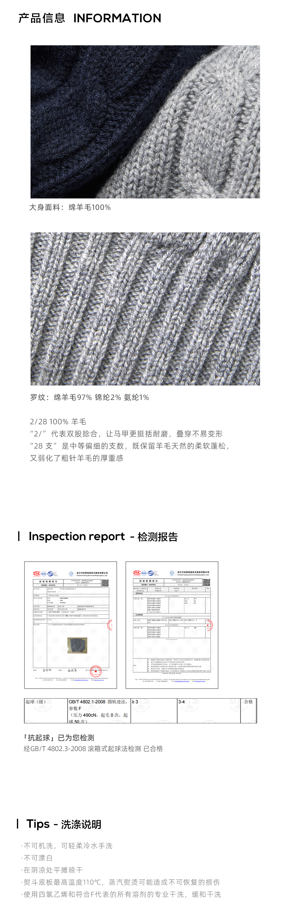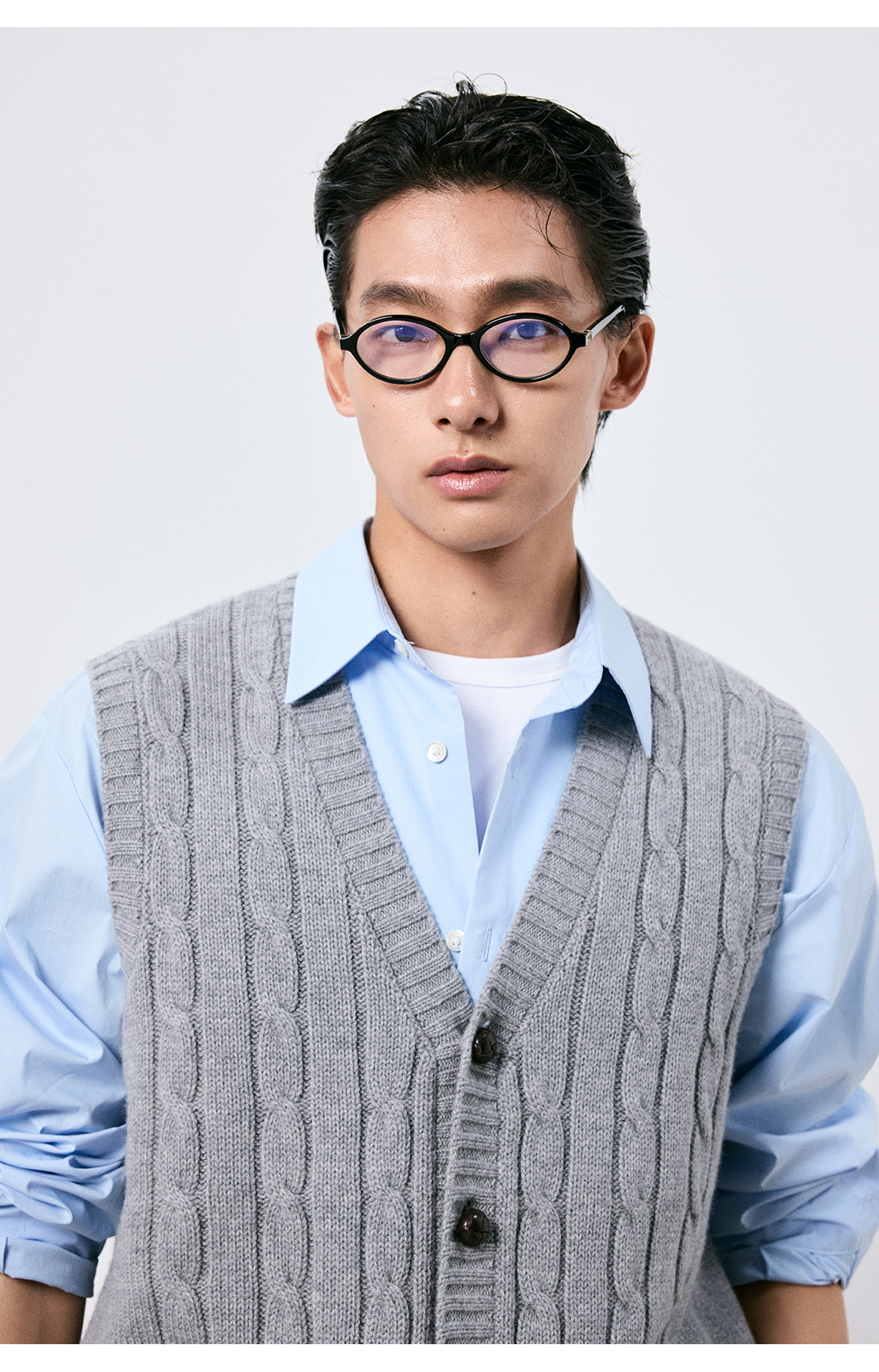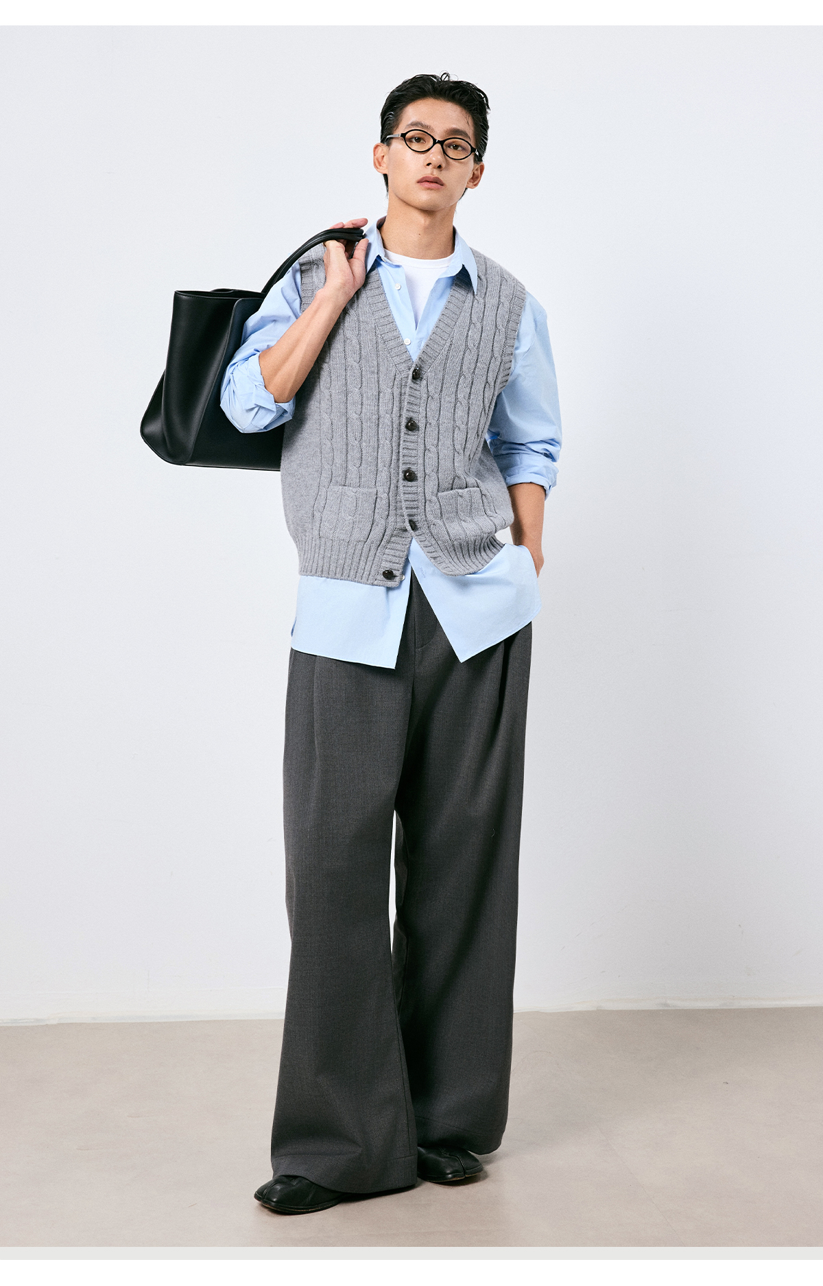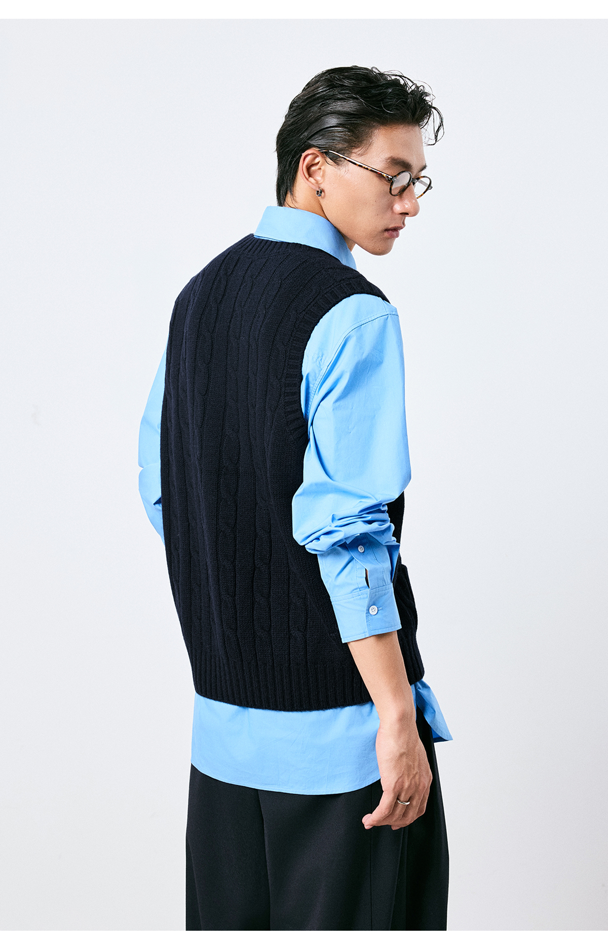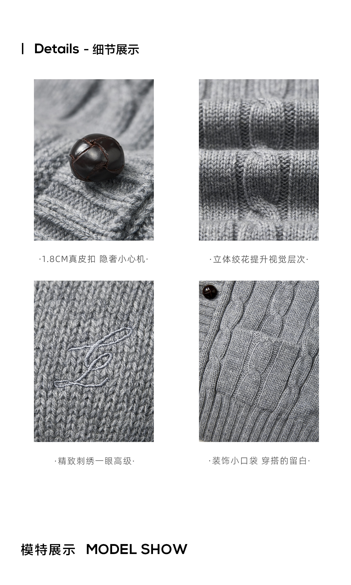 棉仓3661026002-【层序之间】灰色v领针织马甲全羊毛绞花叠穿背心开衫