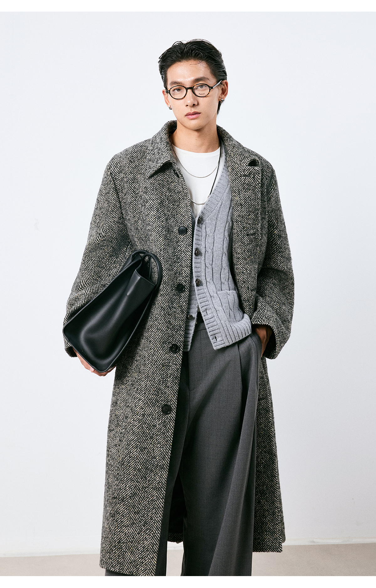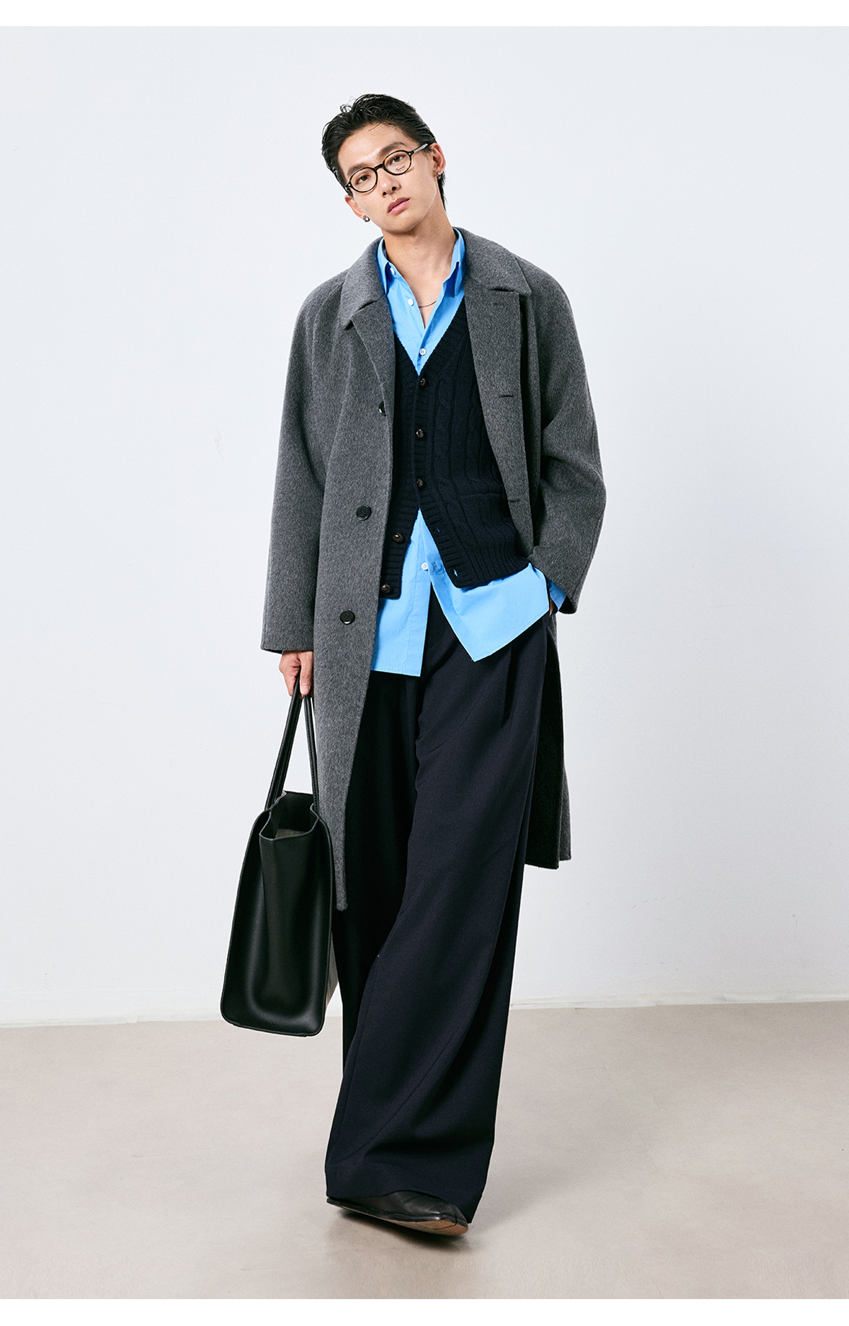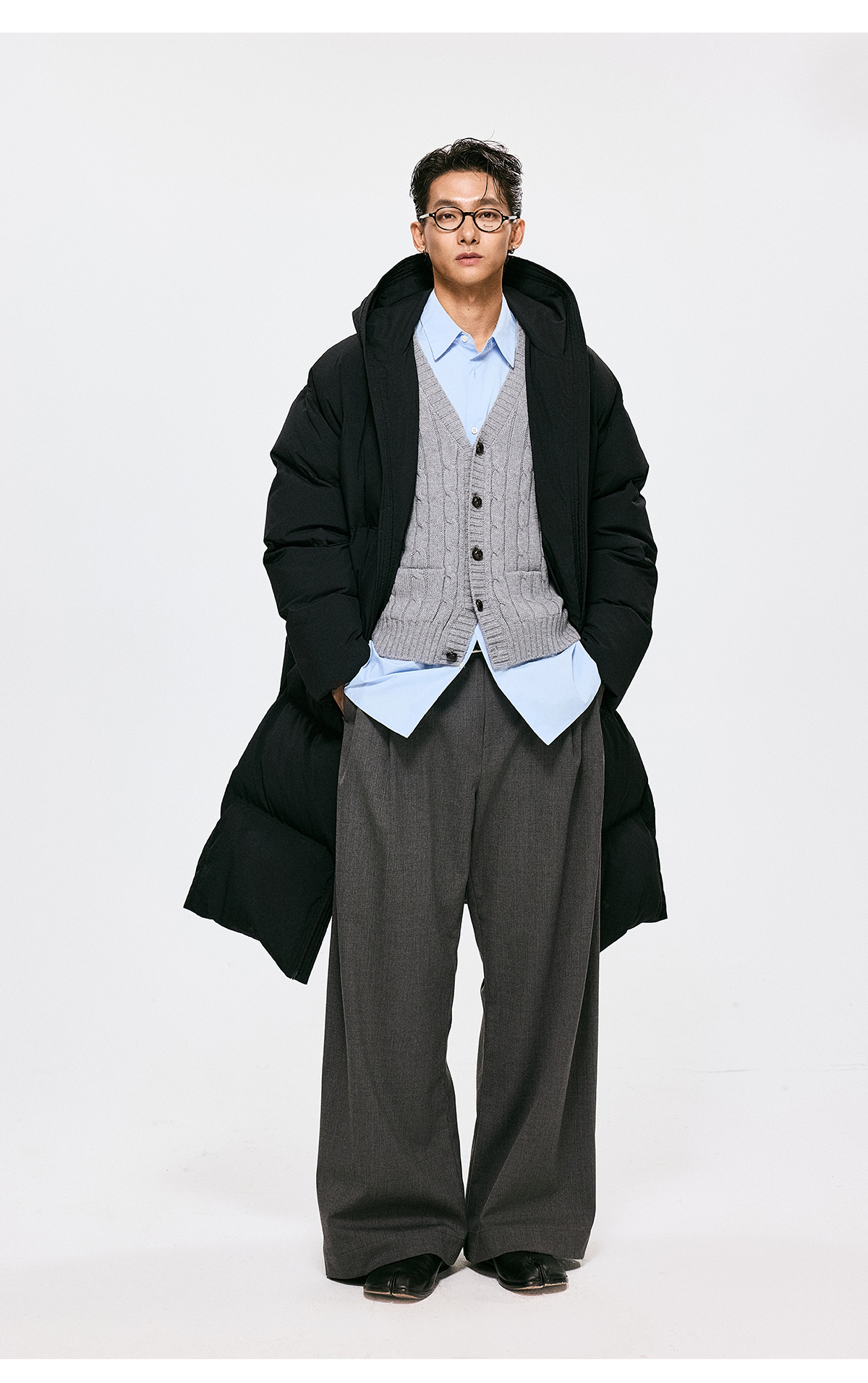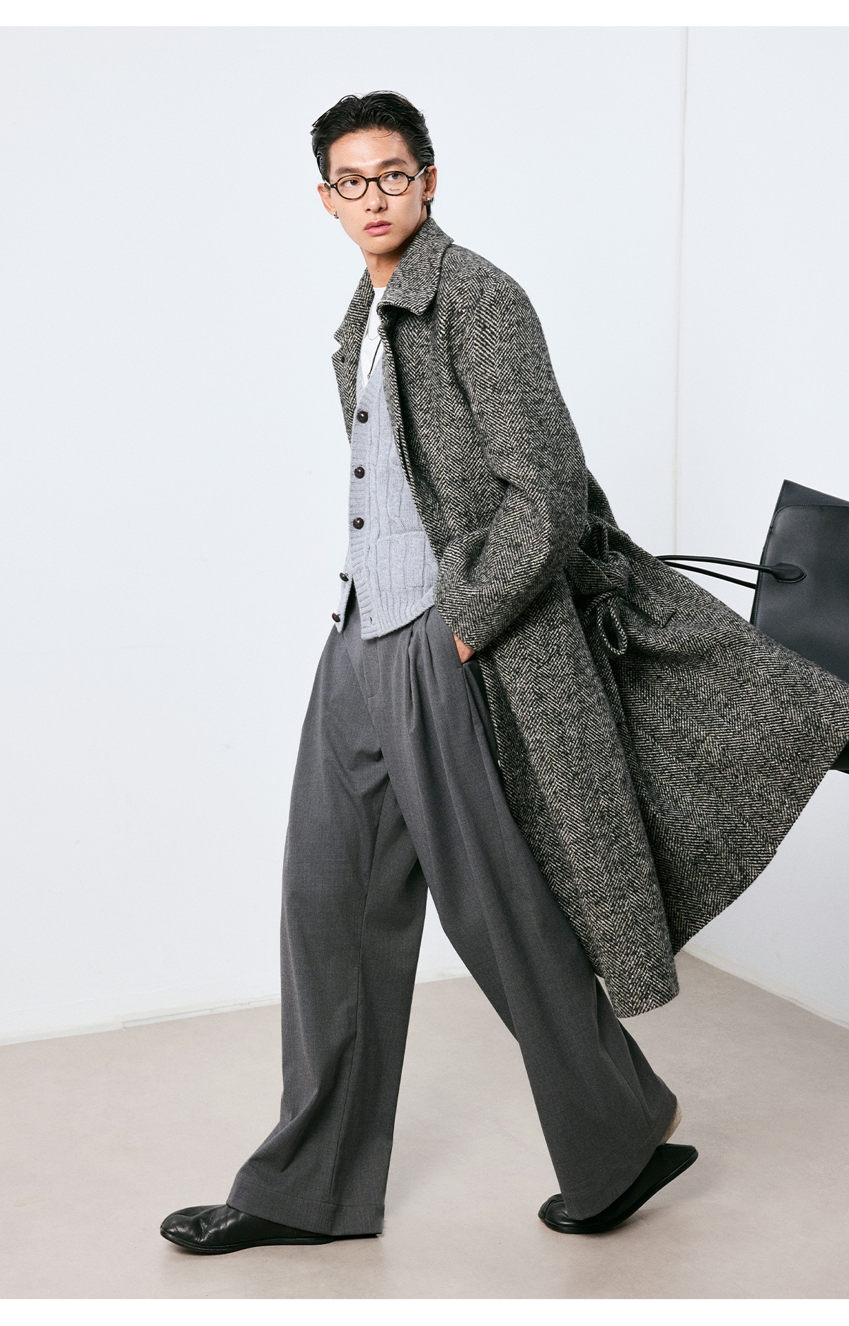 棉仓3661026002-【层序之间】灰色v领针织马甲全羊毛绞花叠穿背心开衫