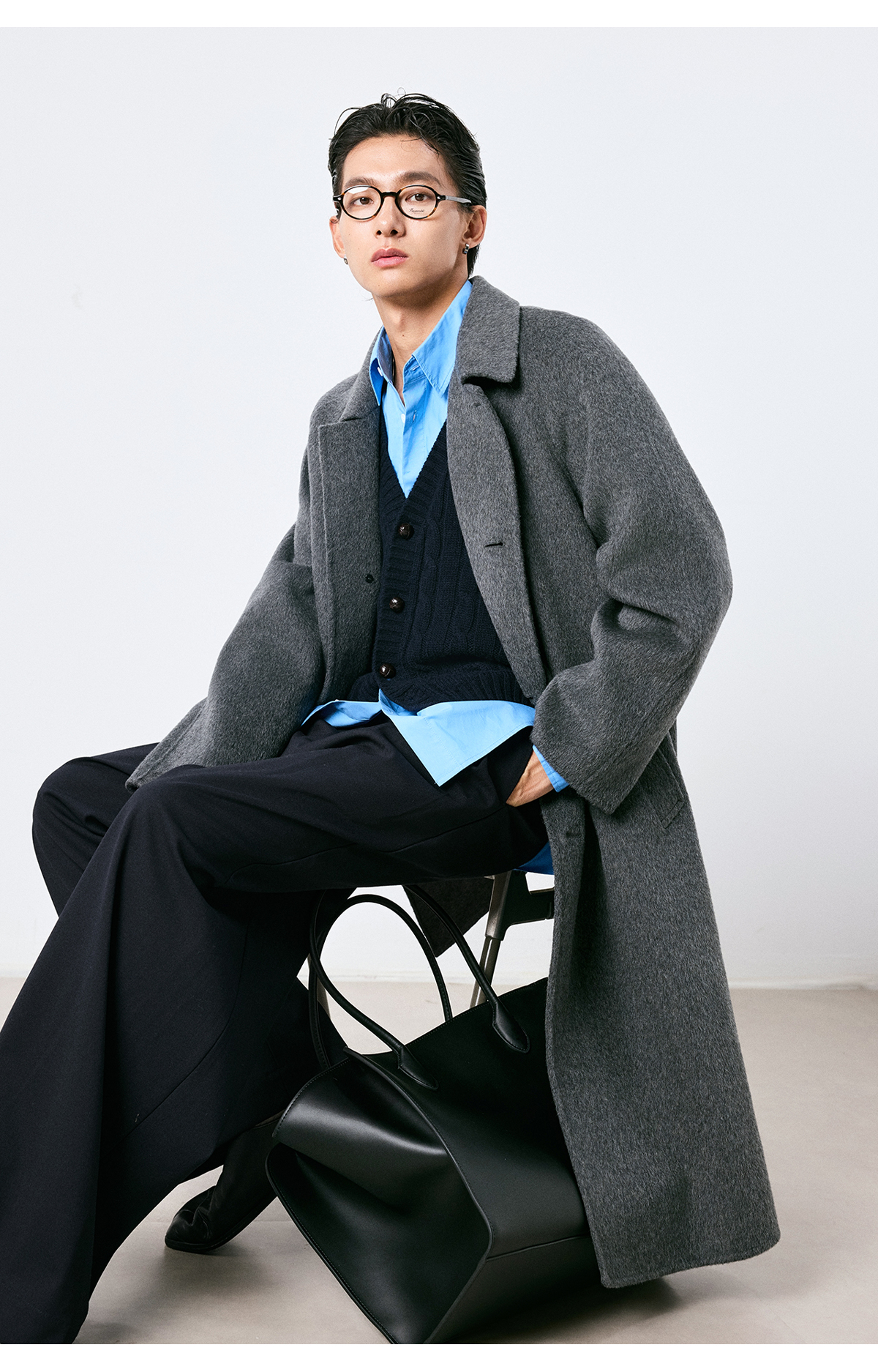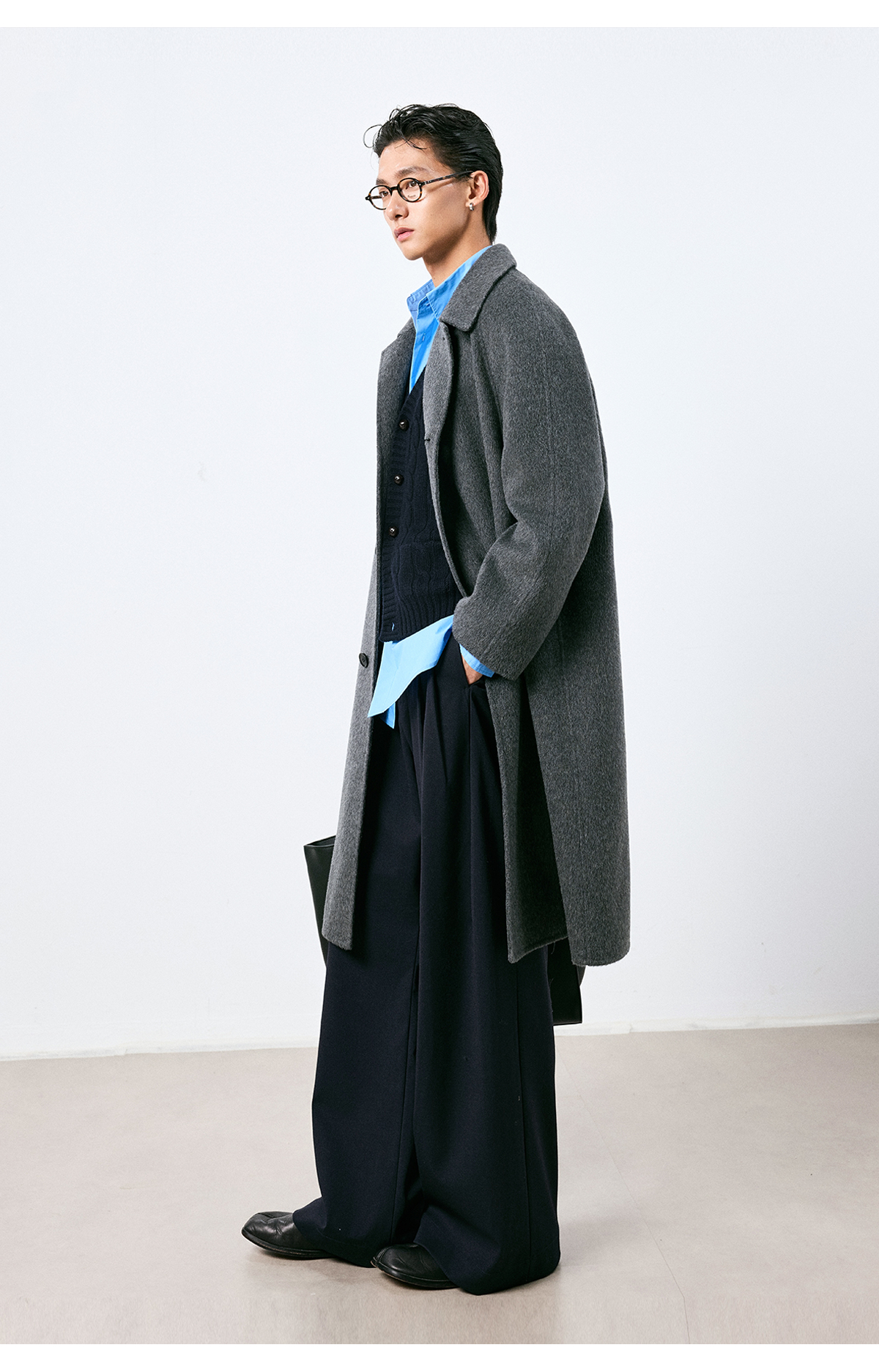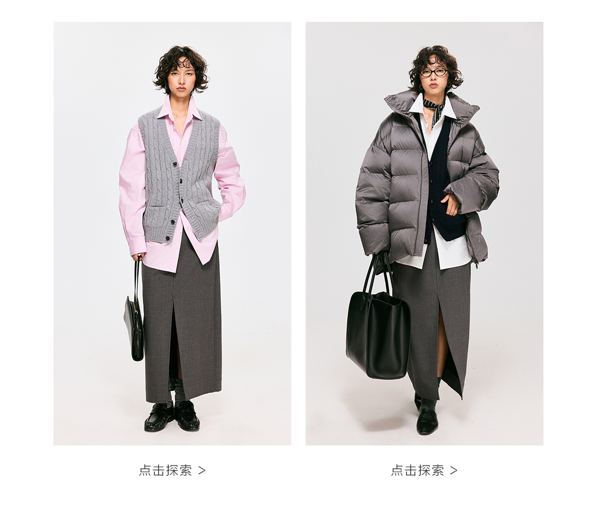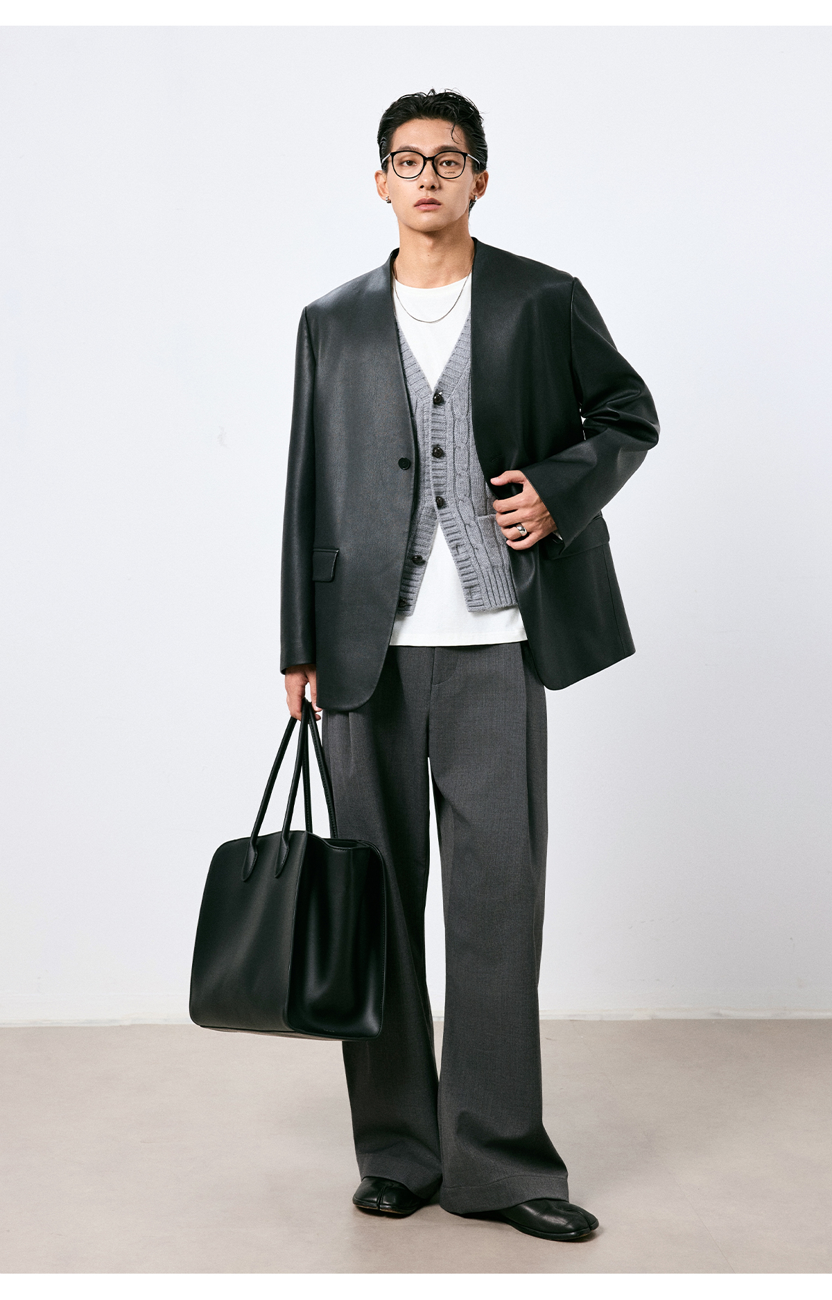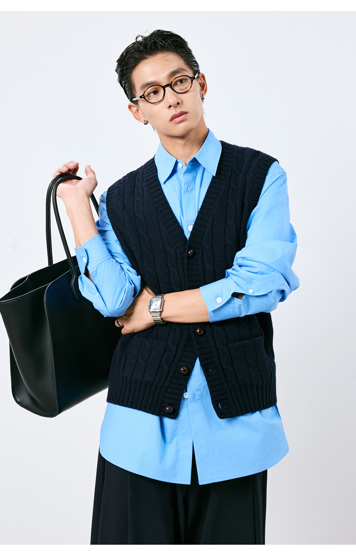 棉仓3661026002-【层序之间】灰色v领针织马甲全羊毛绞花叠穿背心开衫