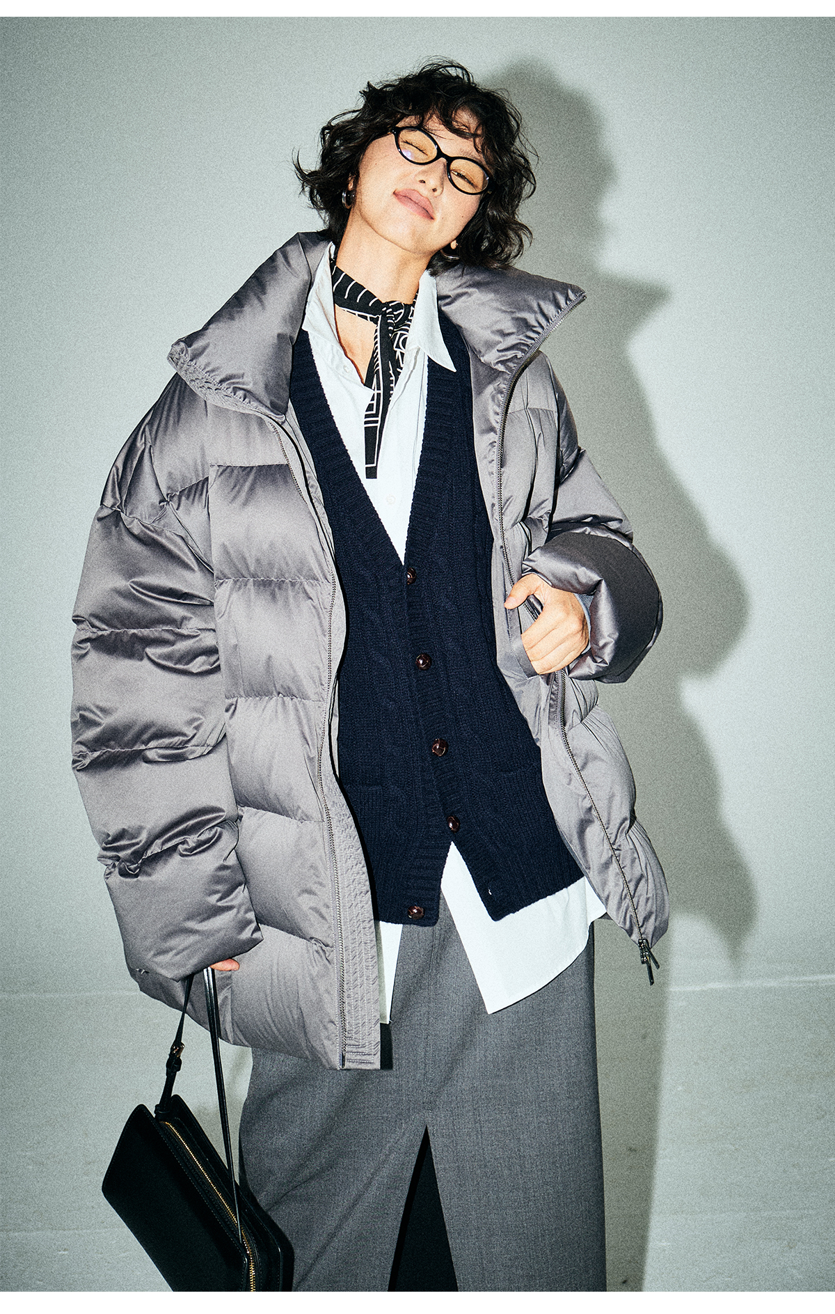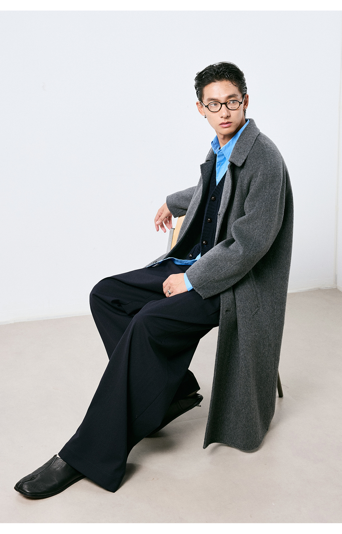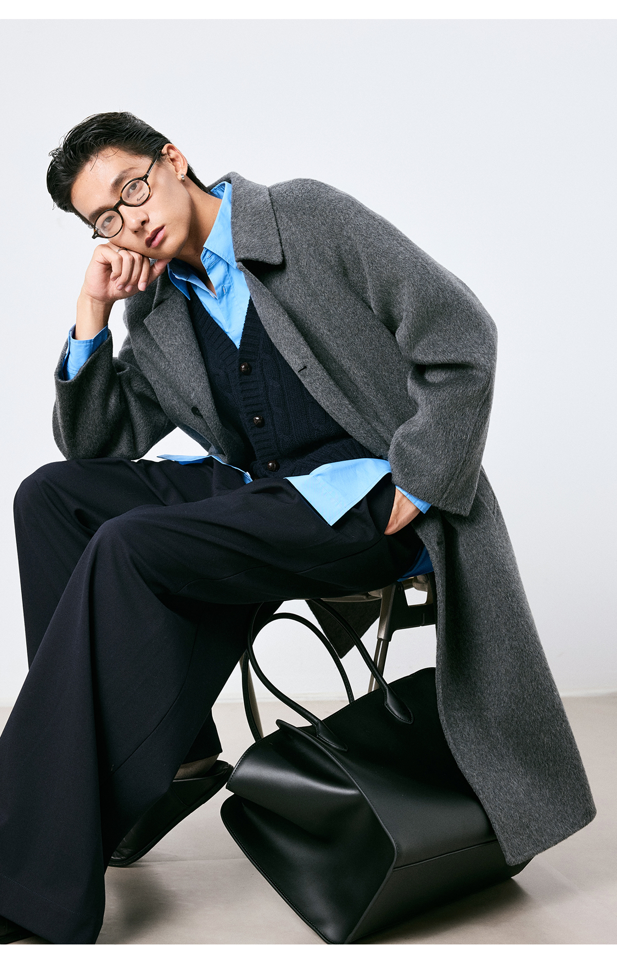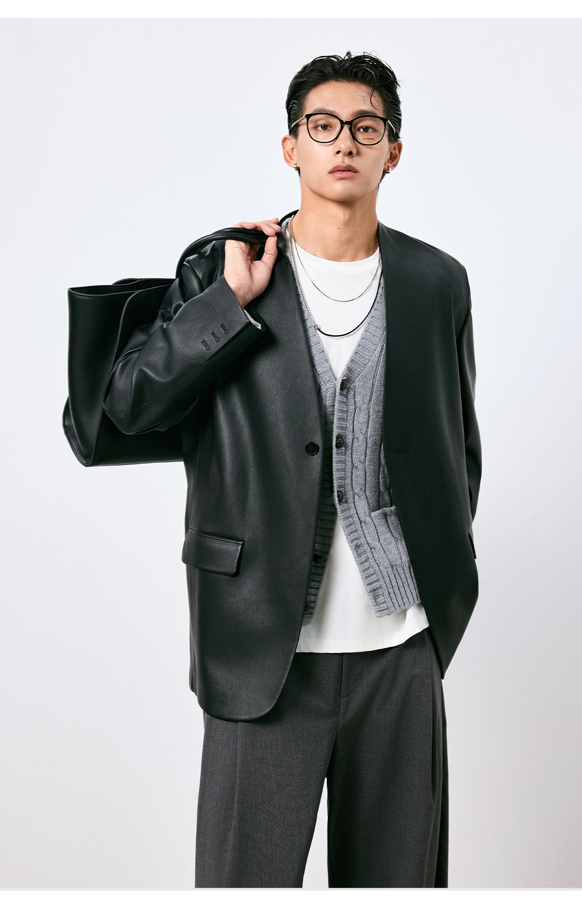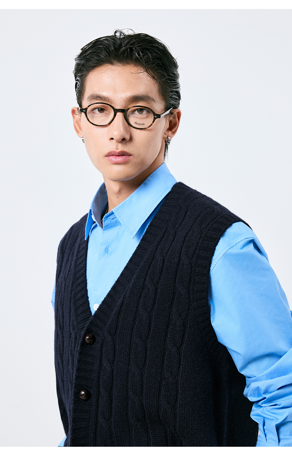 棉仓3661026002-【层序之间】灰色v领针织马甲全羊毛绞花叠穿背心开衫