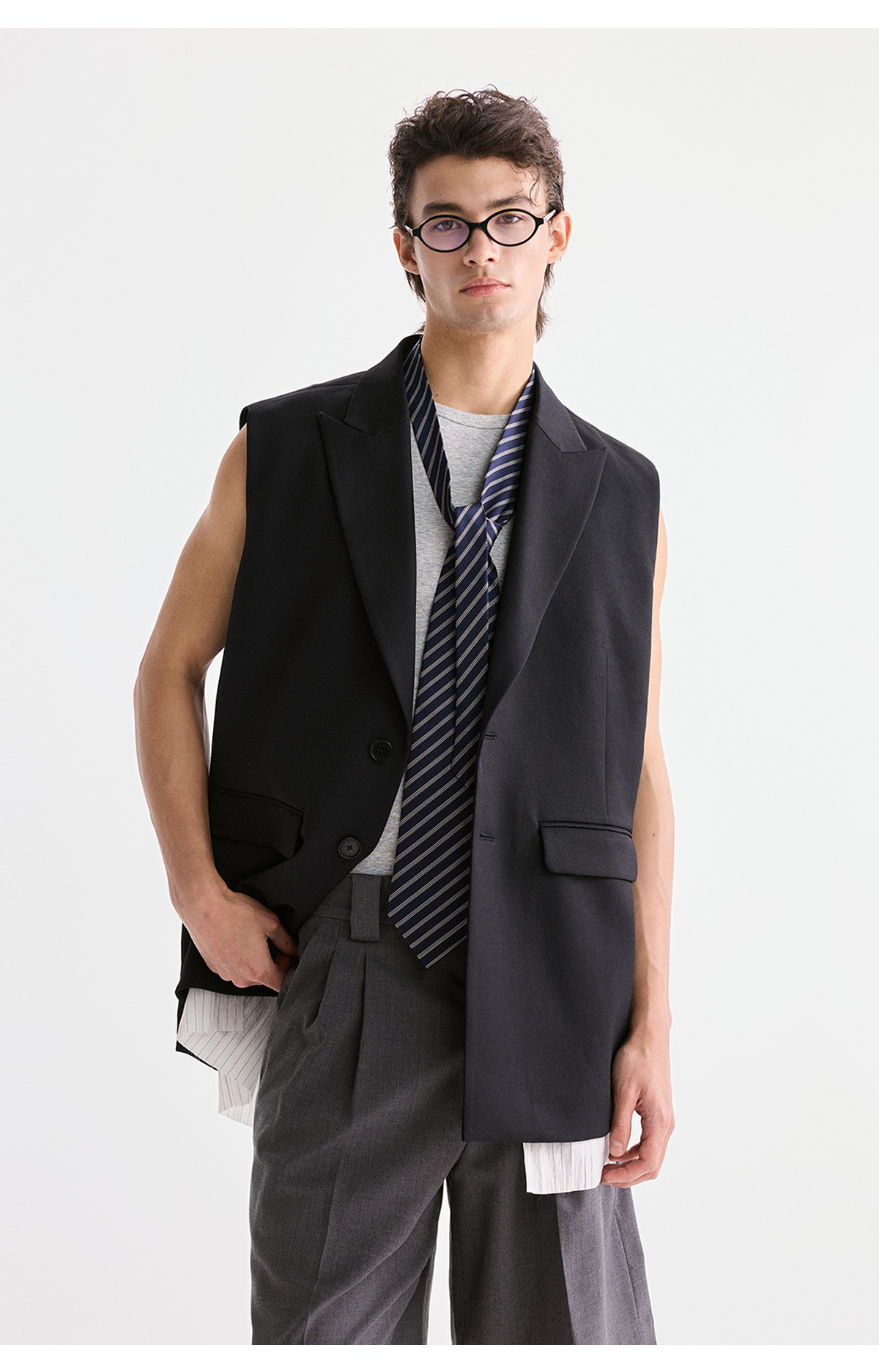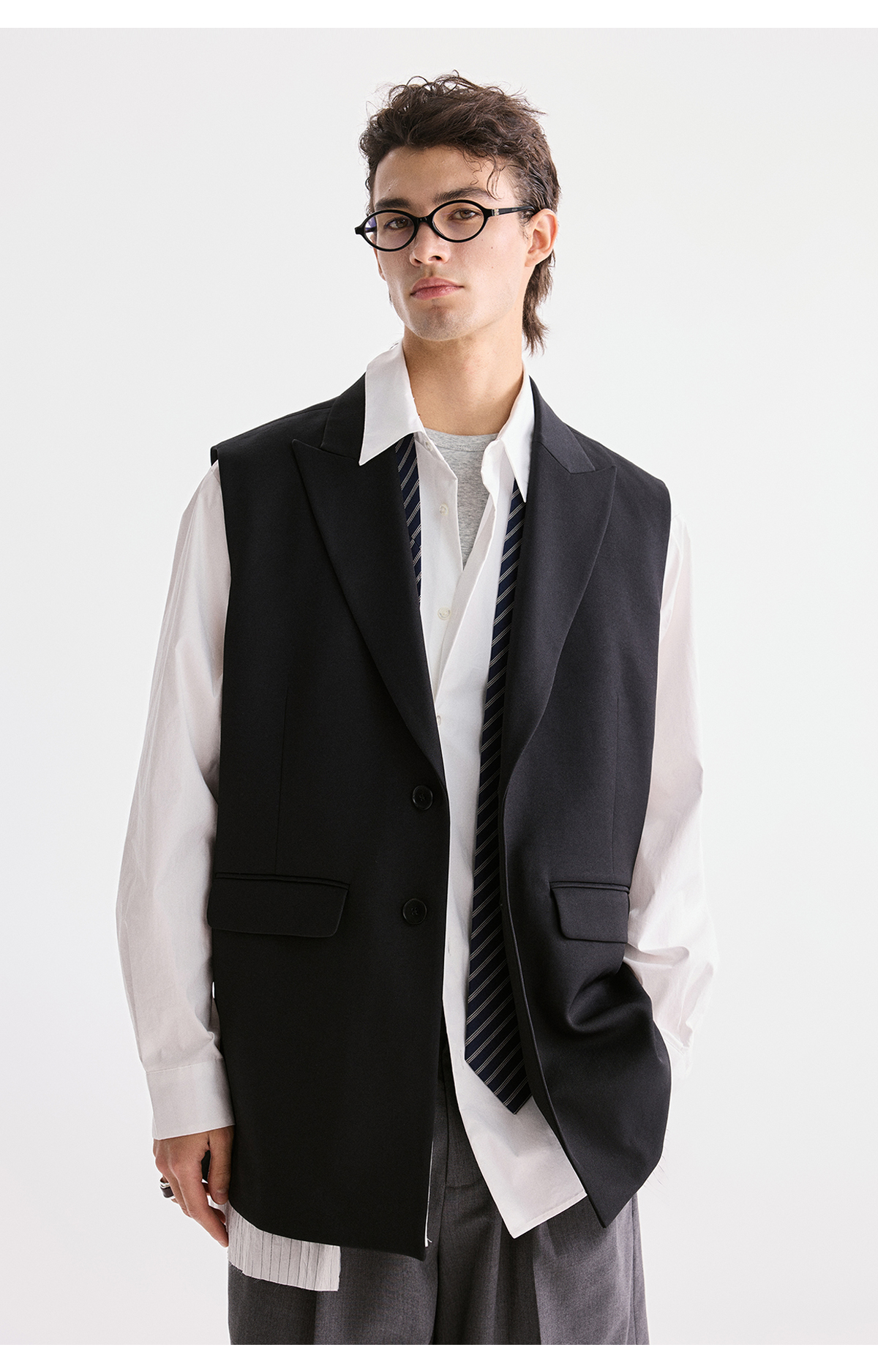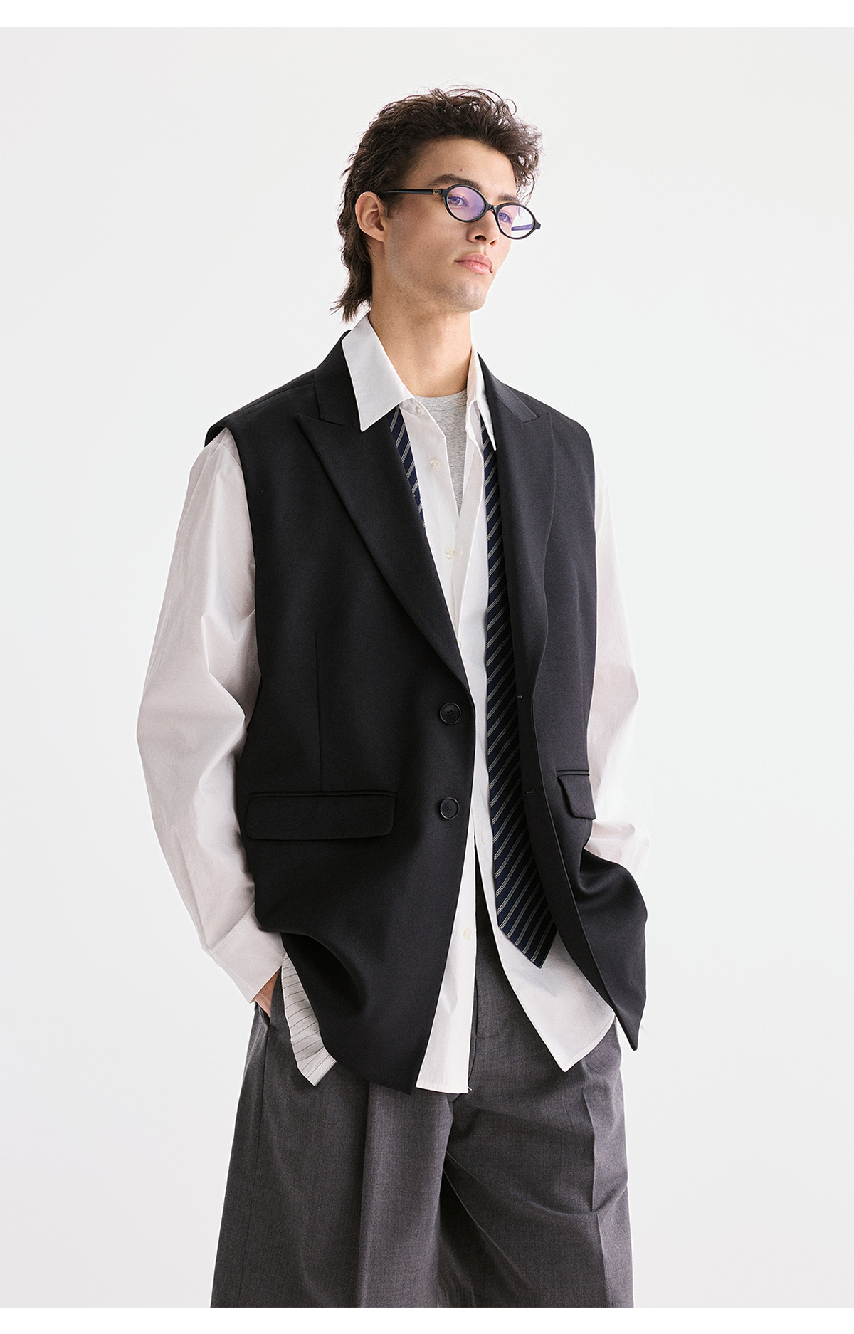 棉仓3621099002-【阁中雅仕】廓形戗驳领休闲西装马甲