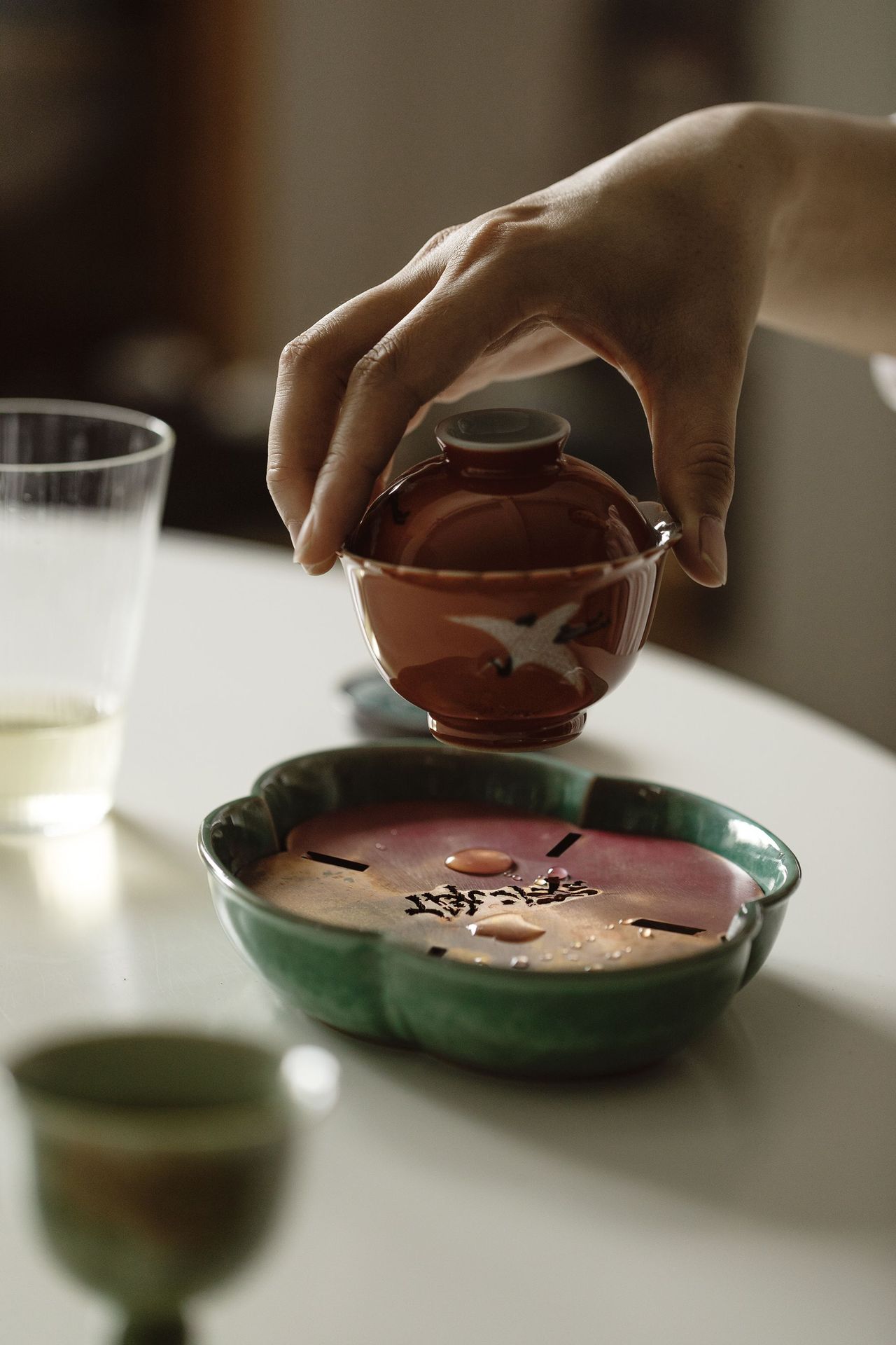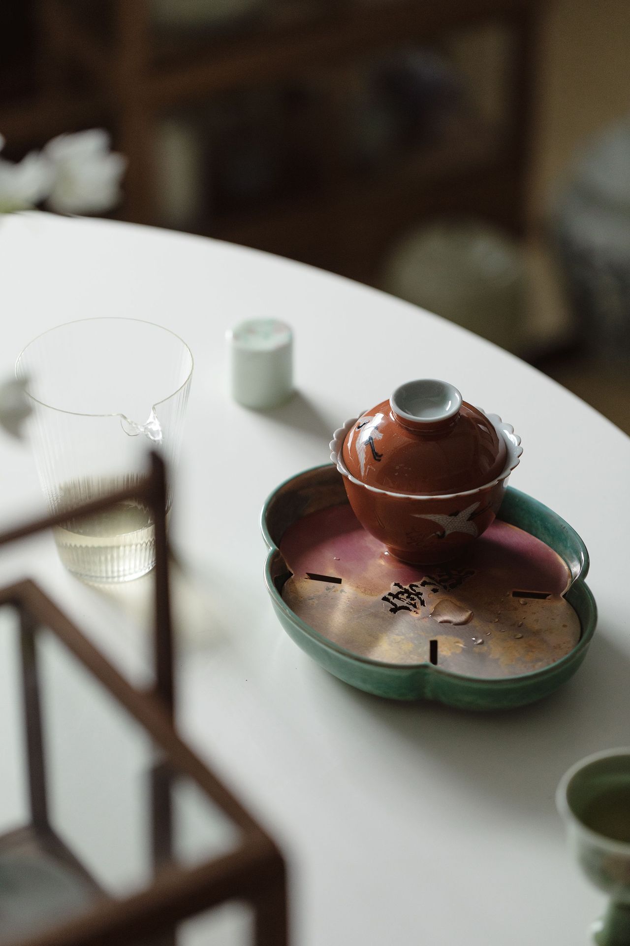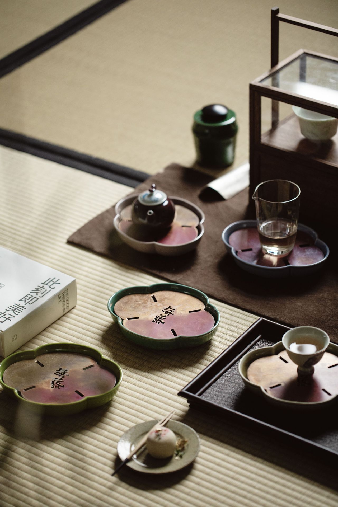 永利汇无落陶瓷海棠壶承家用蓄水小茶台日式干泡盘双层茶盘创意