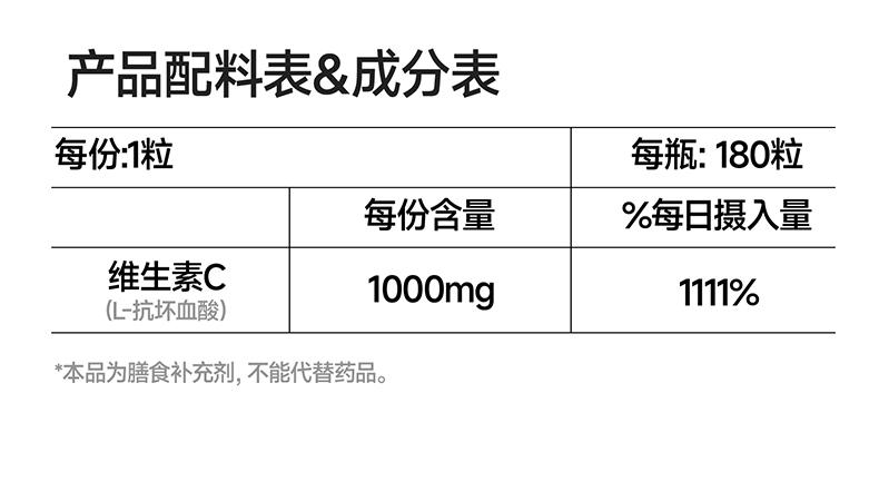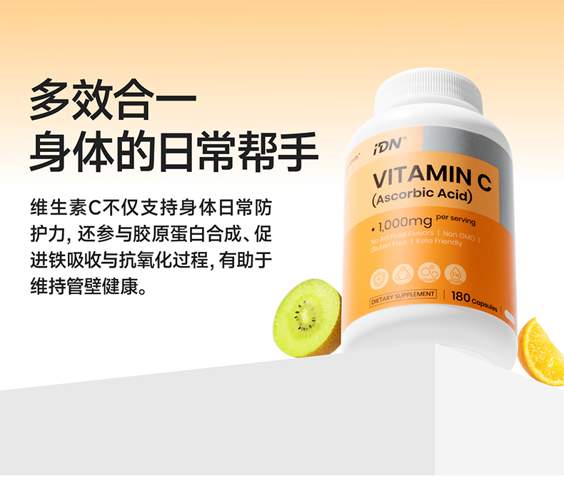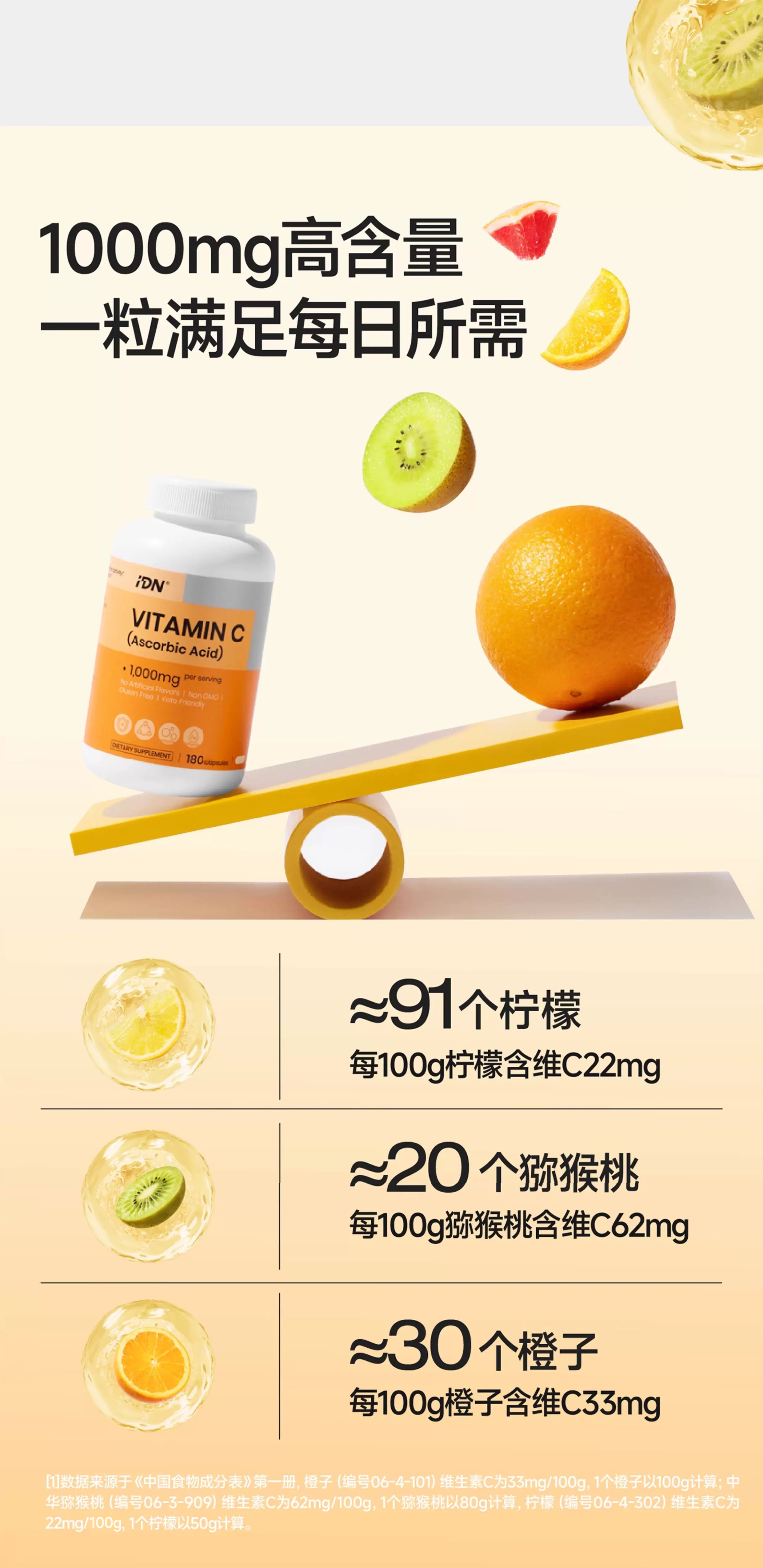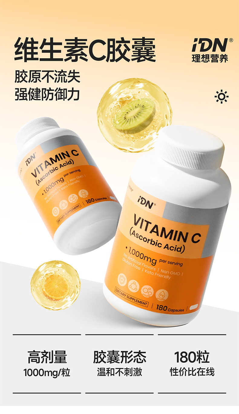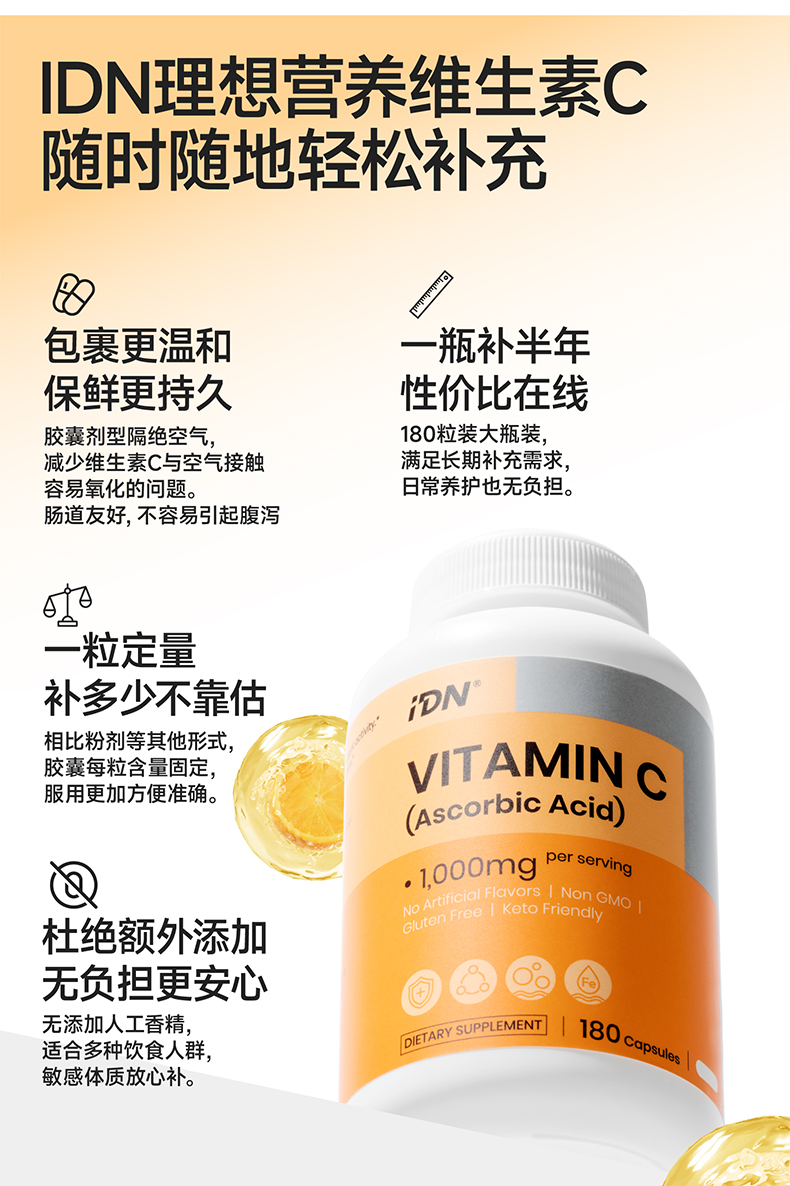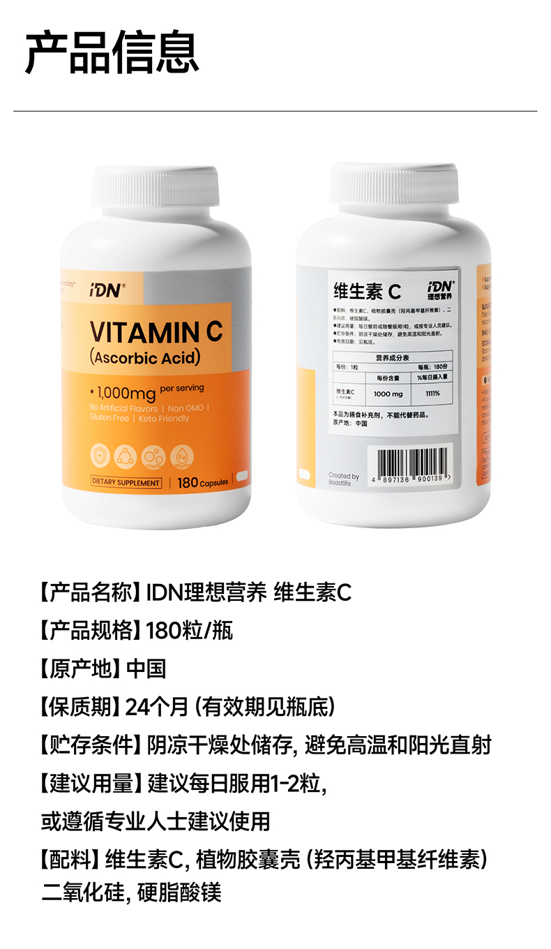 IDN理想营养 | 维生素C胶囊 1000mg 180粒/瓶(跨境海淘商品不支持7天无理由退换)