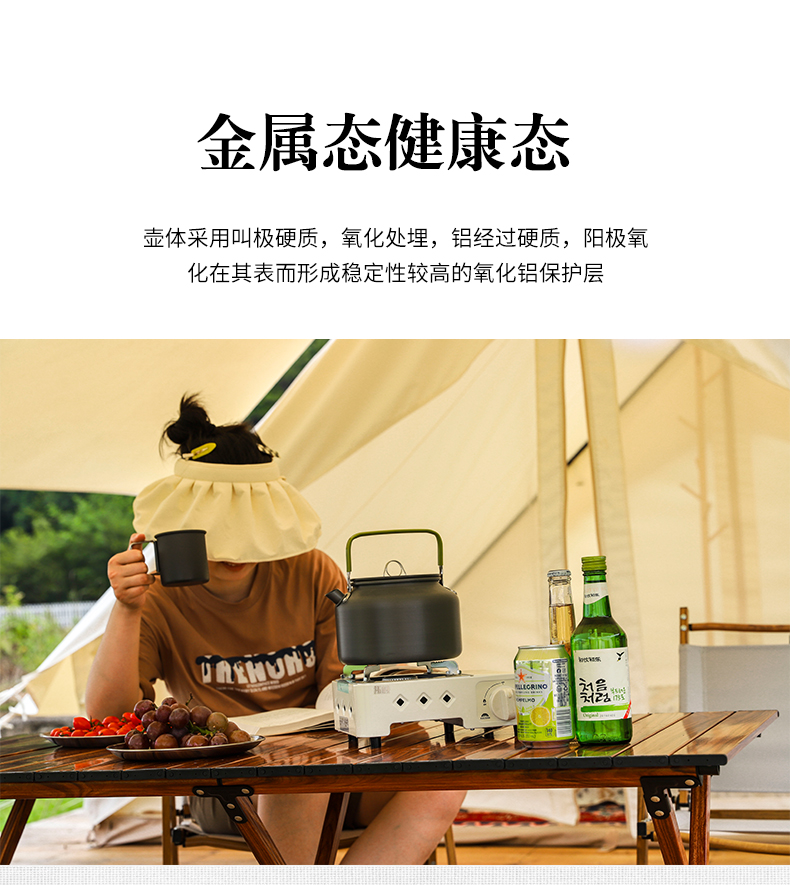 【安于乡野!户外野营便携式茶壶】日常做水壶、咖啡壶亦可,造型简洁优美!登山垂钓野炊野餐烧水壶1.8升大容量
