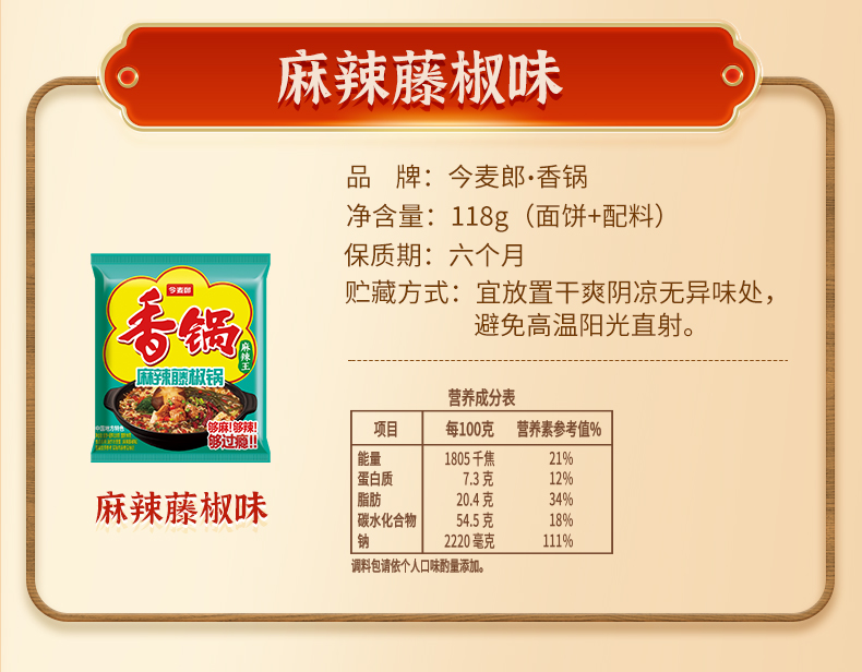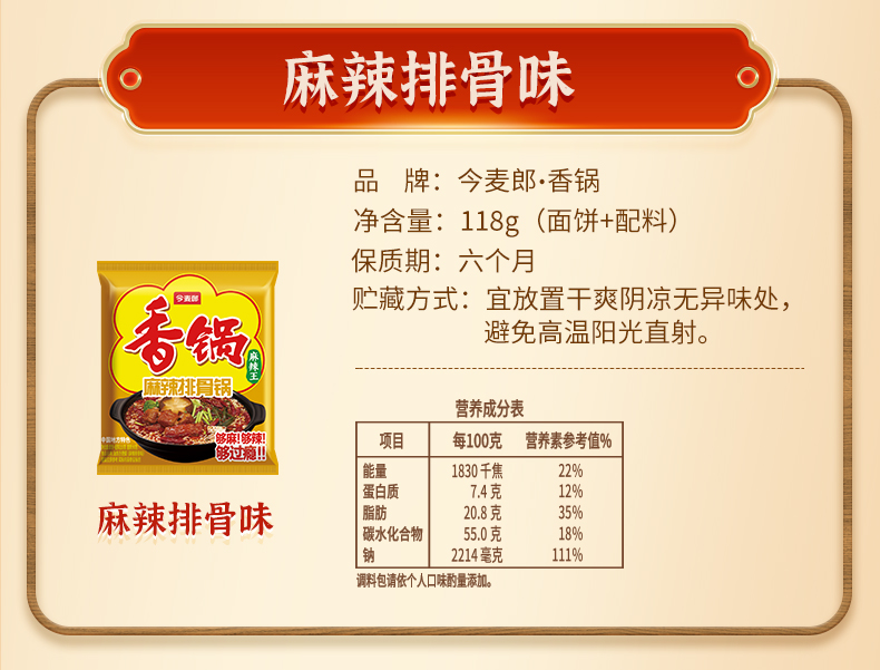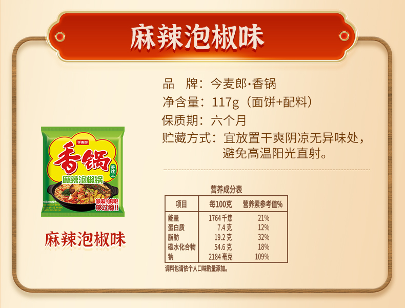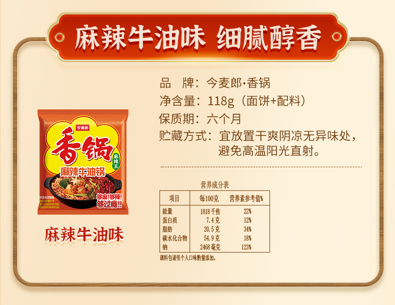 【店铺专享】今麦郎香锅地道辣面香菜锅牛油锅15连包/24袋整箱装