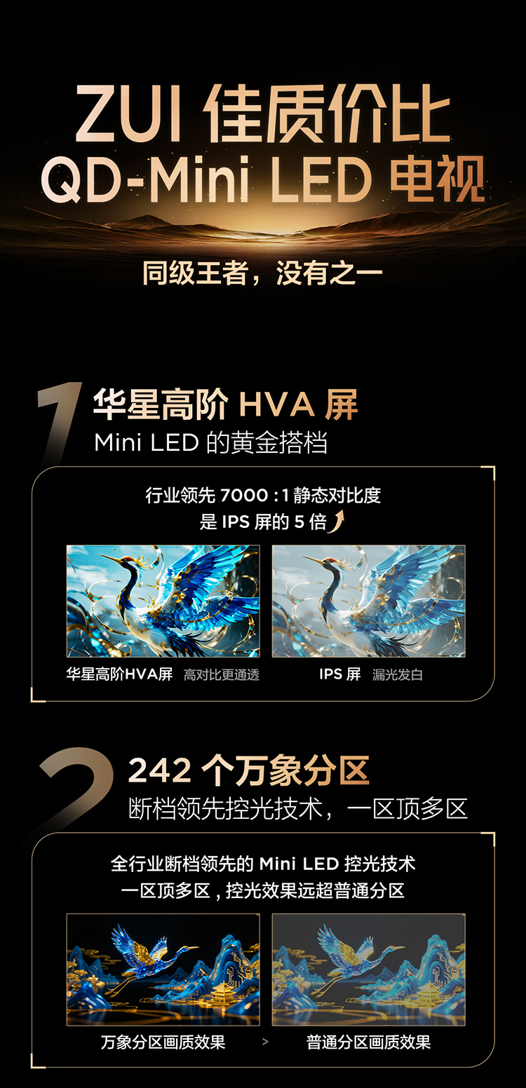 【FFALCON雷鸟】鹤6 26款 65英寸 万象分区QD-MiniLED1100nits 高阶HVA安桥音响288Hz高刷 65R69A