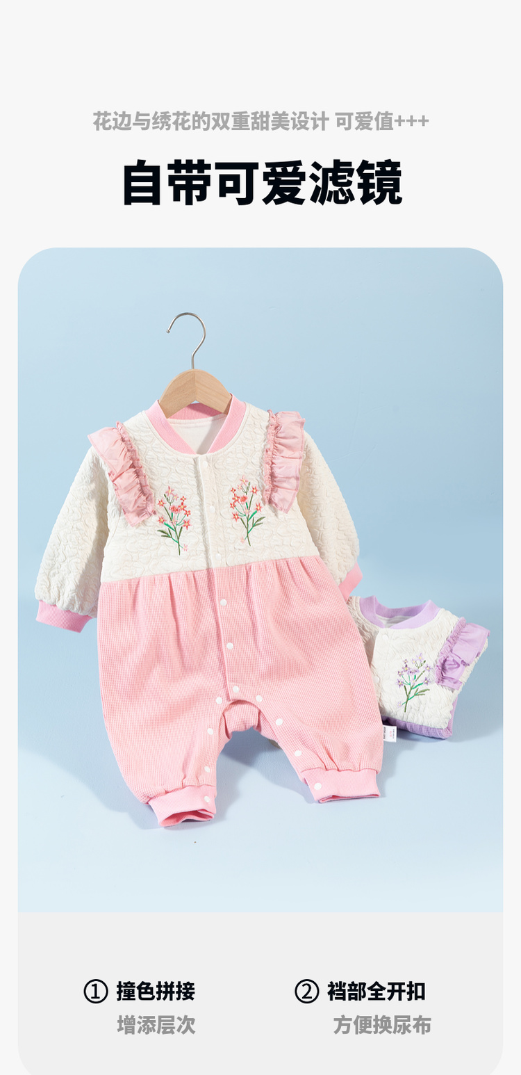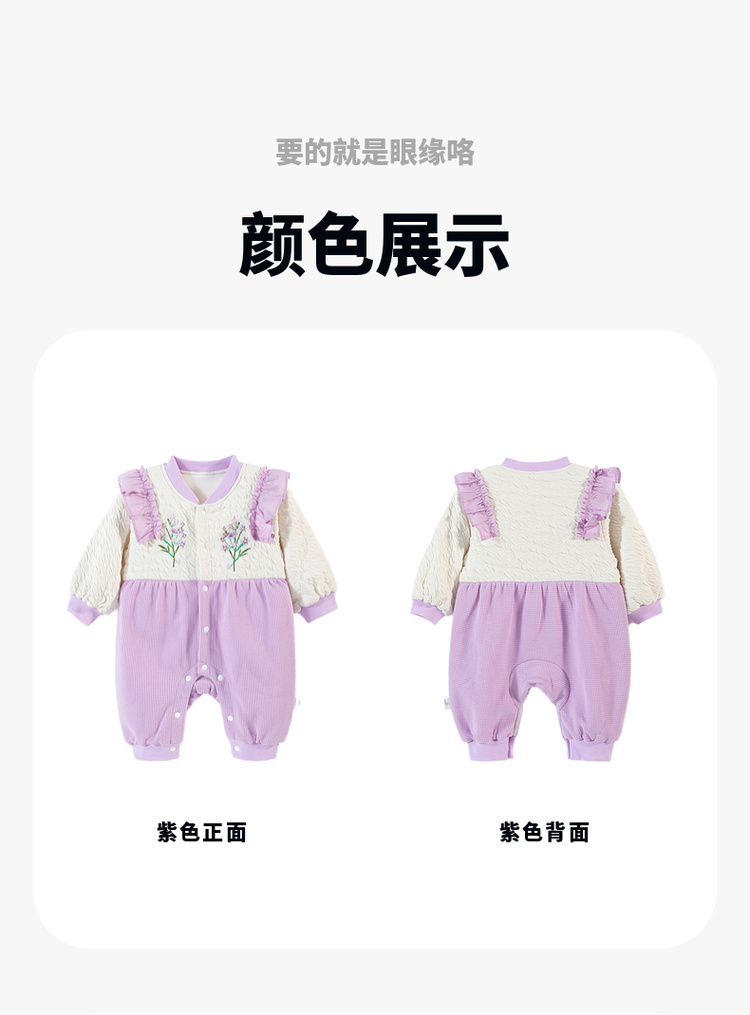 贝贝怡童装婴儿前开连体衣女宝宝满月服春秋撞色哈衣爬服ZB3CL001