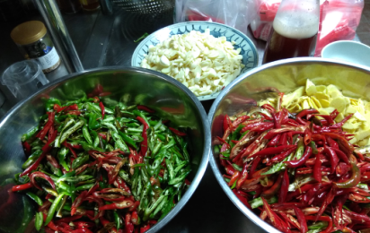 二、准备辅料:辣椒、蒜、姜