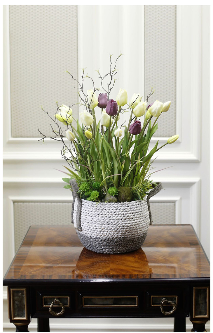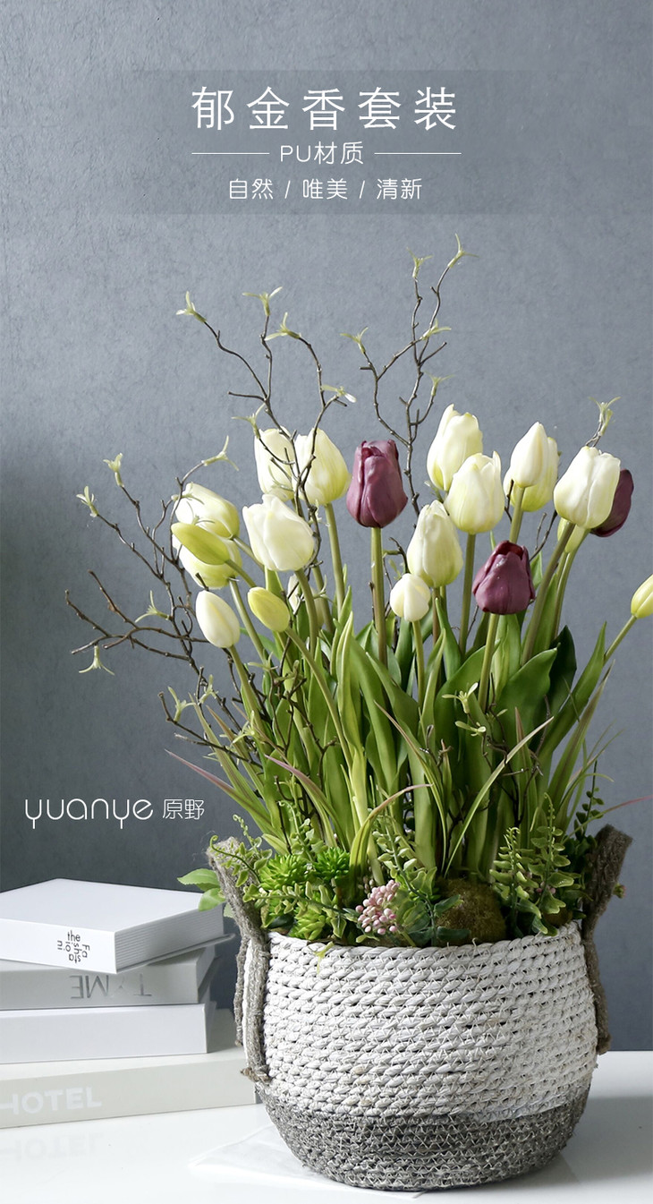 郁金香仿真花假花套装现代轻奢风格郁金香玻璃花瓶客厅餐厅装饰花