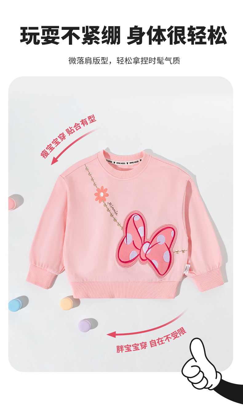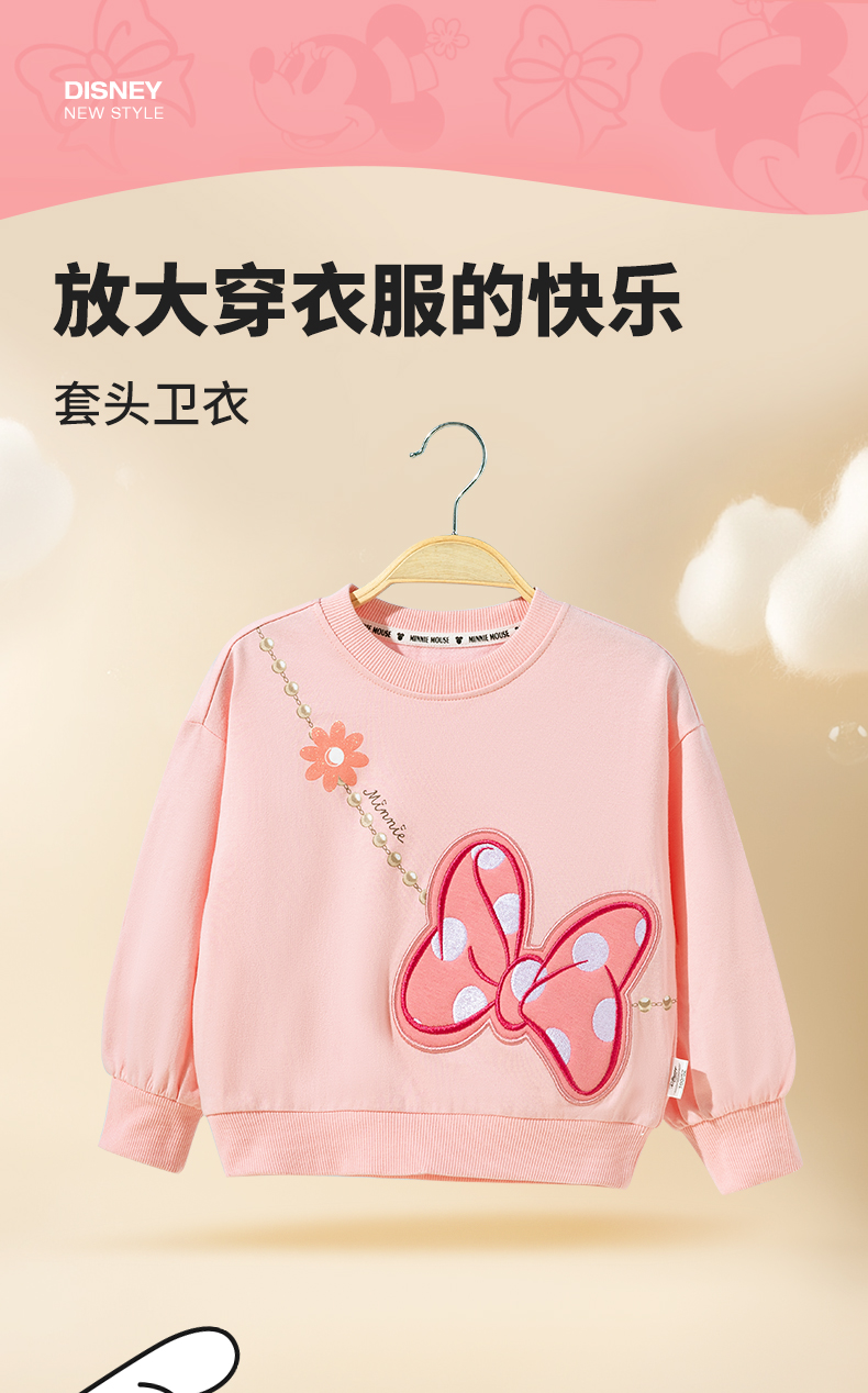 迪士尼童装春秋女童圆领卫衣儿童卡通米妮印花上衣宝宝亲肤打底衫ZD3DS051