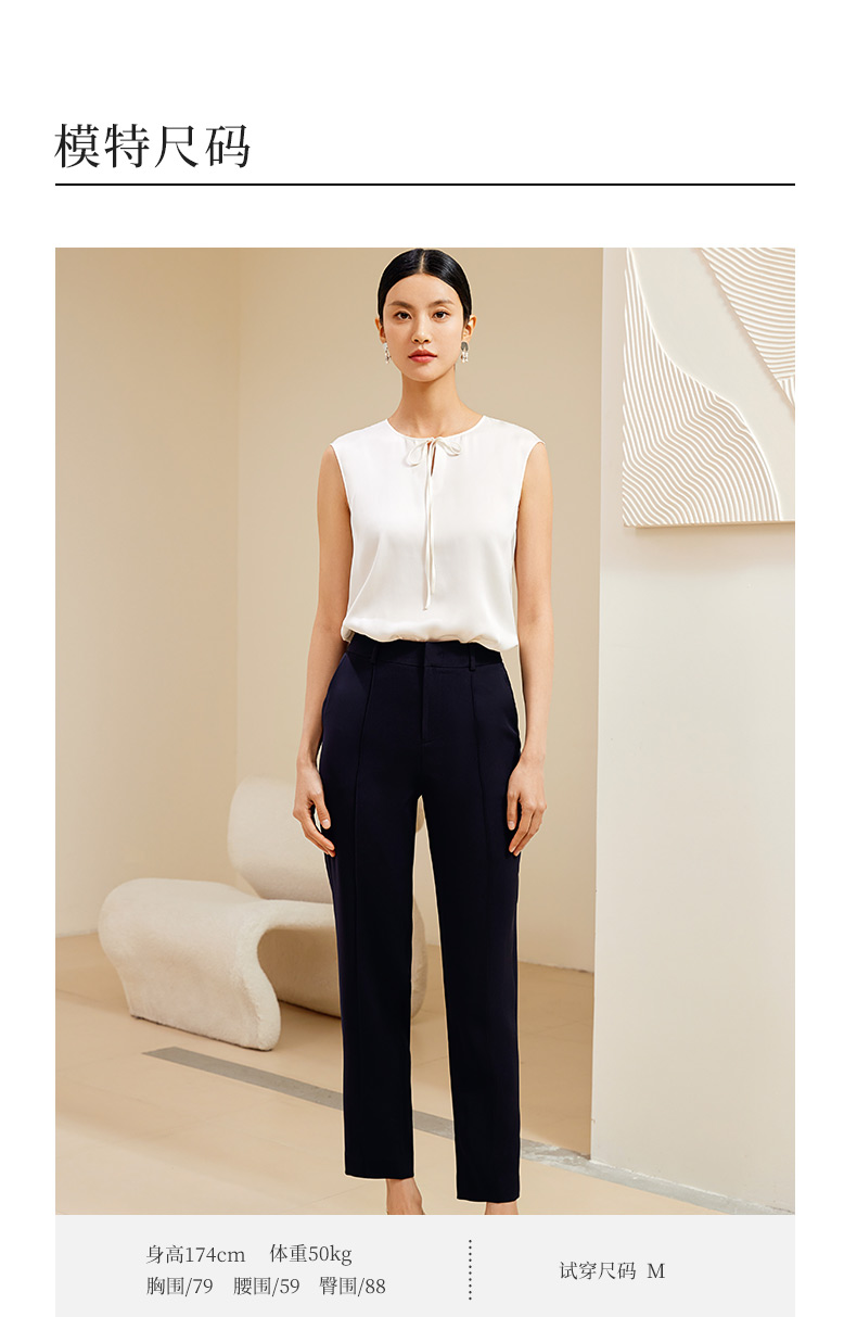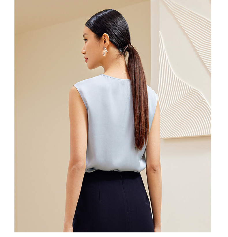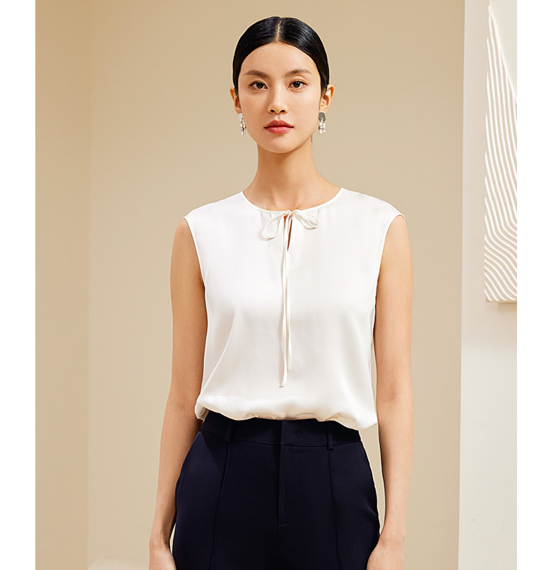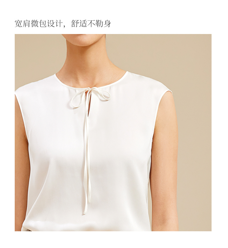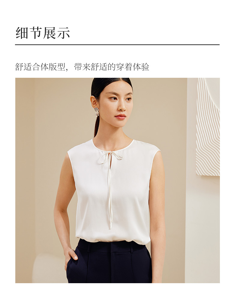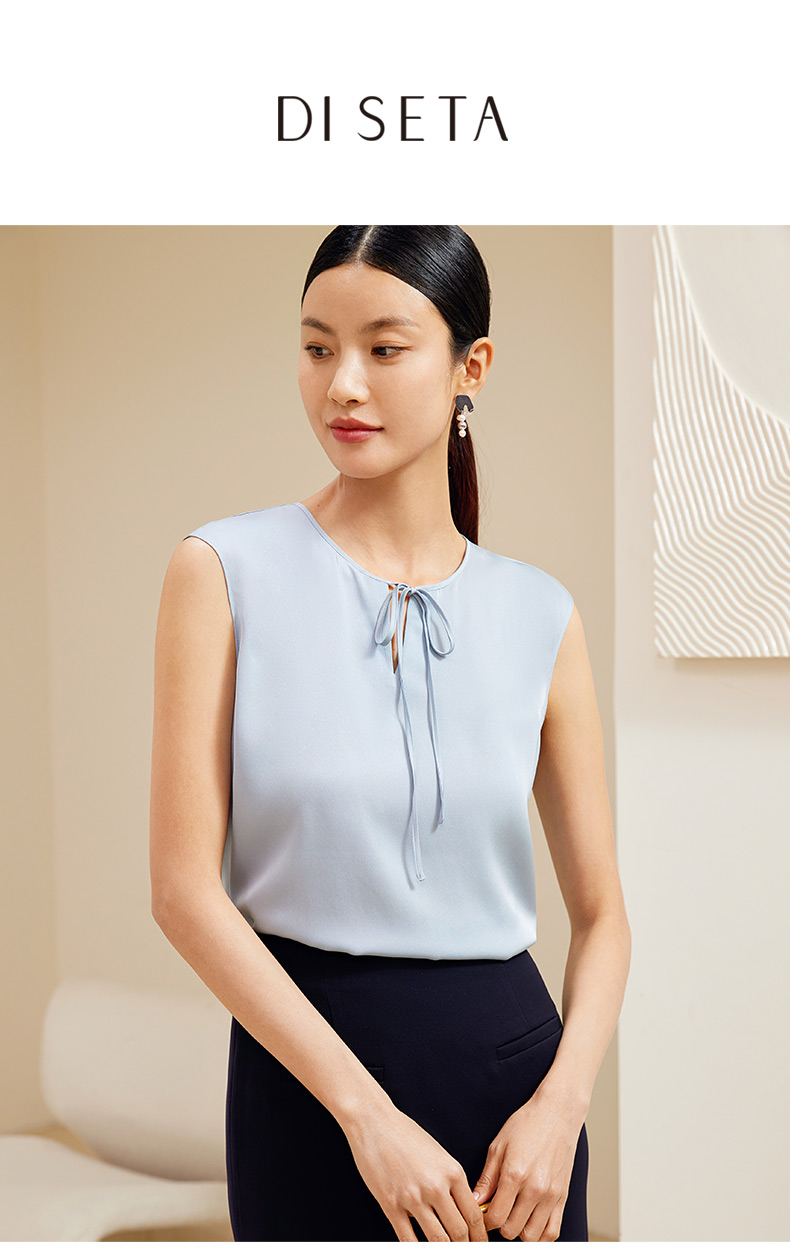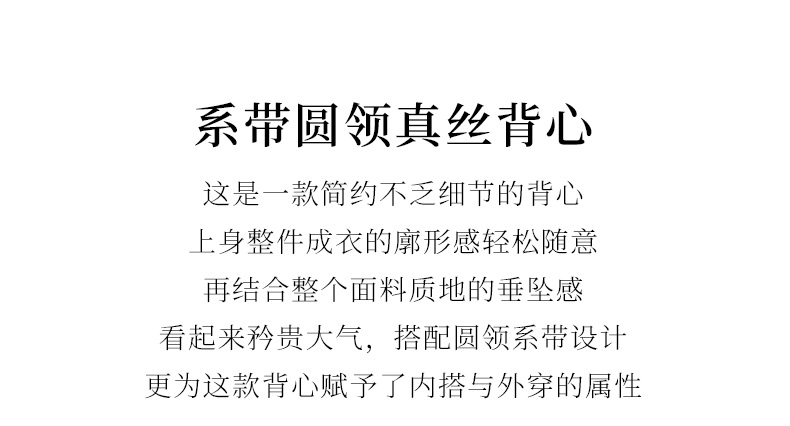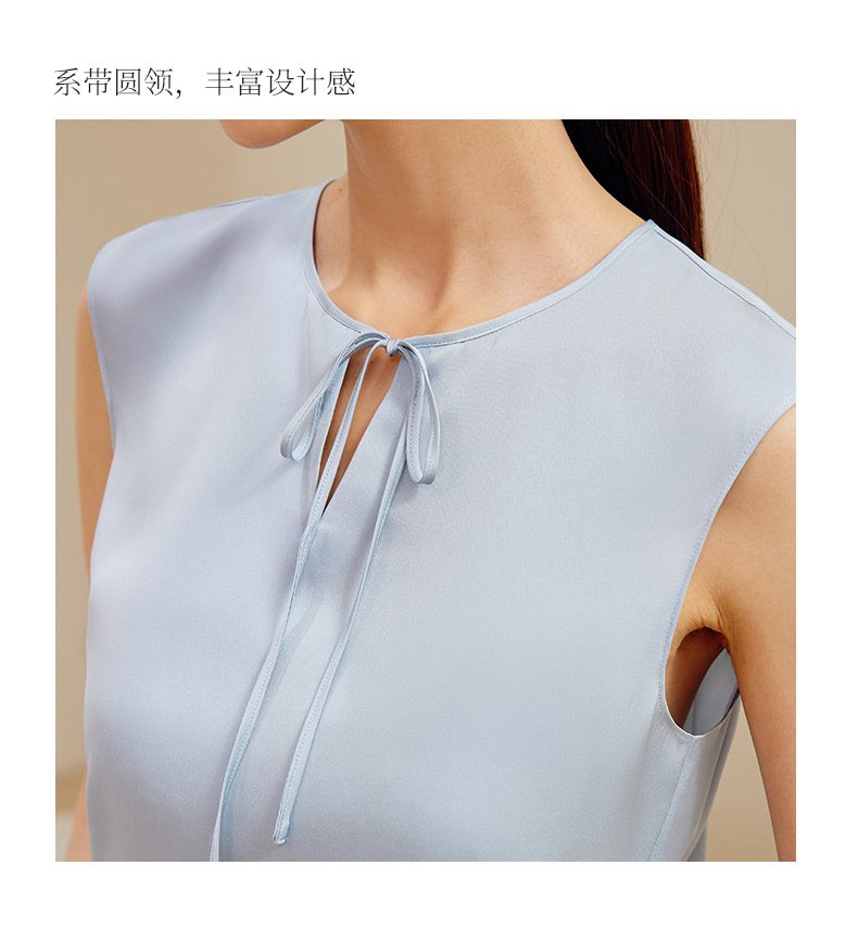 玳莎圆领系带真丝背心女2024春日新款纯色透气桑蚕丝内搭无袖上衣 EA31001