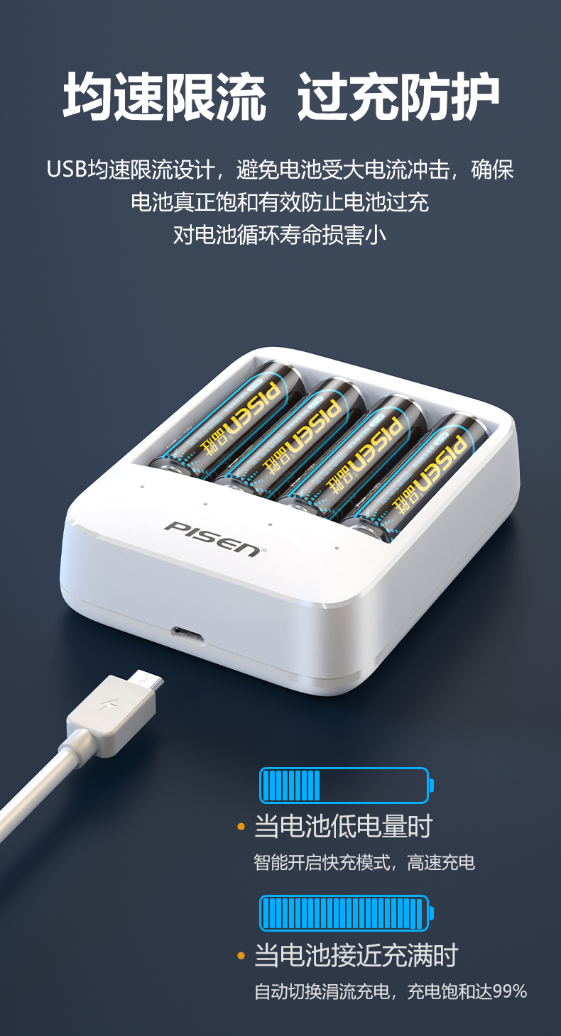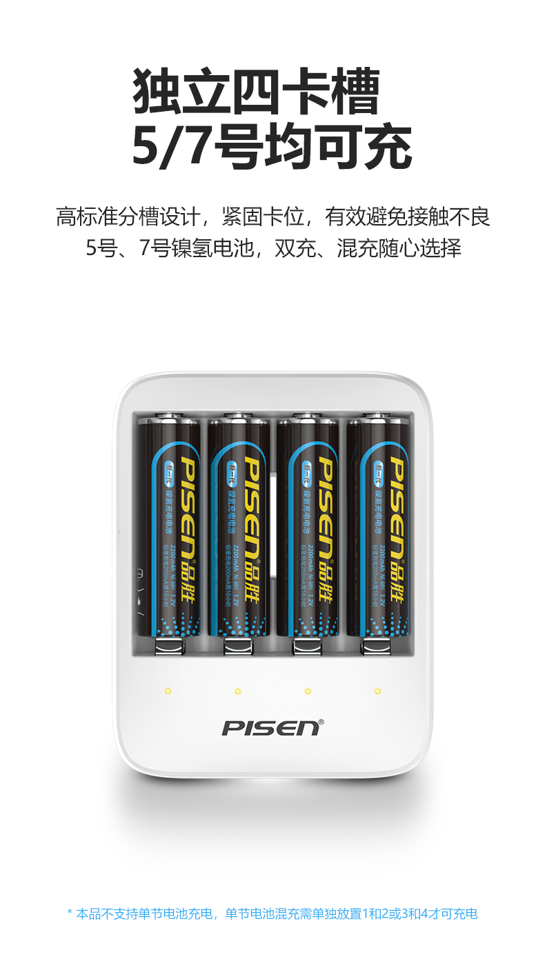 品胜 镍氢电池USB快速充电器套装TS-C127独立四槽 智能识别充电电池充电器5号7号均可充