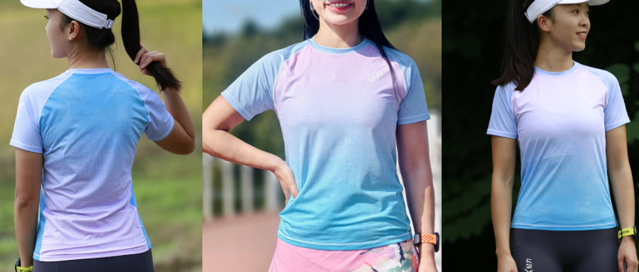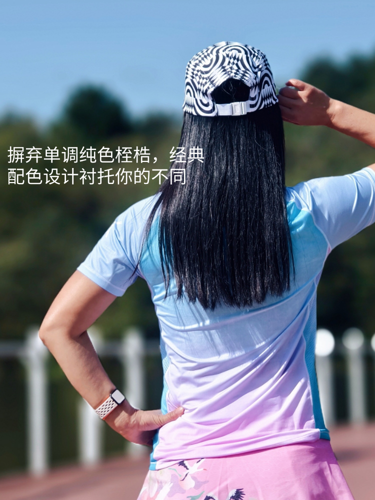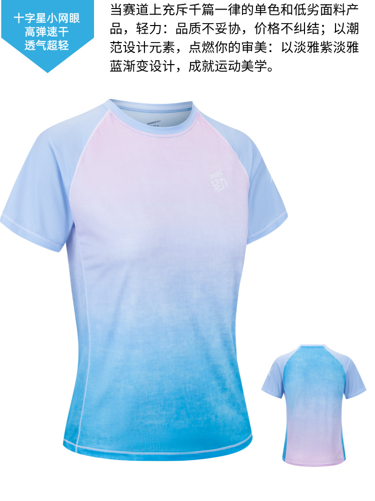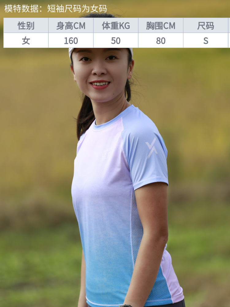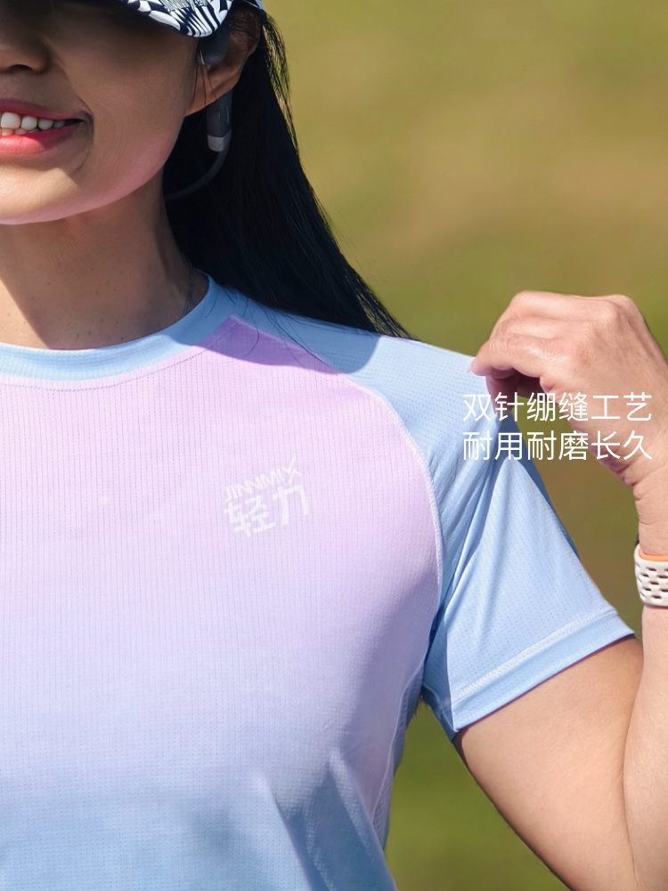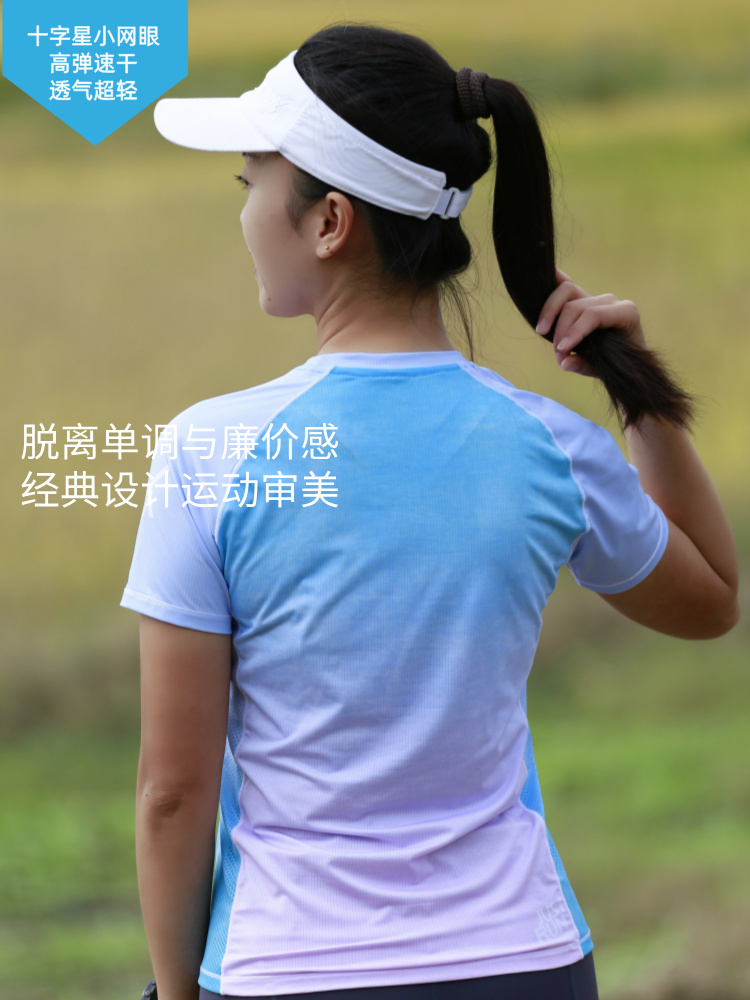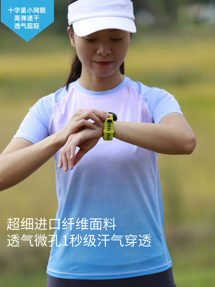 缤纷轻薄透气速干马拉松跑步运动短袖修身女