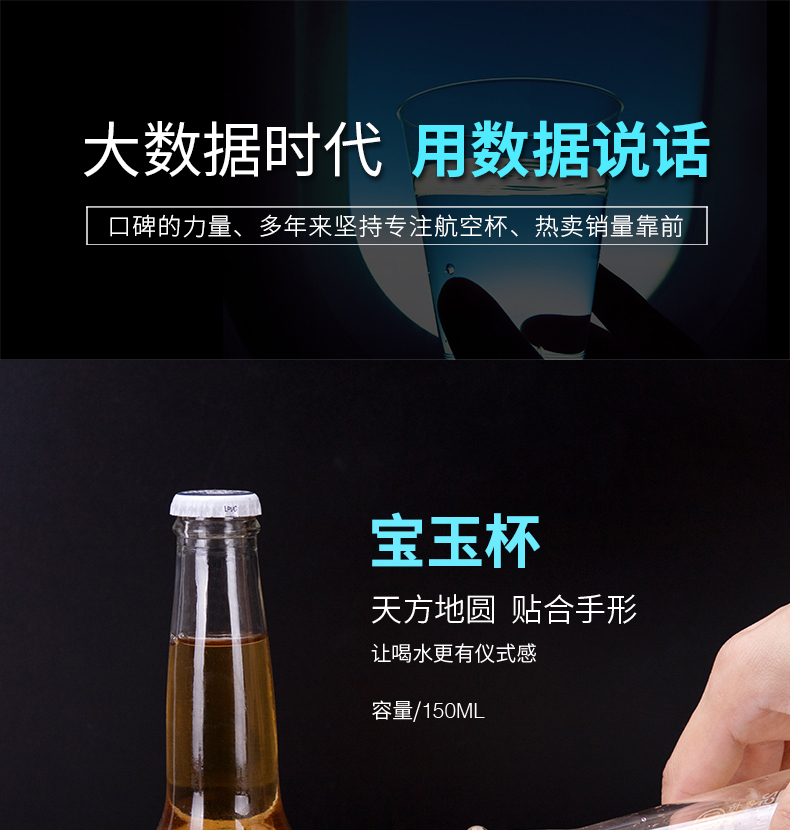 喇叭花150ml宝玉杯一次性航空杯子喝酒专门杯加厚透明塑料杯