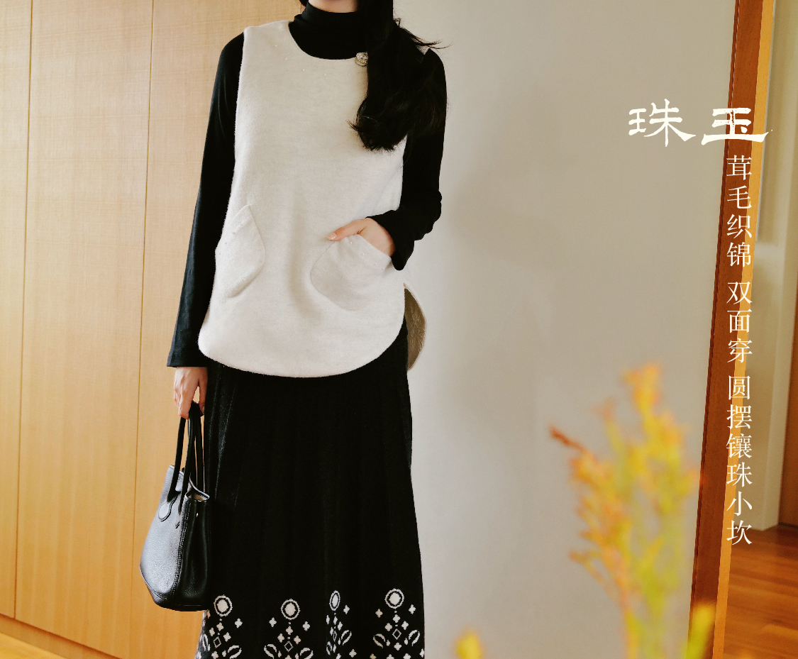 珠玉 茸毛织锦 双面穿 圆摆镶珠小坎 山林曦照
