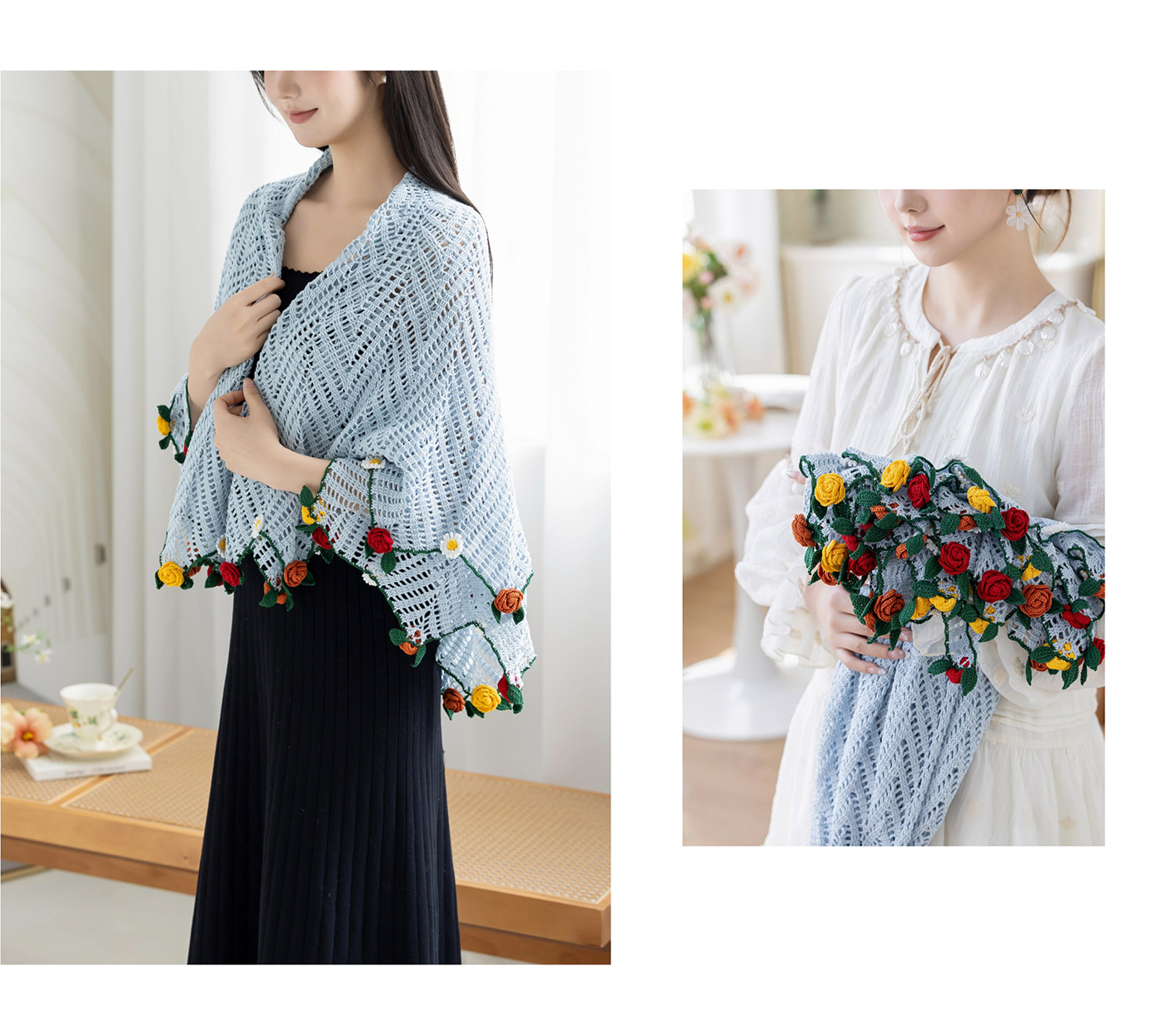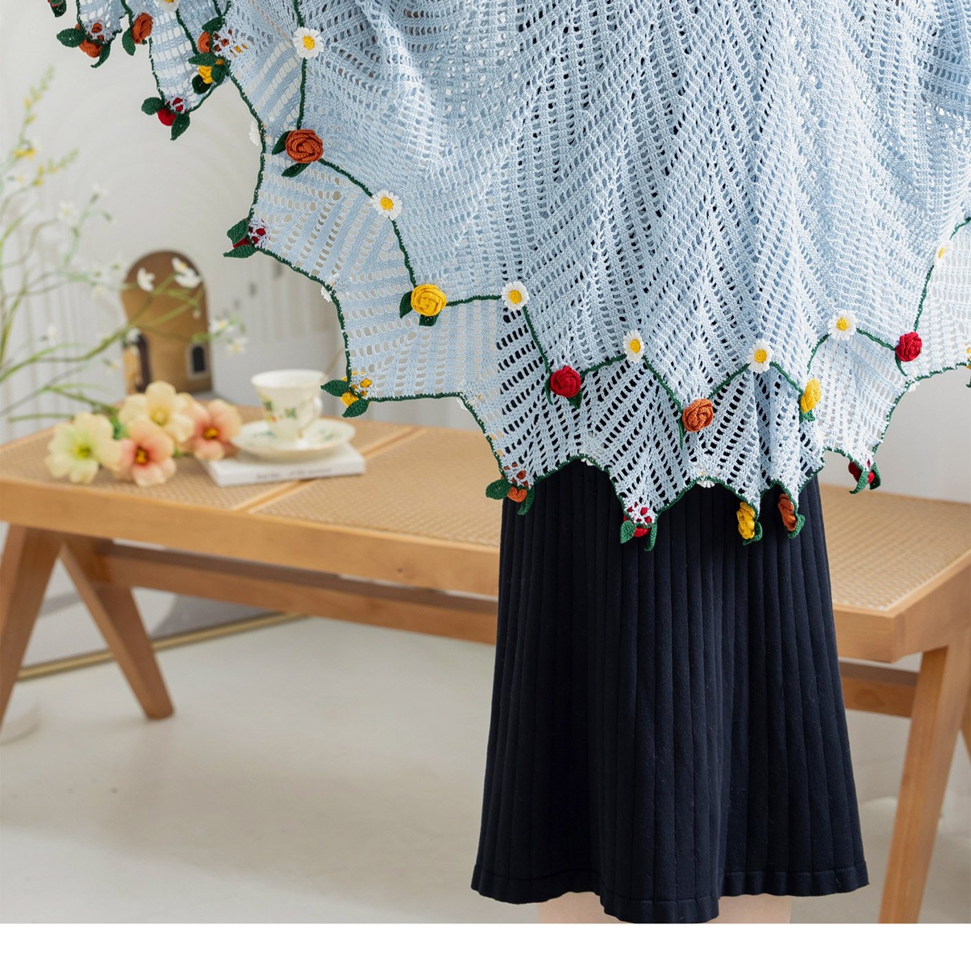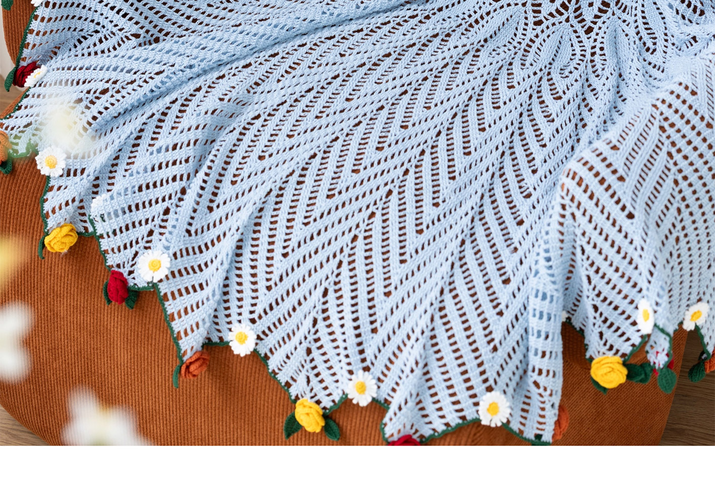 苏苏姐家蓝屿蕾丝桌垫手工diy钩针编织毯子披肩蕾丝线毛线材料包