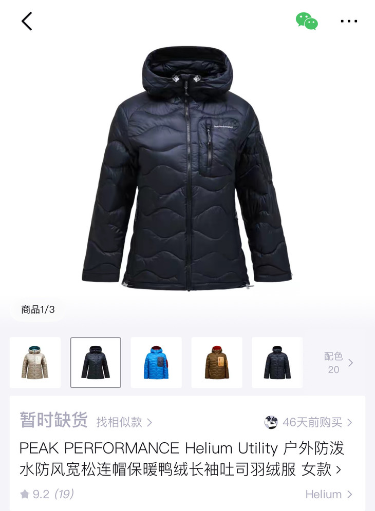 Helium 经典绗缝纹路诉说着Peak Performanc的基因和历史固定风帽 双向可调节下摆和袖口弹力滚边设计更是让你能在户外撒野。