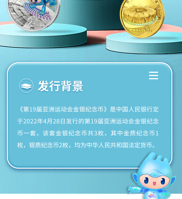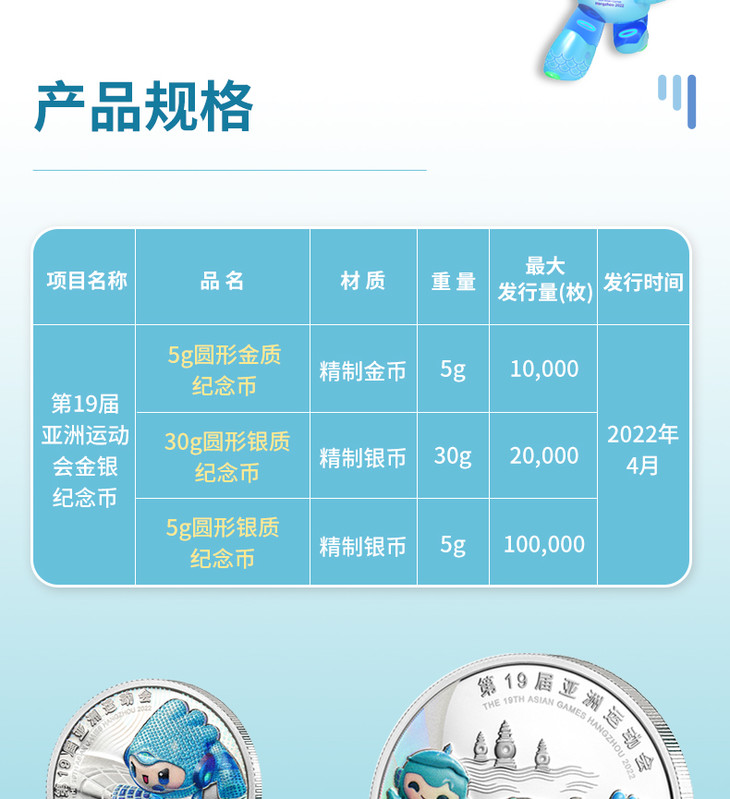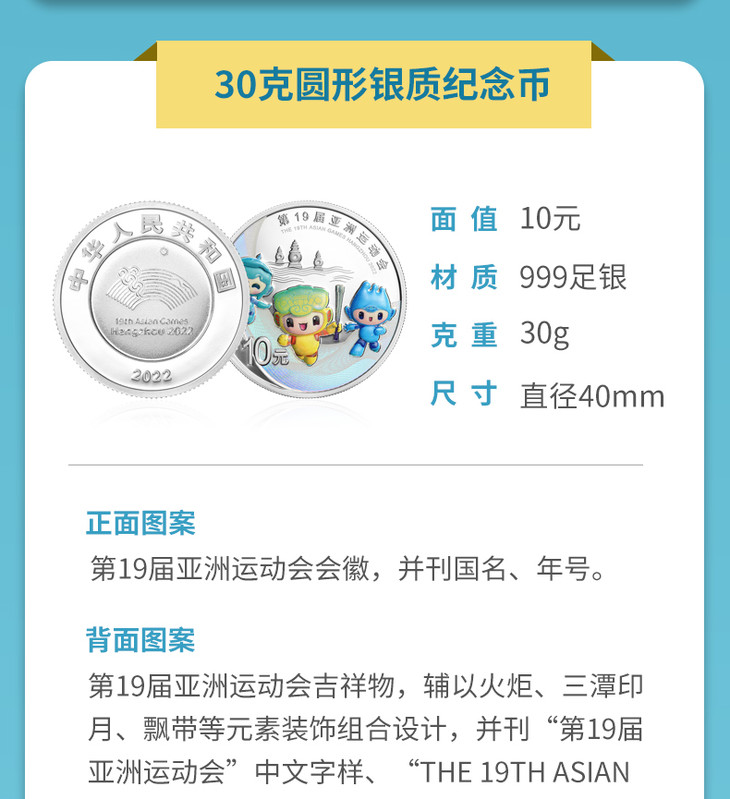 这是我国第三套亚运会金银币,与前两届相比,不仅规格减少到3种,发行量也大幅缩减,拿30克银币来说,此次发行量仅2万枚,而2010年的银币总发行量达12万枚,整整缩减了六分之五。