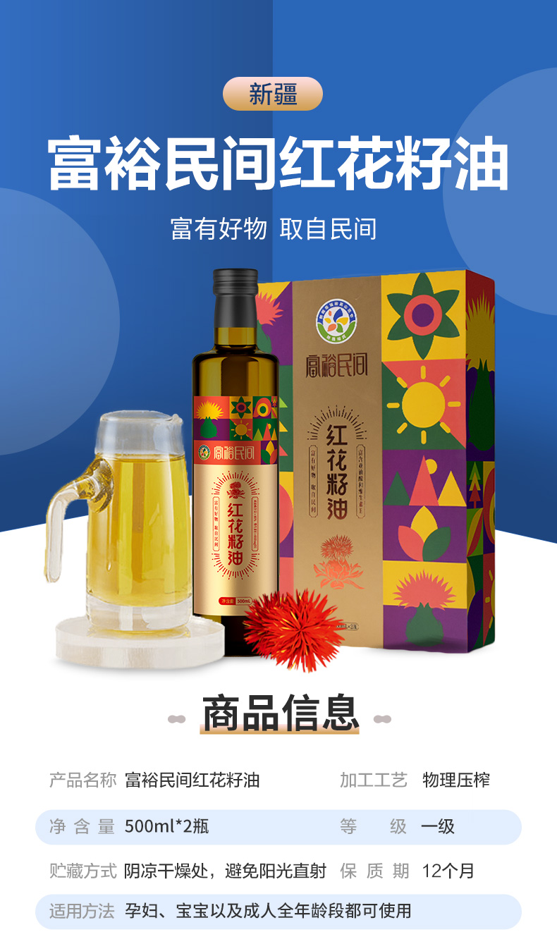 富裕明间红花籽油500ml*2