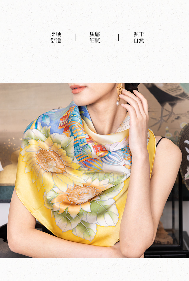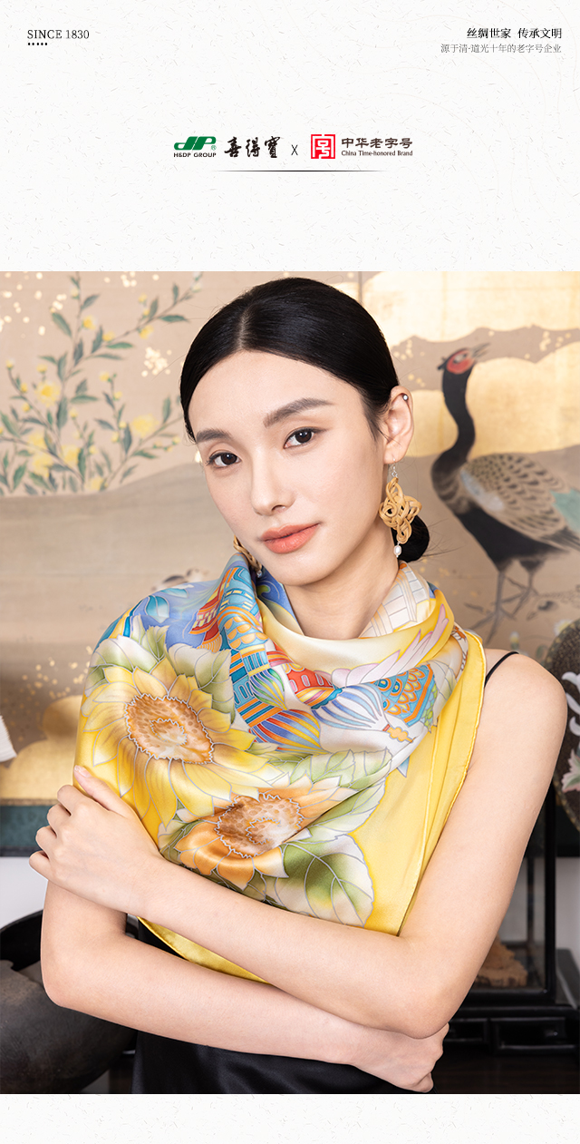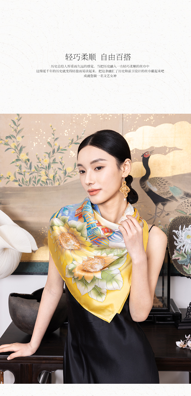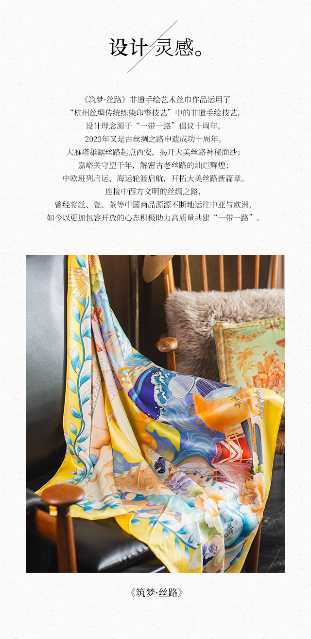 喜得宝进博会文创款《筑梦丝路》手绘非遗技艺丝巾杭州丝绸100%桑蚕丝素绉缎