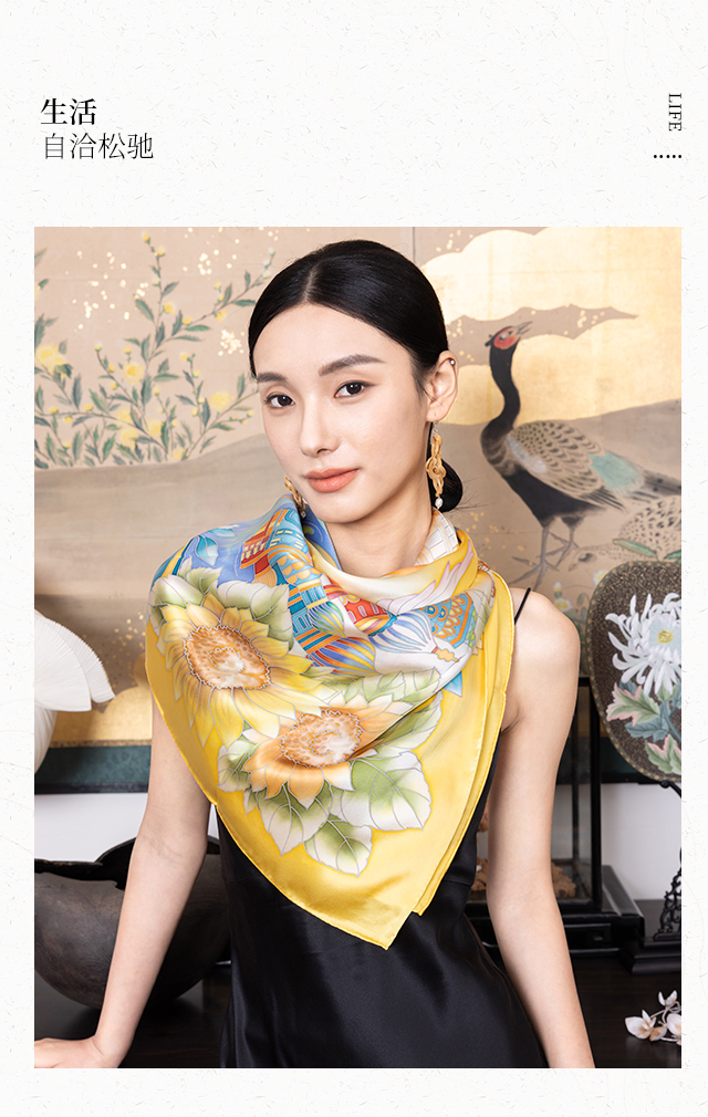 喜得宝宋韵芳华65cm*65cm 手工卷边桑蚕丝小方巾