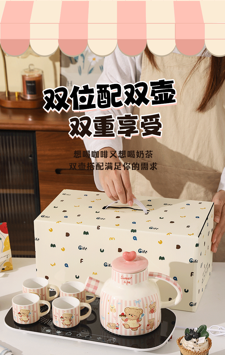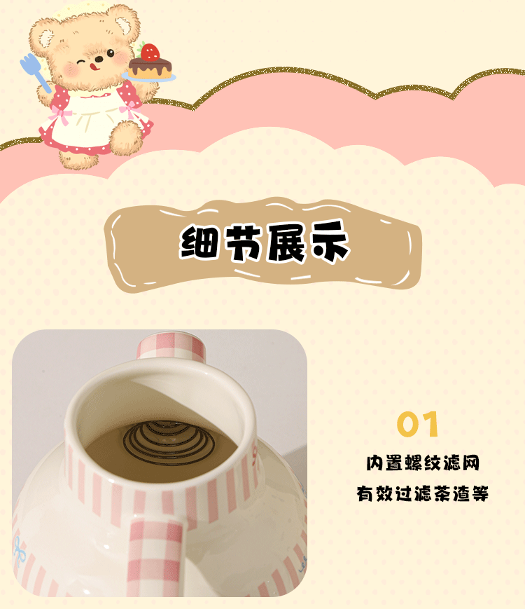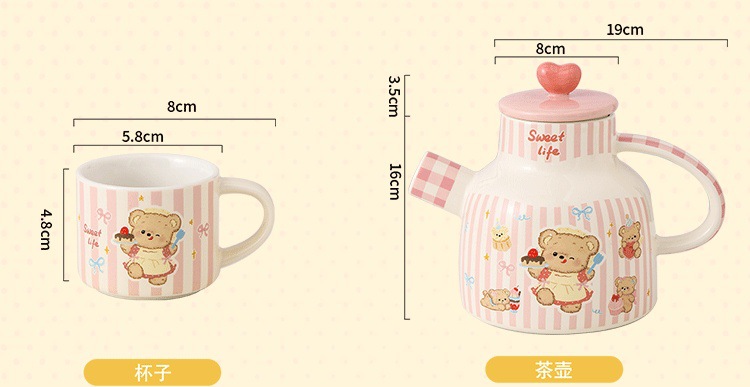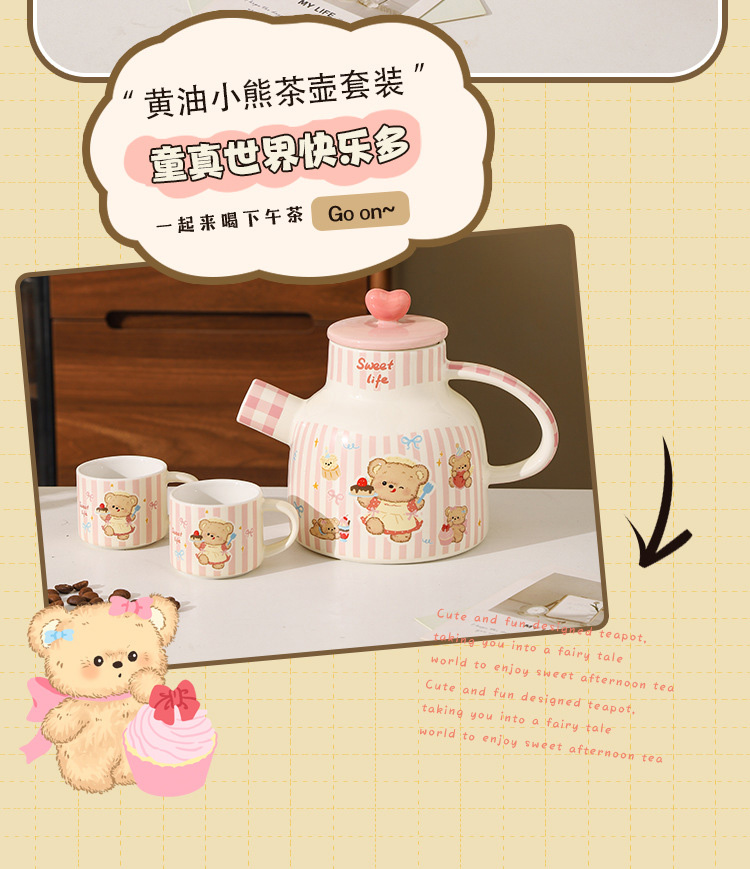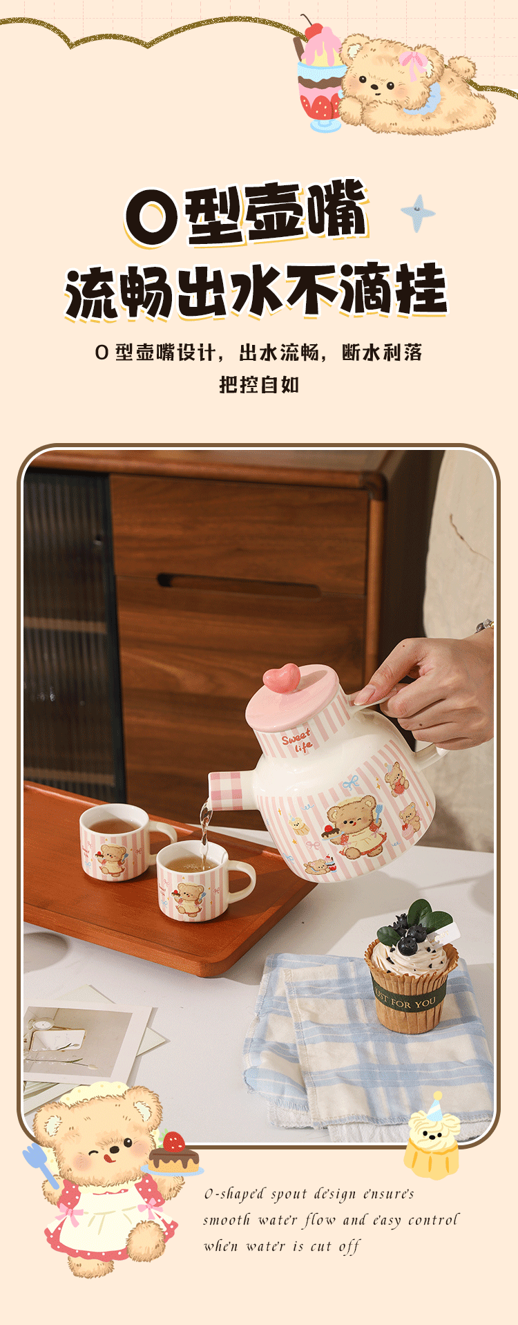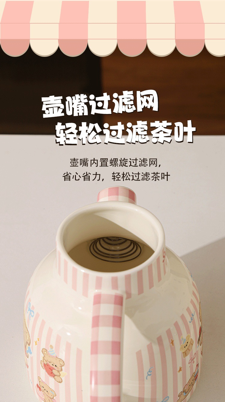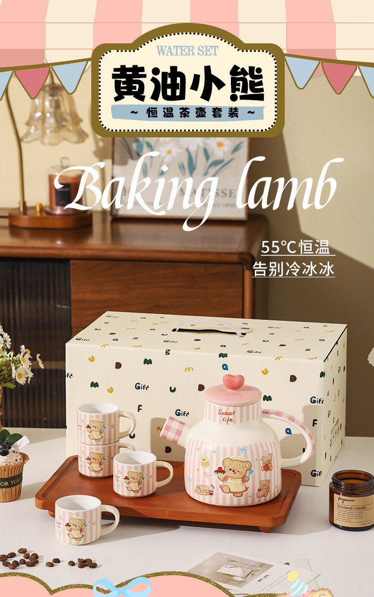 【黄油格子小熊系列】恒温茶壶套装网红陶瓷茶具套装ins风高颜值卡通家用办公泡茶杯壶