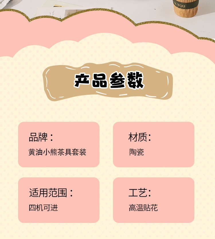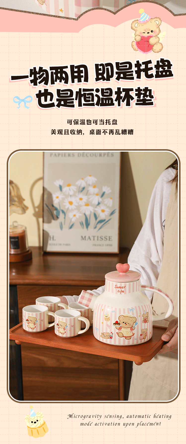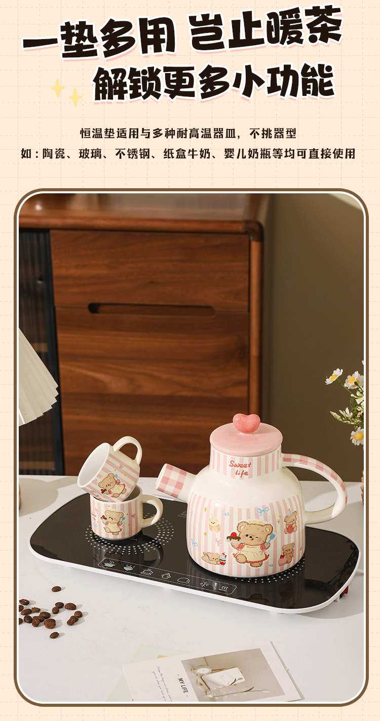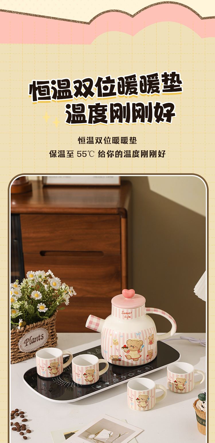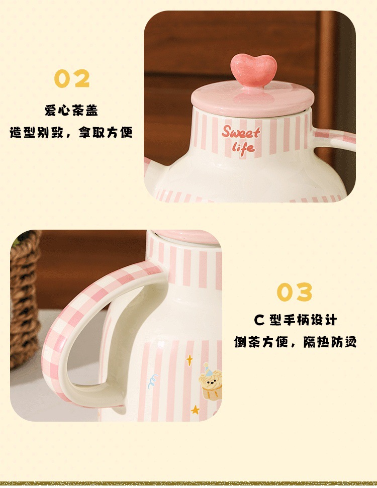 【黄油格子小熊系列】恒温茶壶套装网红陶瓷茶具套装ins风高颜值卡通家用办公泡茶杯壶