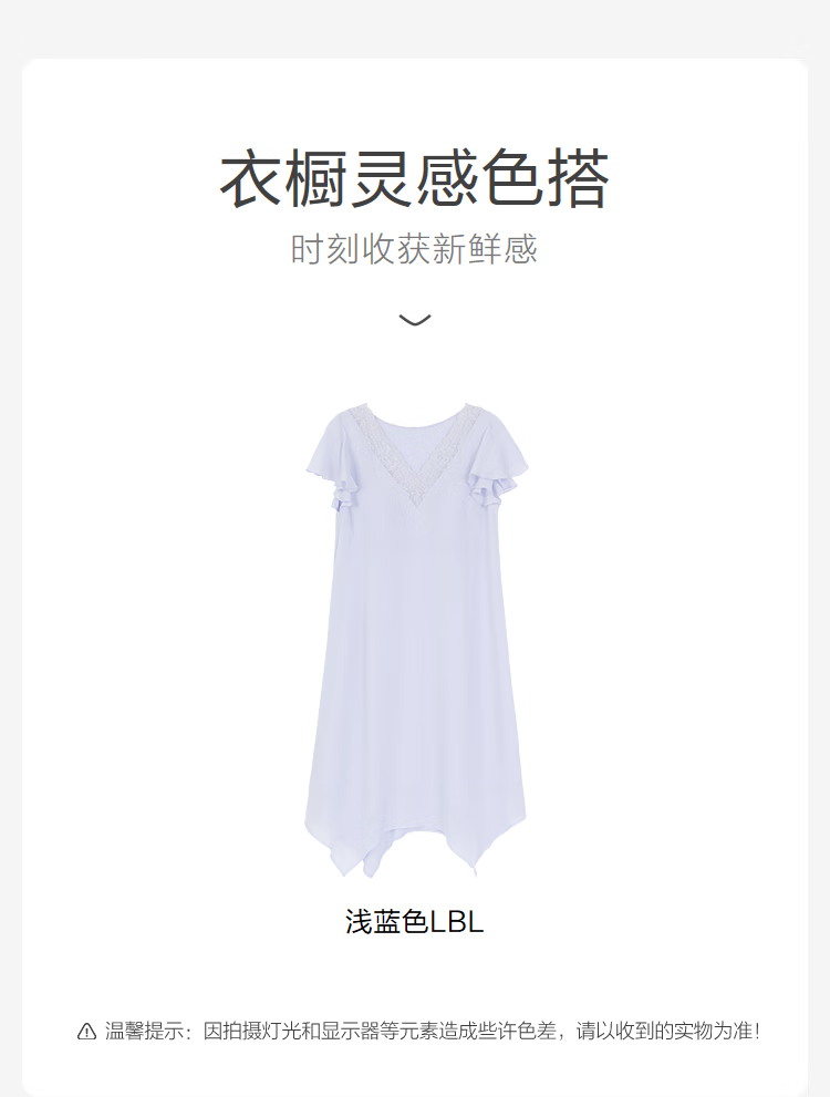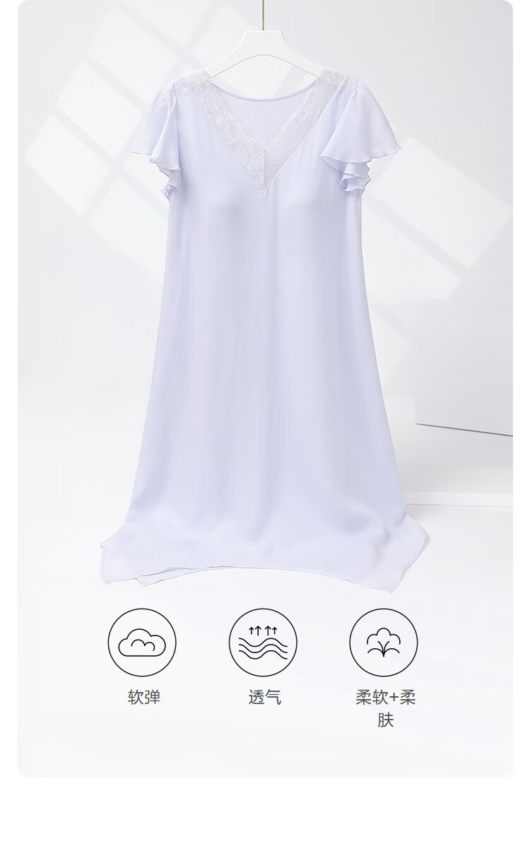 【3F】安莉芳新品莱赛尔夏季v领短袖短裙女士带杯性感家居裙EL00847
