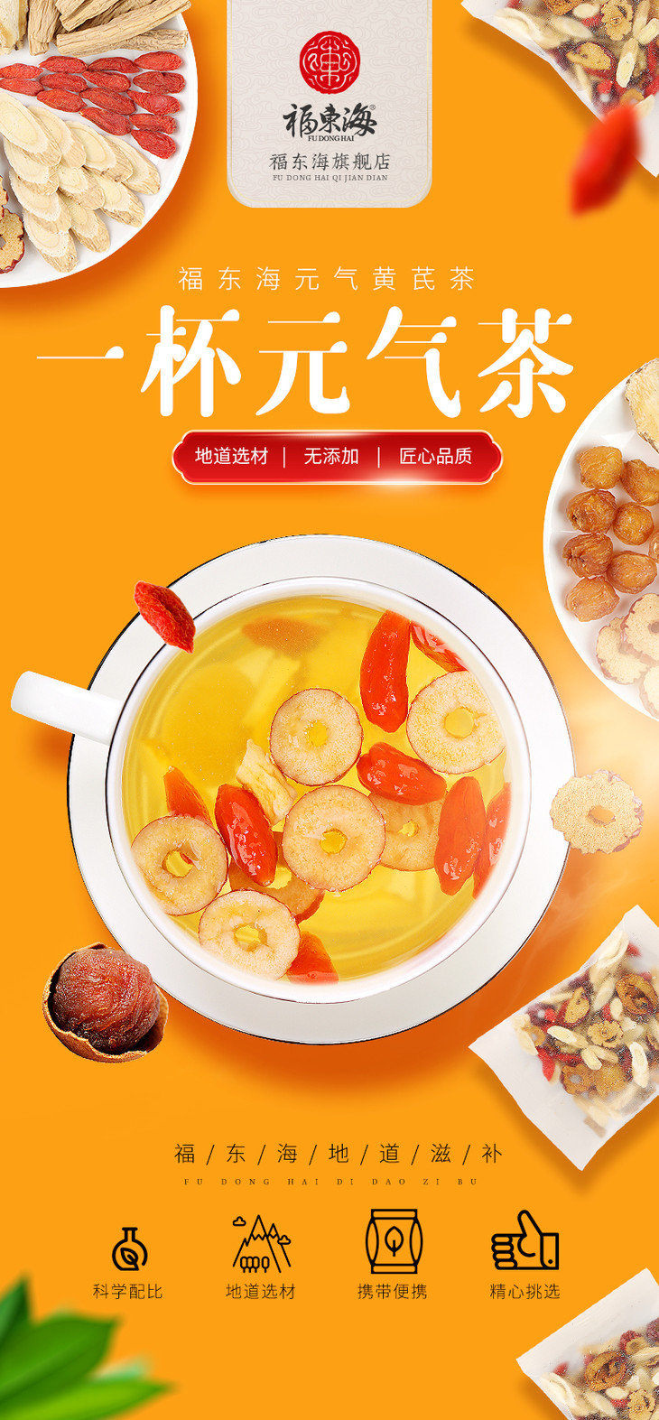 福东海黄芪当归党参枸杞红枣组合装桂圆红枣气血茶枸杞茶生黄芪茶