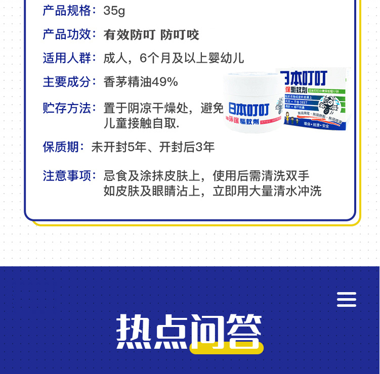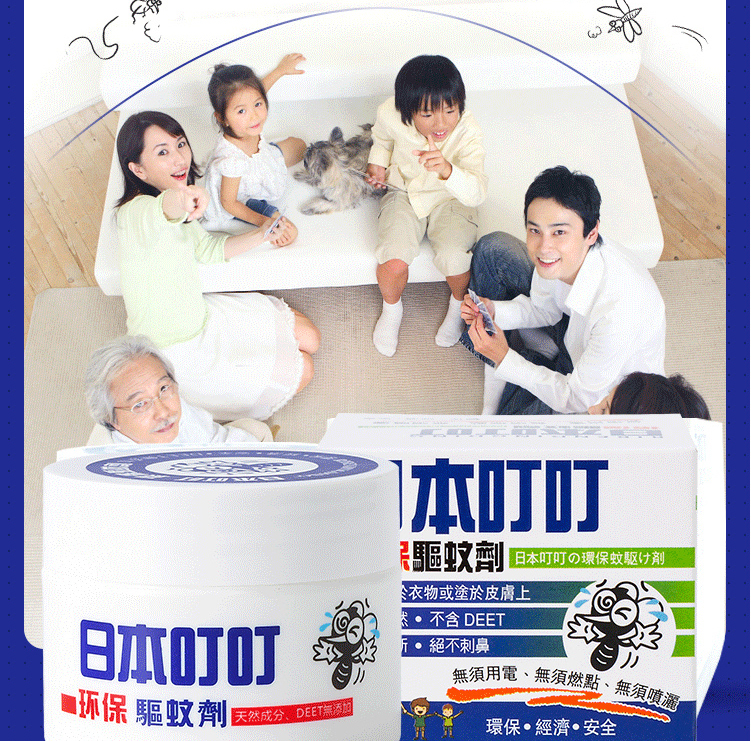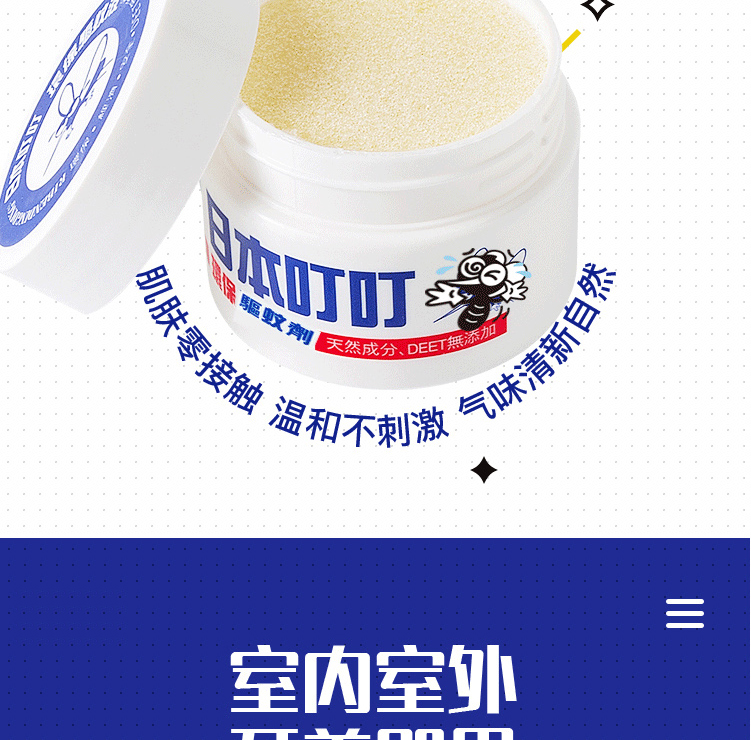 日本叮叮驱蚊液剂膏香茅精油驱蚊神器35g/盒
