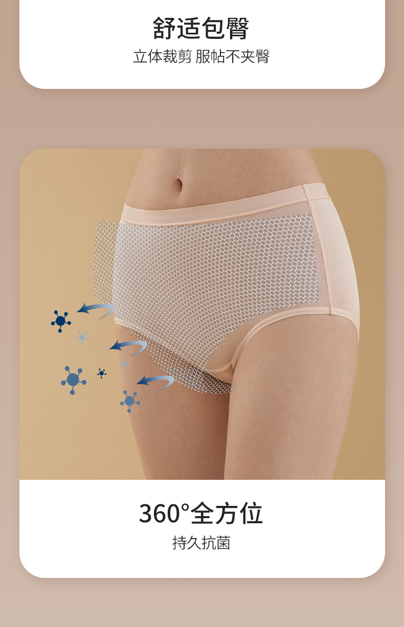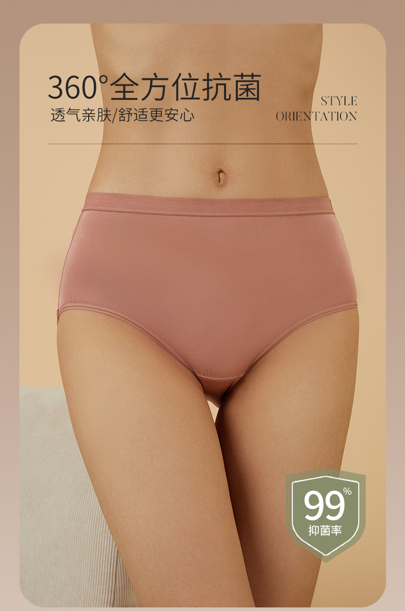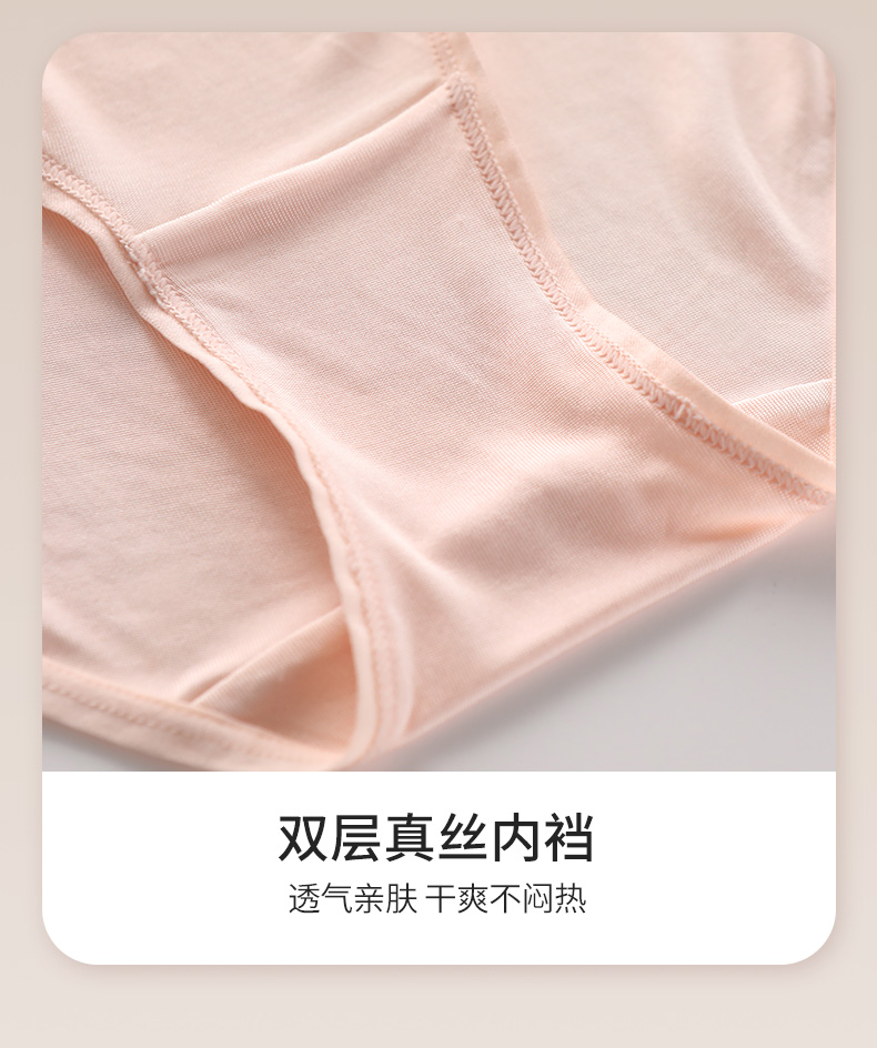 【2条装】金三塔真丝高腰抗菌内裤女 易洗易干 新品桑蚕丝纯色透气三角裤(限价款)(私密物品不支持退换) NZFBA213
