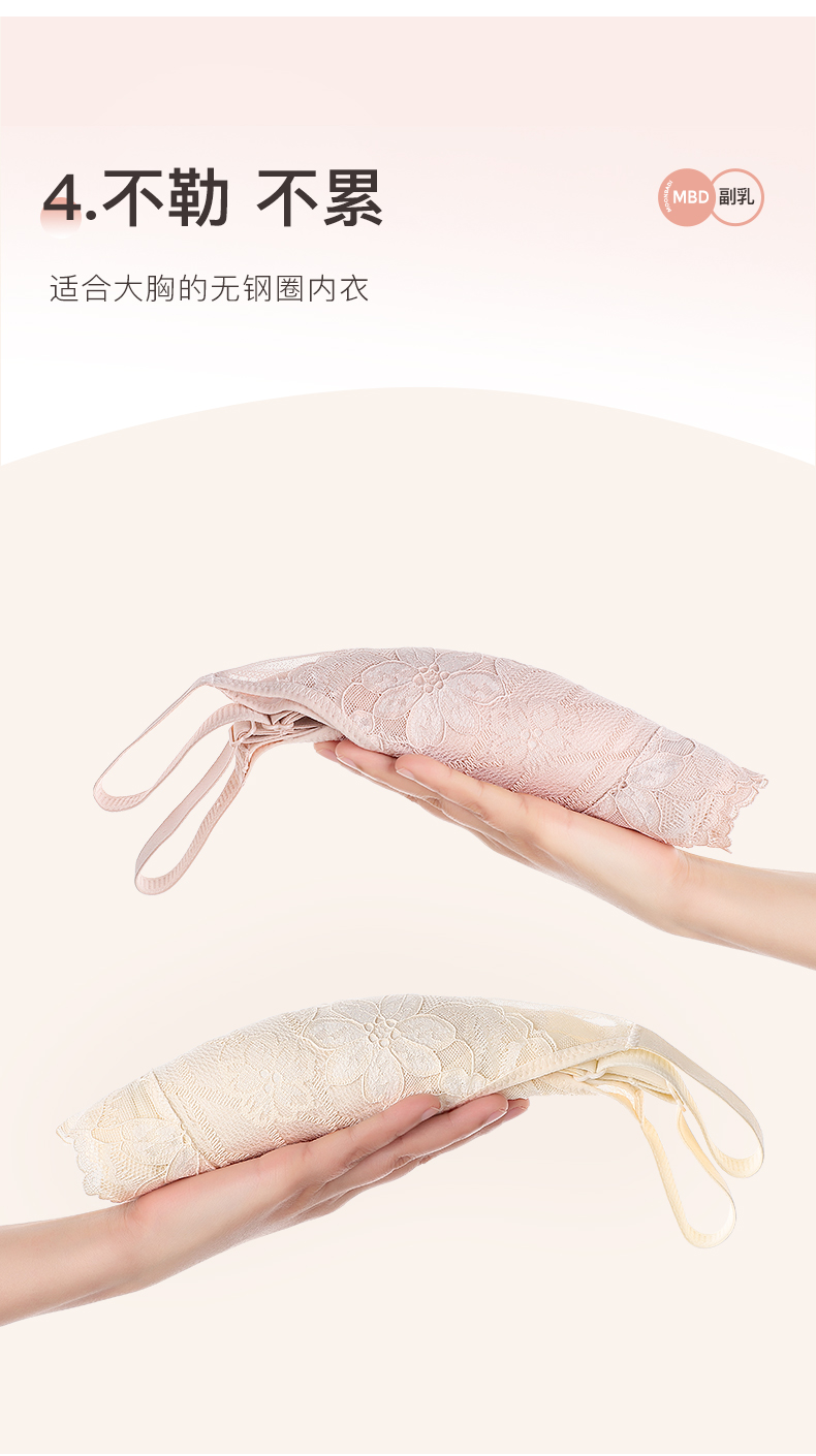梦芭蒂大胸显小内衣女无钢圈夏季薄款防下垂调整型文胸罩海棠醉日