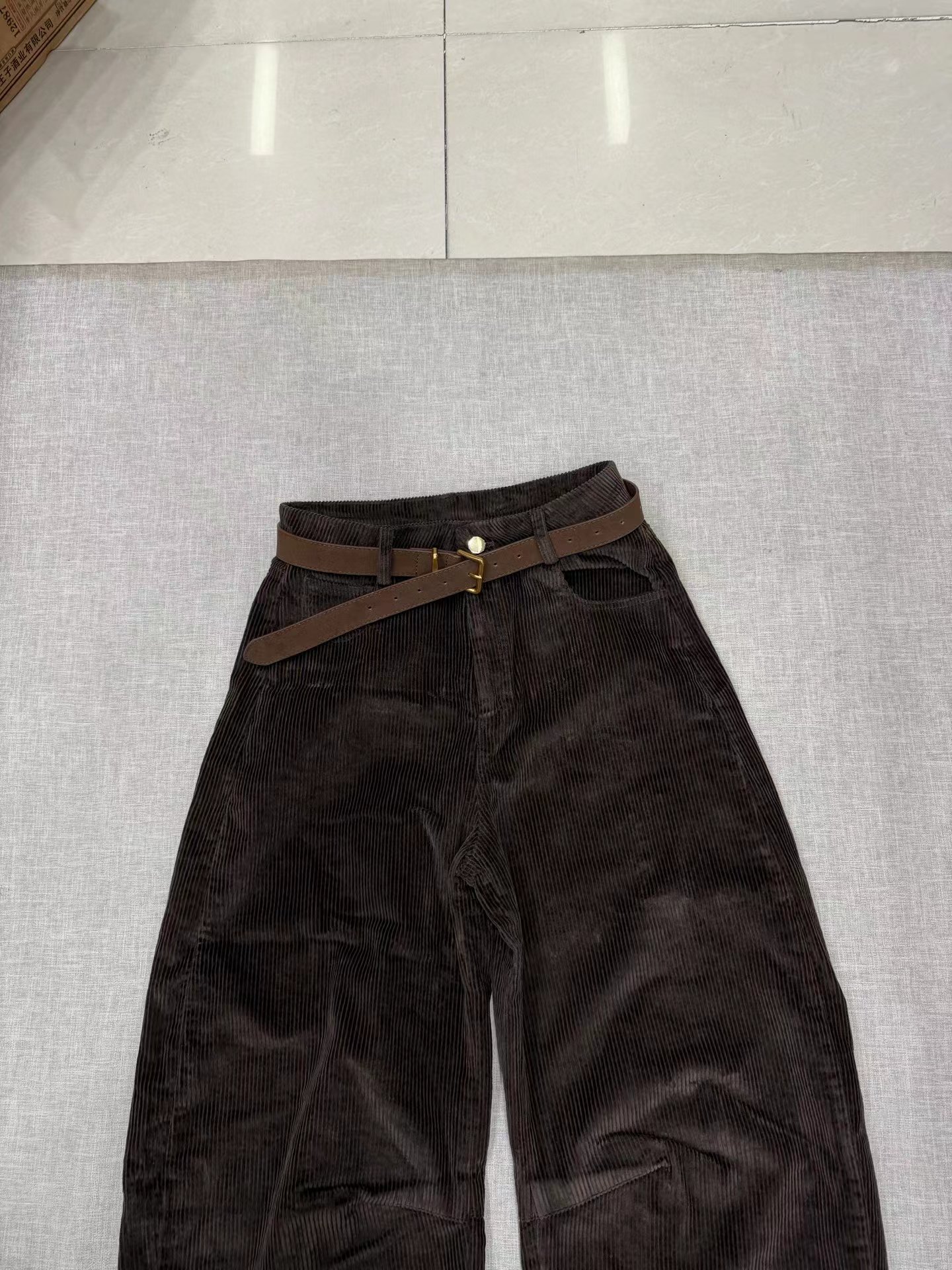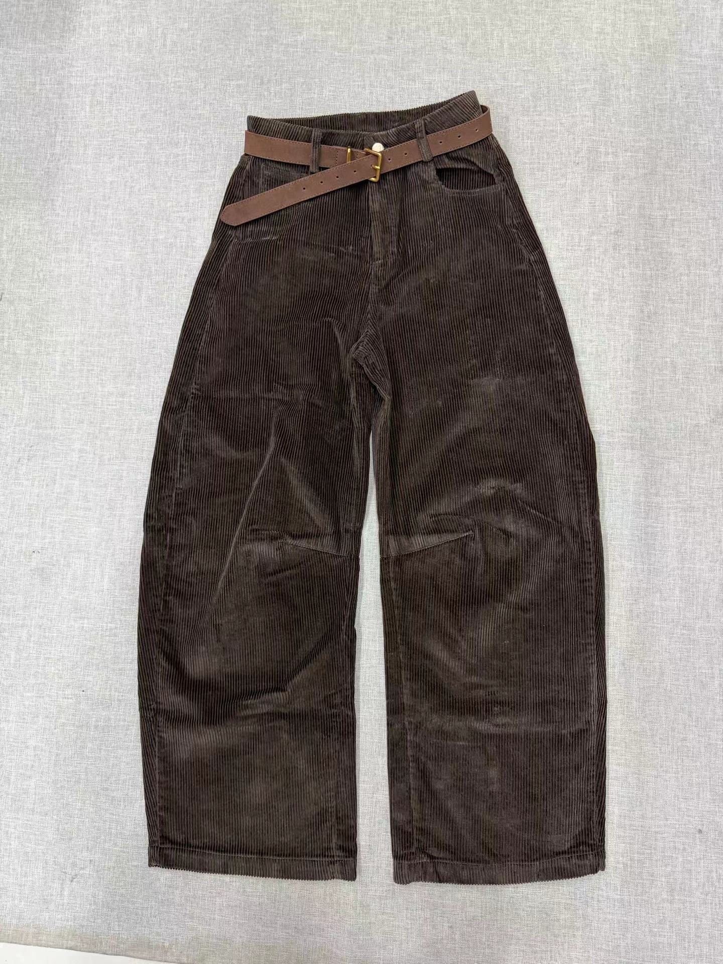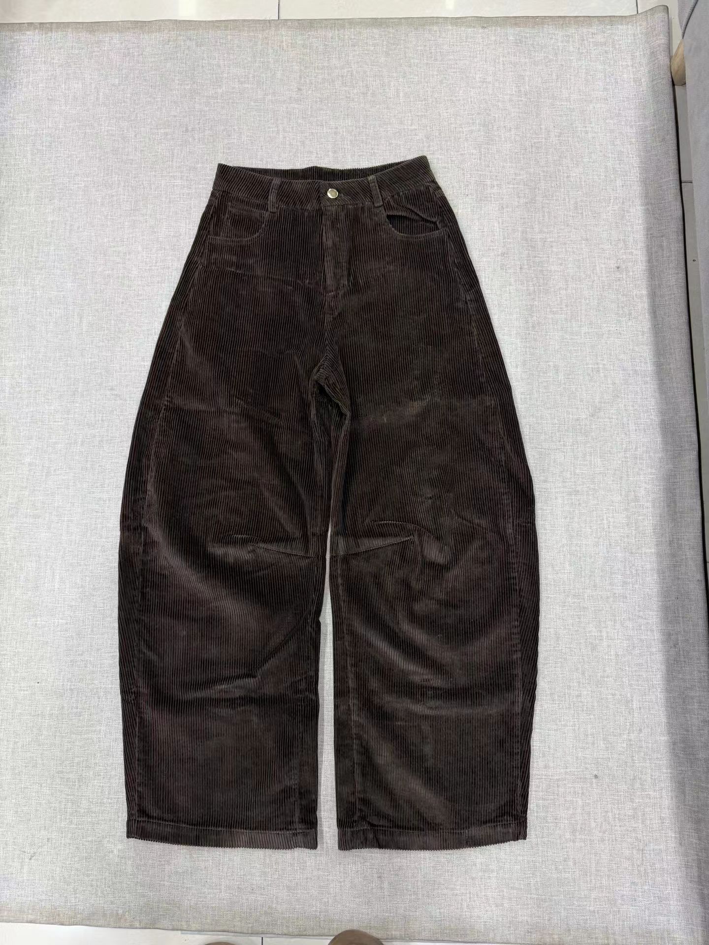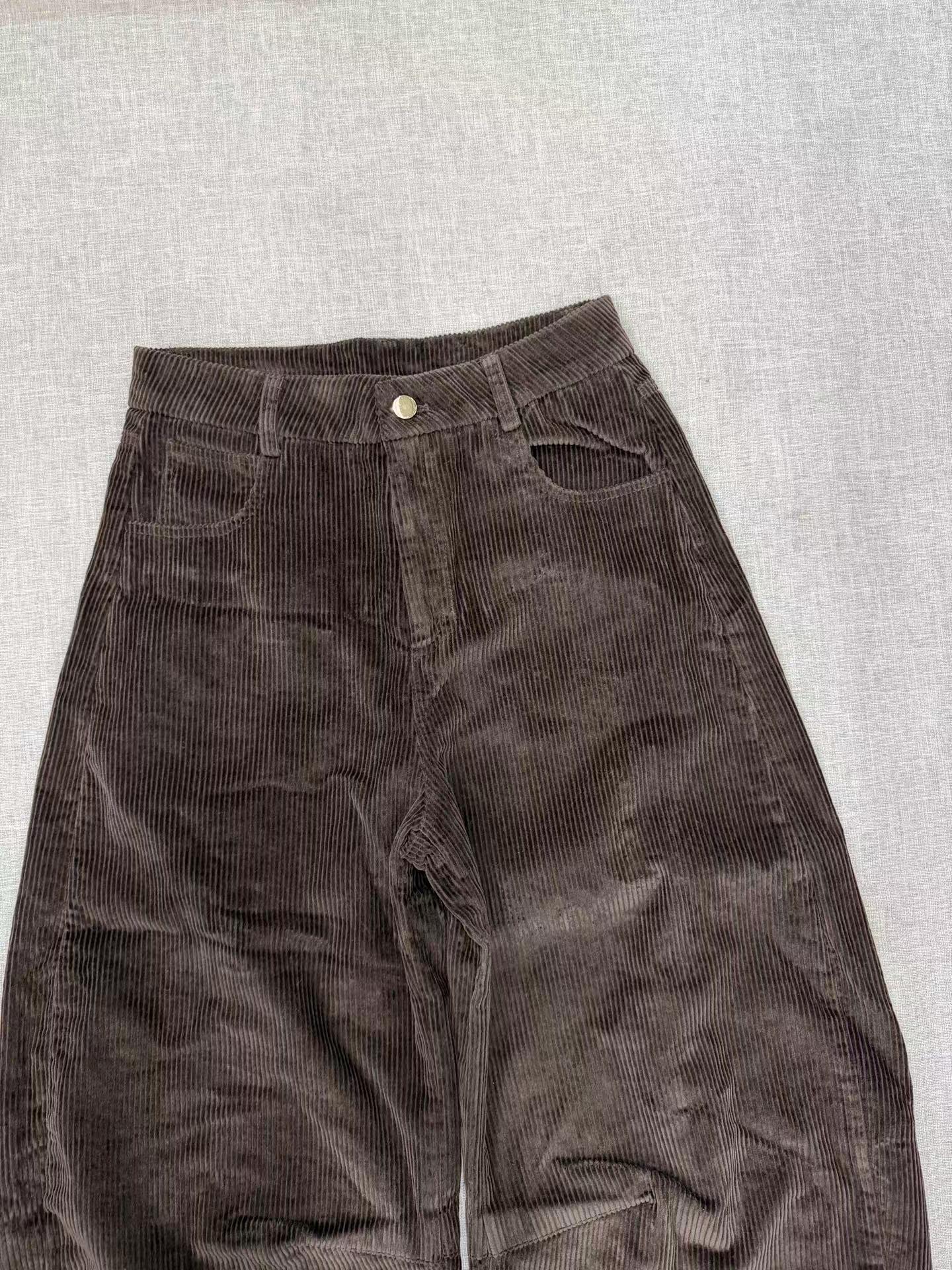 D122117冬季新款复古宽松简约灯芯绒棕色阔腿裤弯刀休闲裤香蕉裤长裤