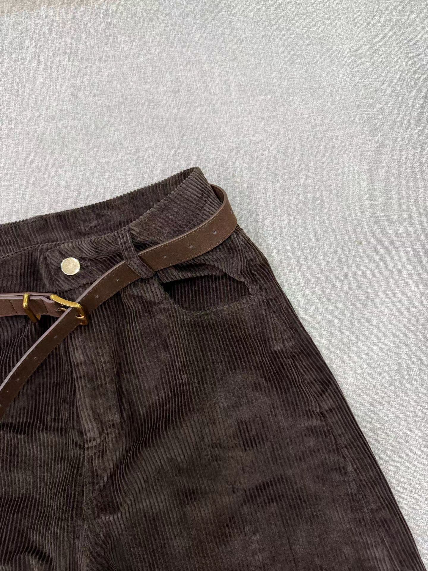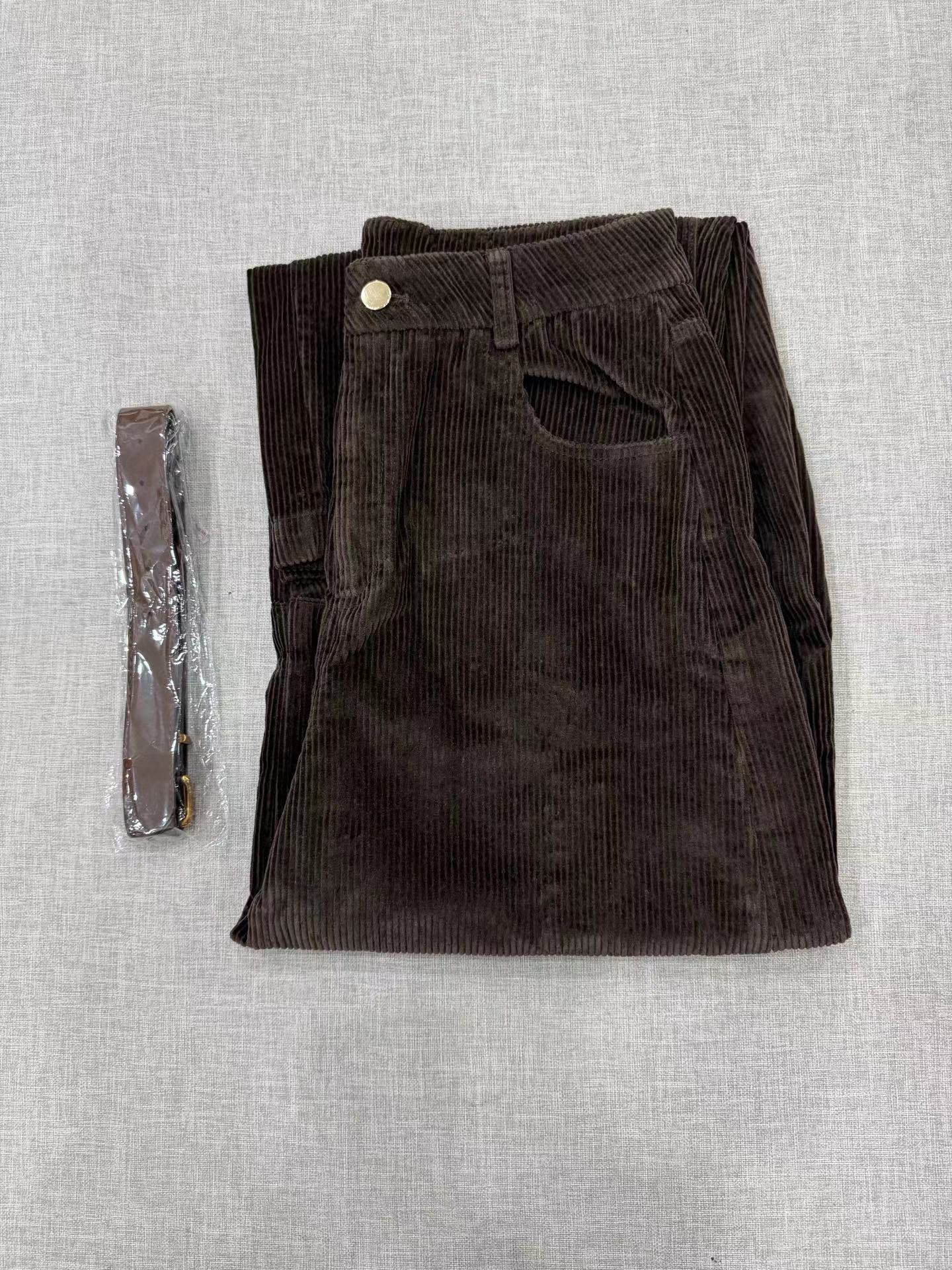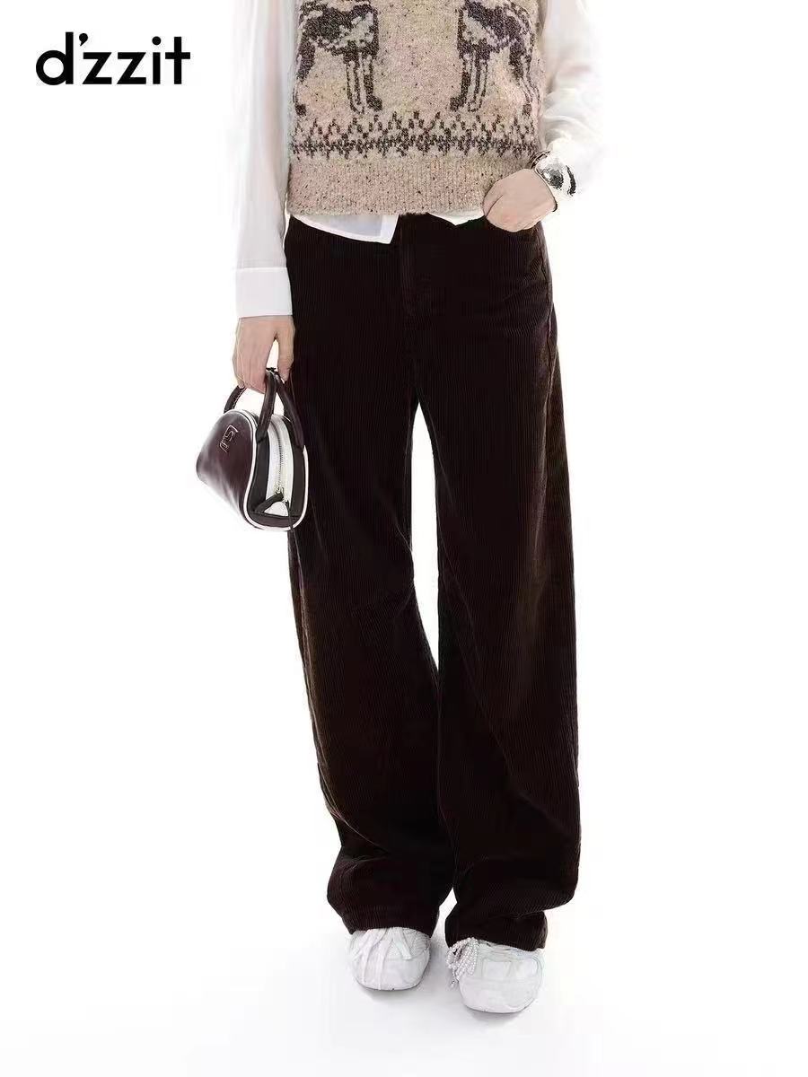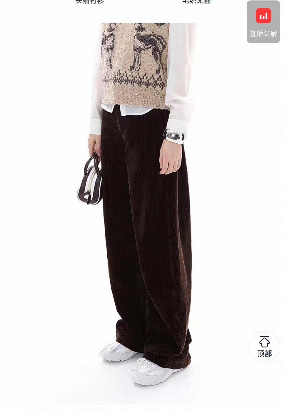 D122117冬季新款复古宽松简约灯芯绒棕色阔腿裤弯刀休闲裤香蕉裤长裤