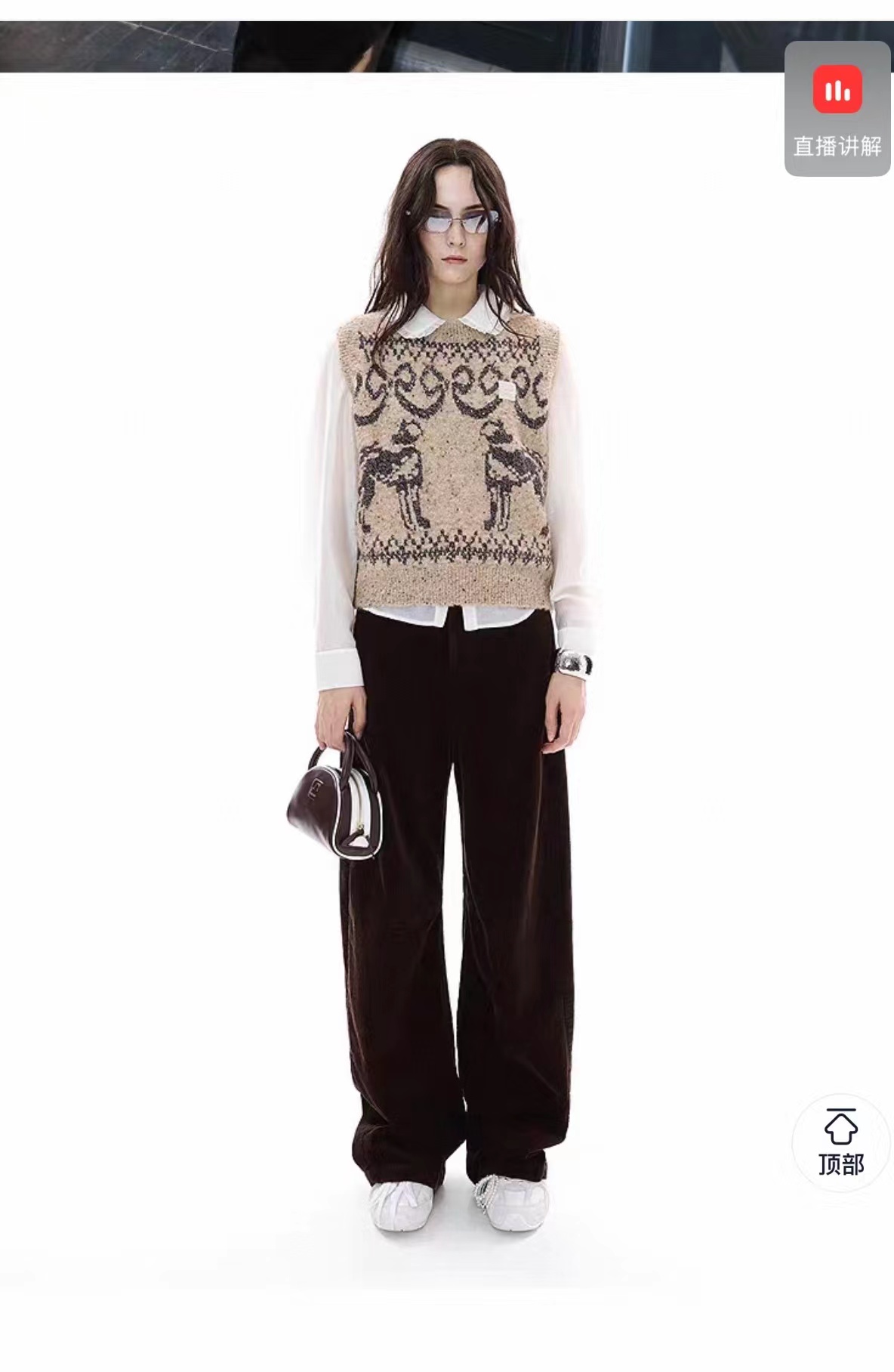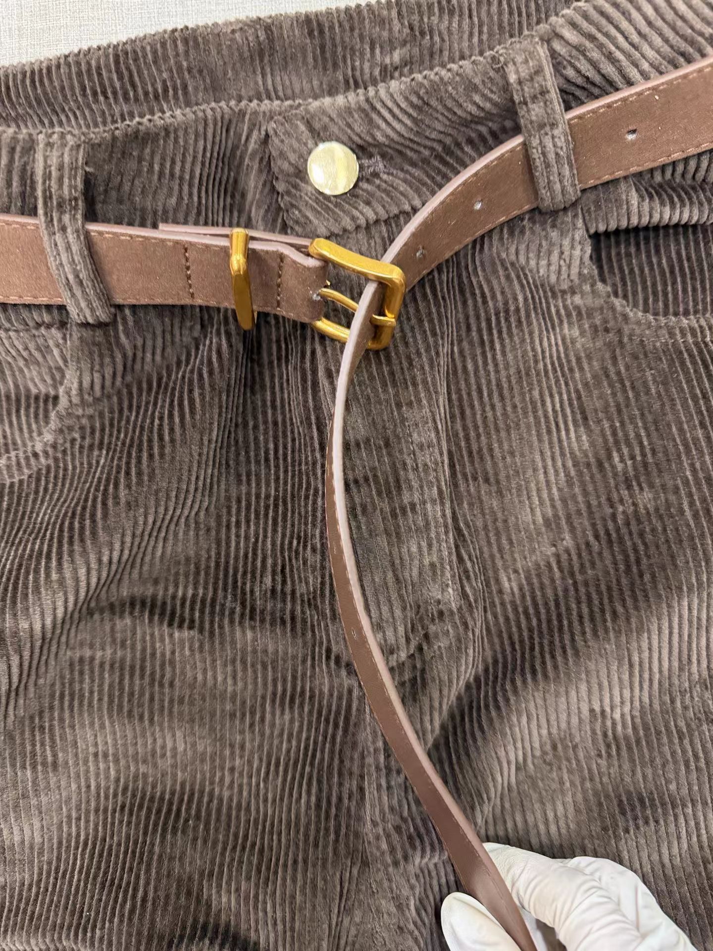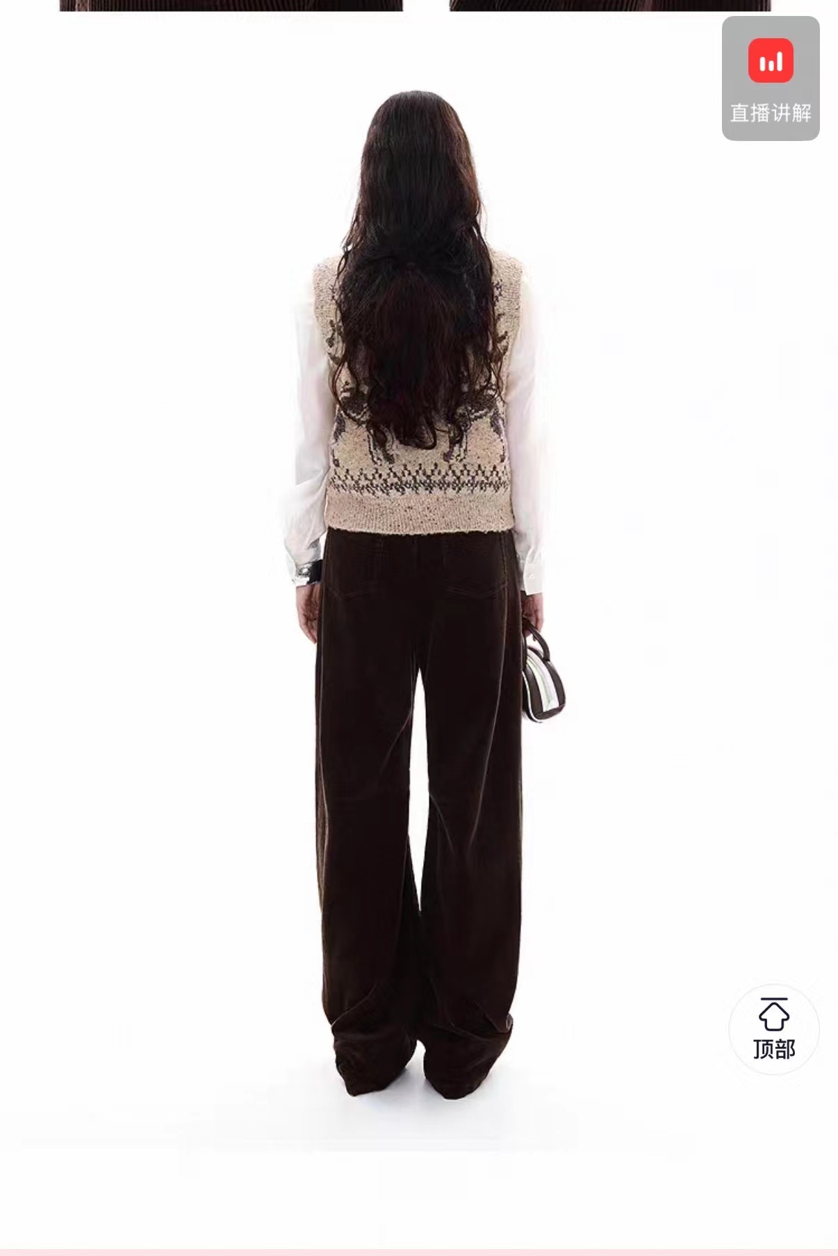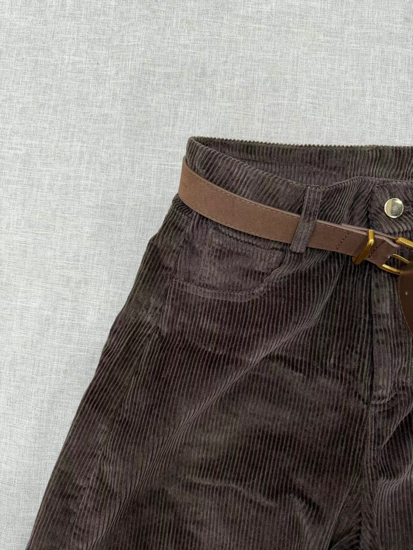 D122117冬季新款复古宽松简约灯芯绒棕色阔腿裤弯刀休闲裤香蕉裤长裤