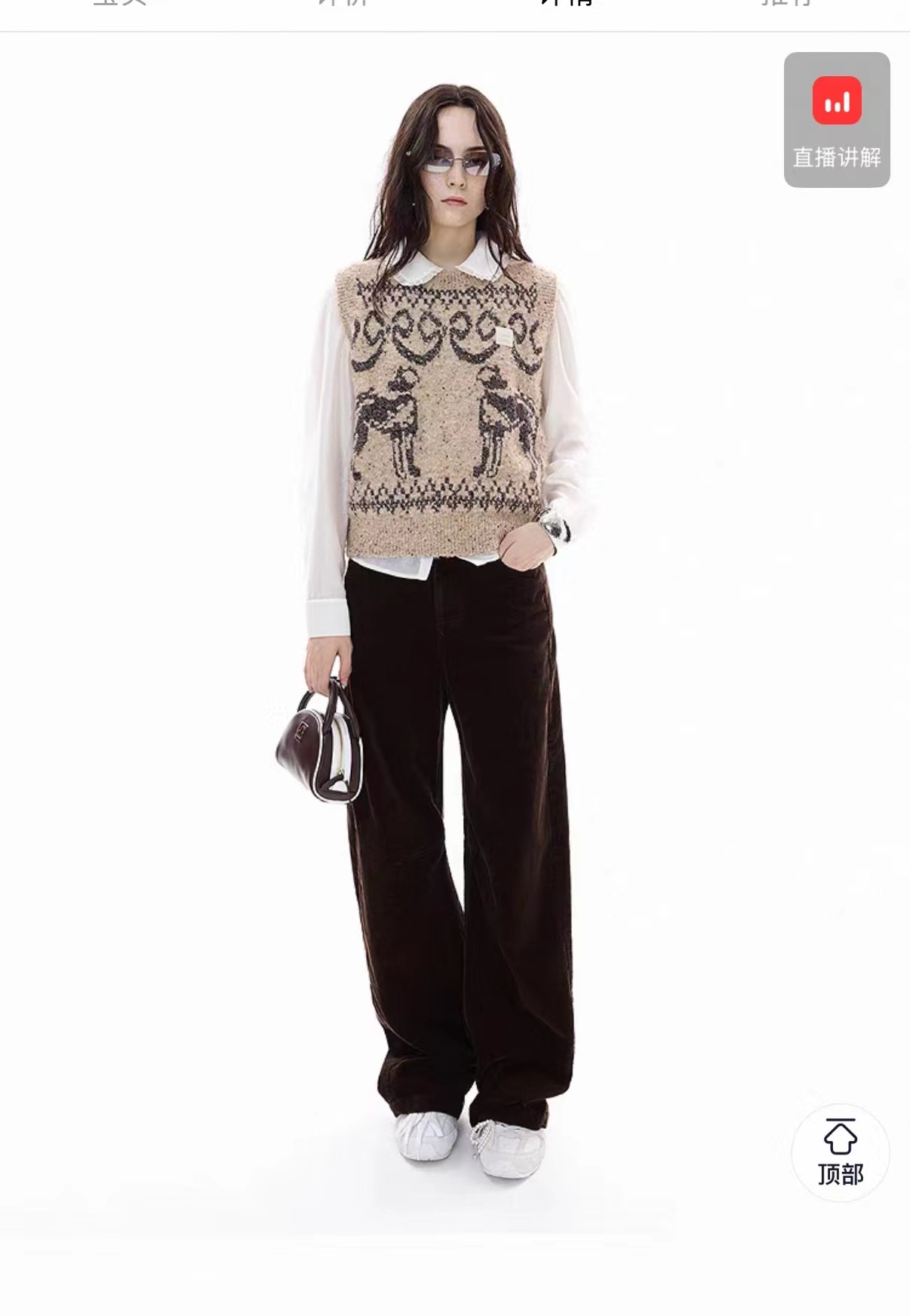 2025冬季新款复古宽松简约灯芯绒棕色阔腿裤弯刀休闲裤香蕉裤长裤