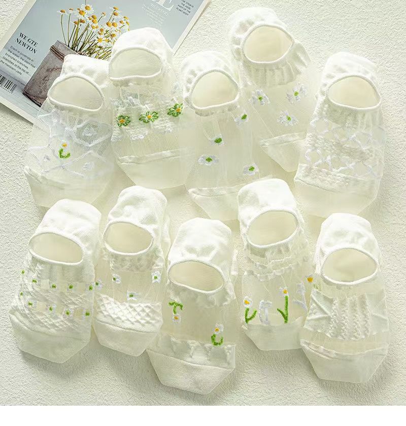 【10双装!超薄镂空隐形袜】船袜女夏白色透气清凉夏季袜子短款透气不掉跟袜子