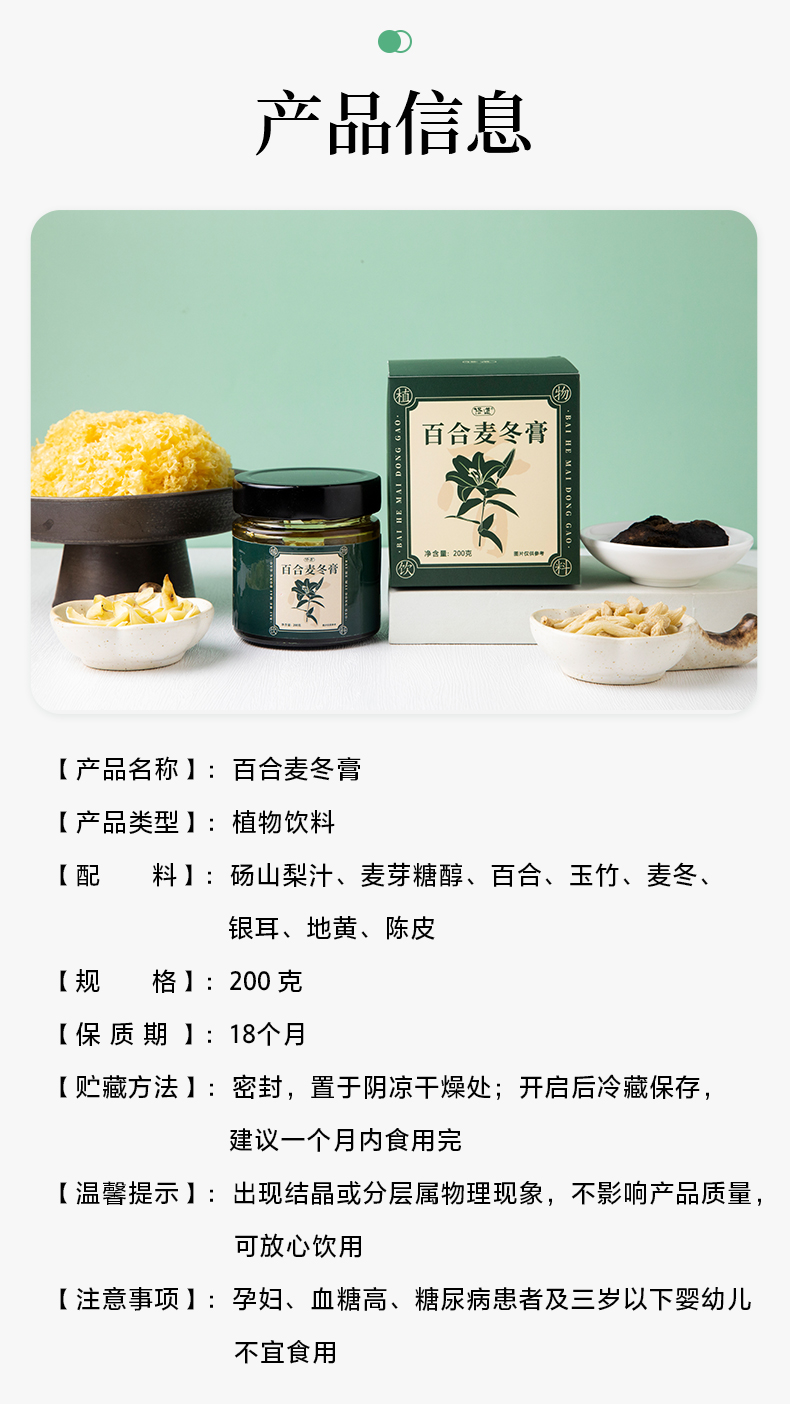 【有书有健康】 佟道 百合麦冬膏 梨百合玉竹麦冬银耳地黄陈皮麦芽糖醇 200克/罐